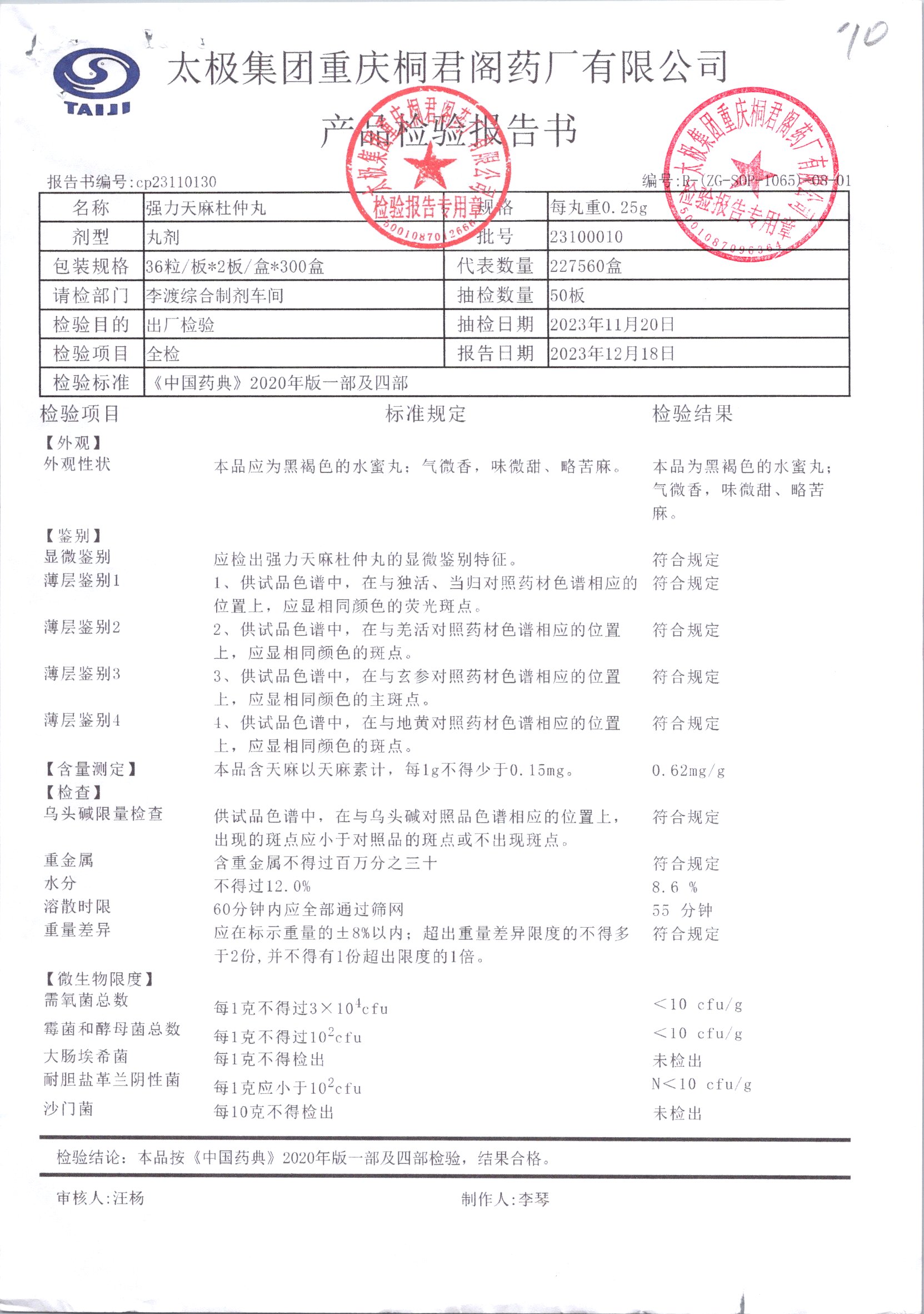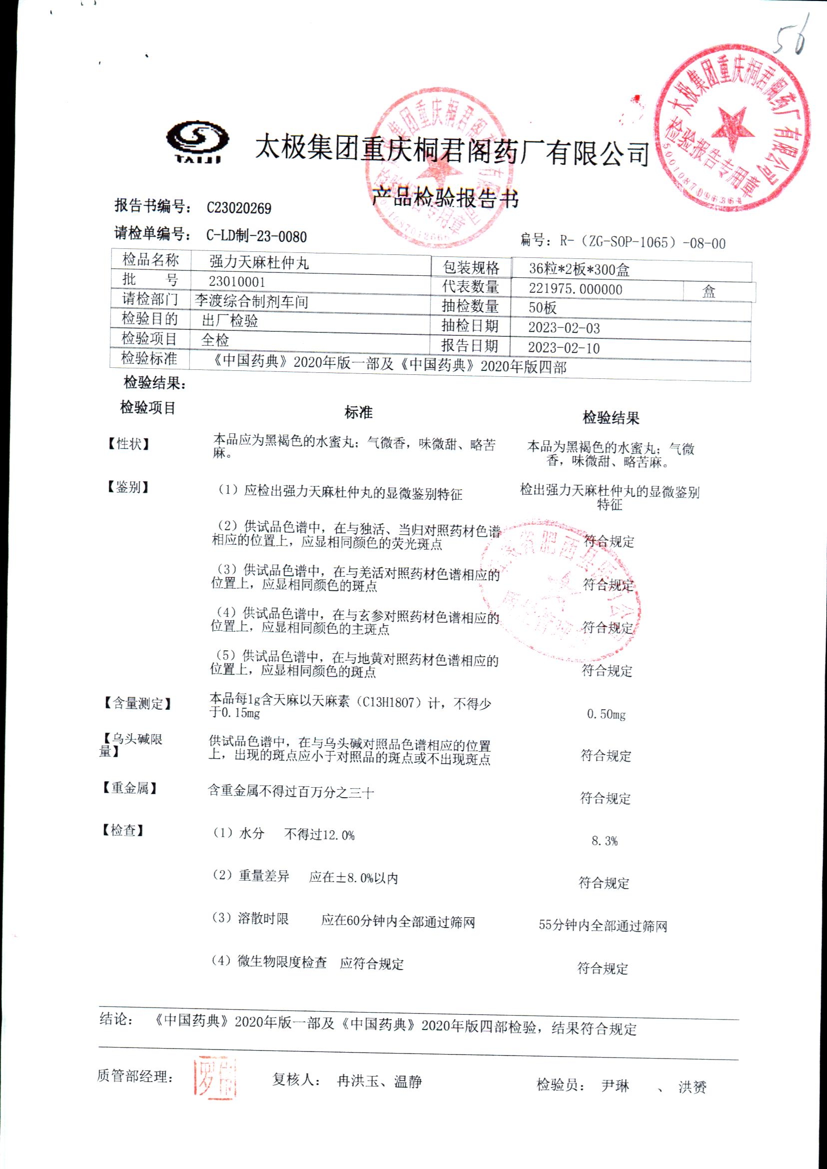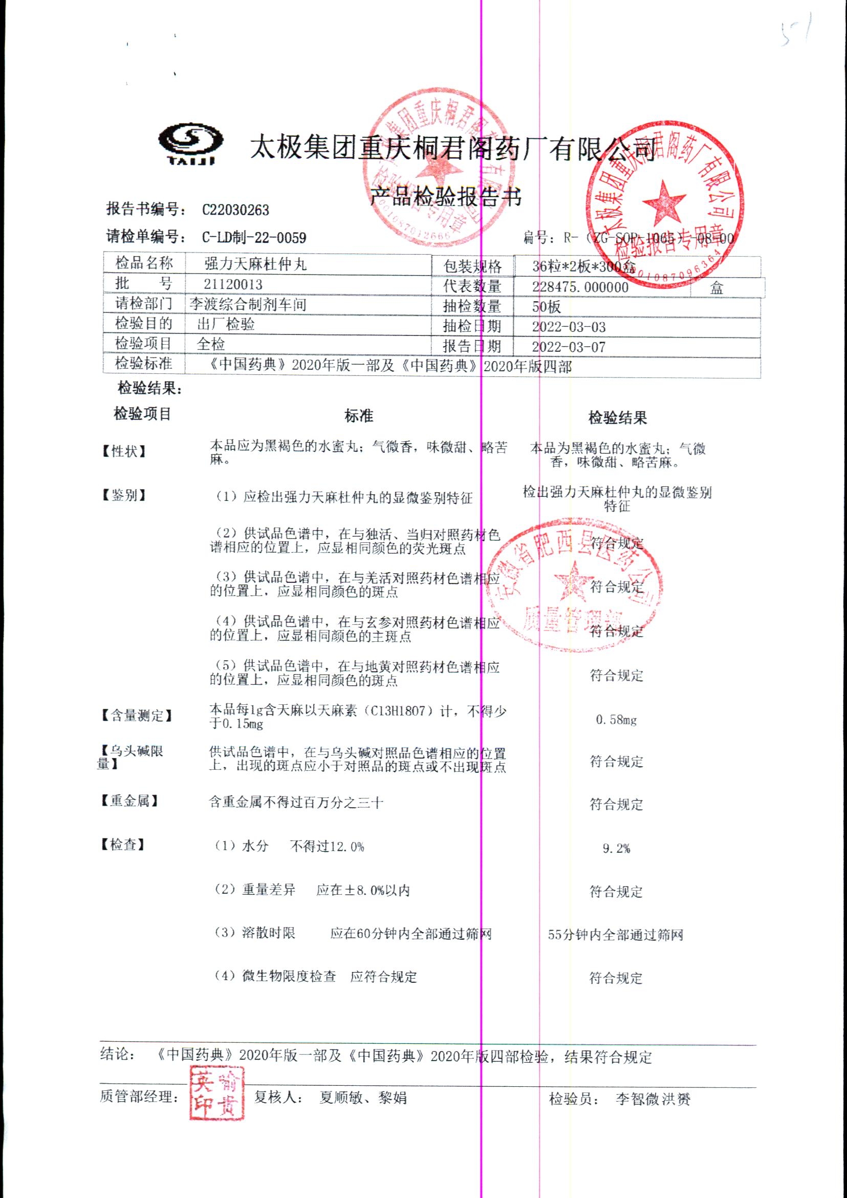 强力天麻杜仲丸 | 36粒*2板 | 23010001 | 查看详情 |