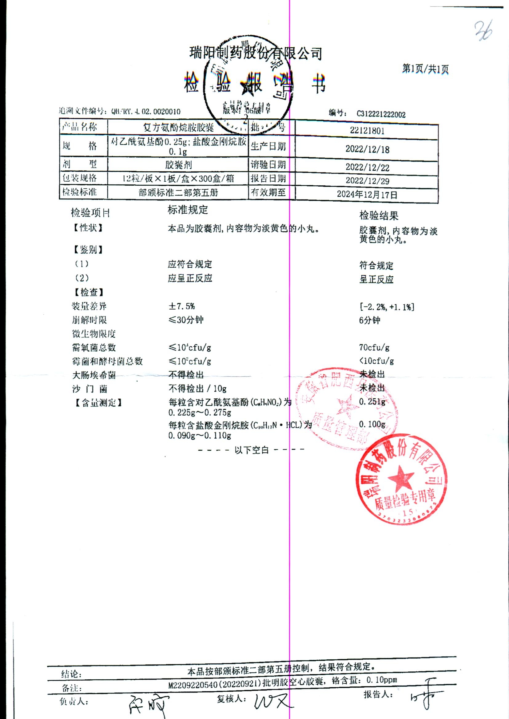 复方氨酚烷胺胶囊 | 0.25g:0.1g*12粒 | 22121801 | 查看详情 |