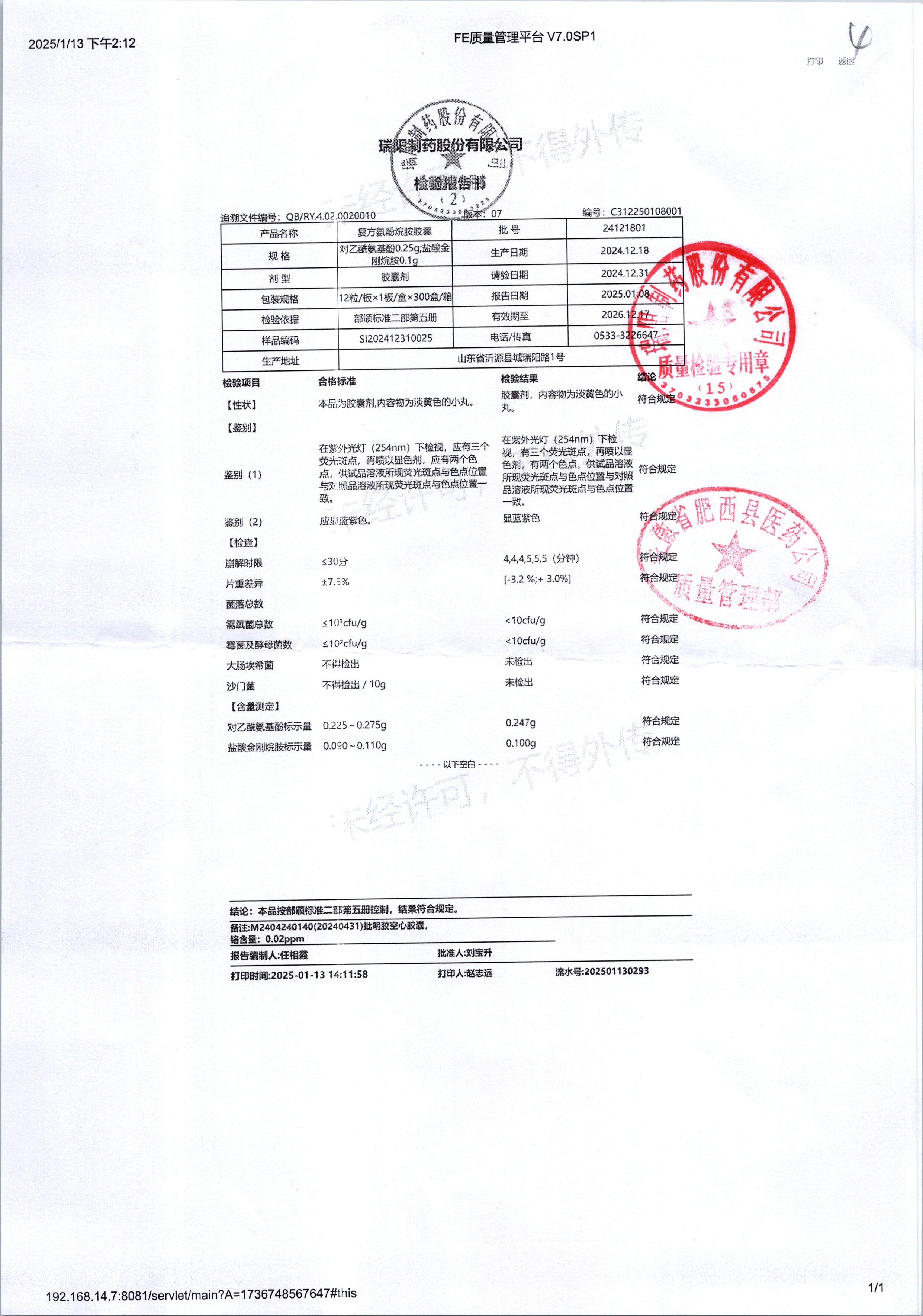 复方氨酚烷胺胶囊 | 0.25g:0.1g*12粒 | 25021701 | 查看详情 |