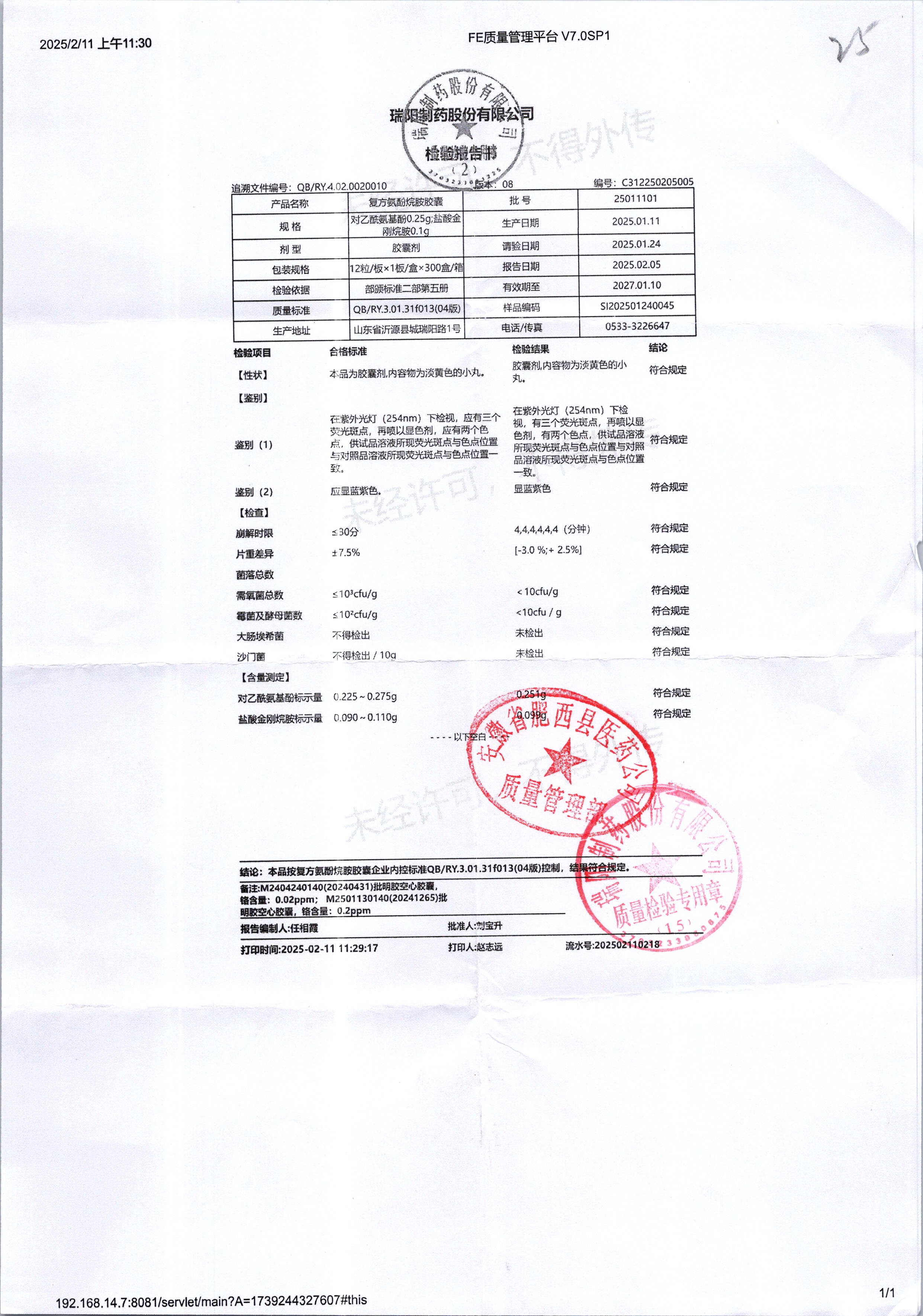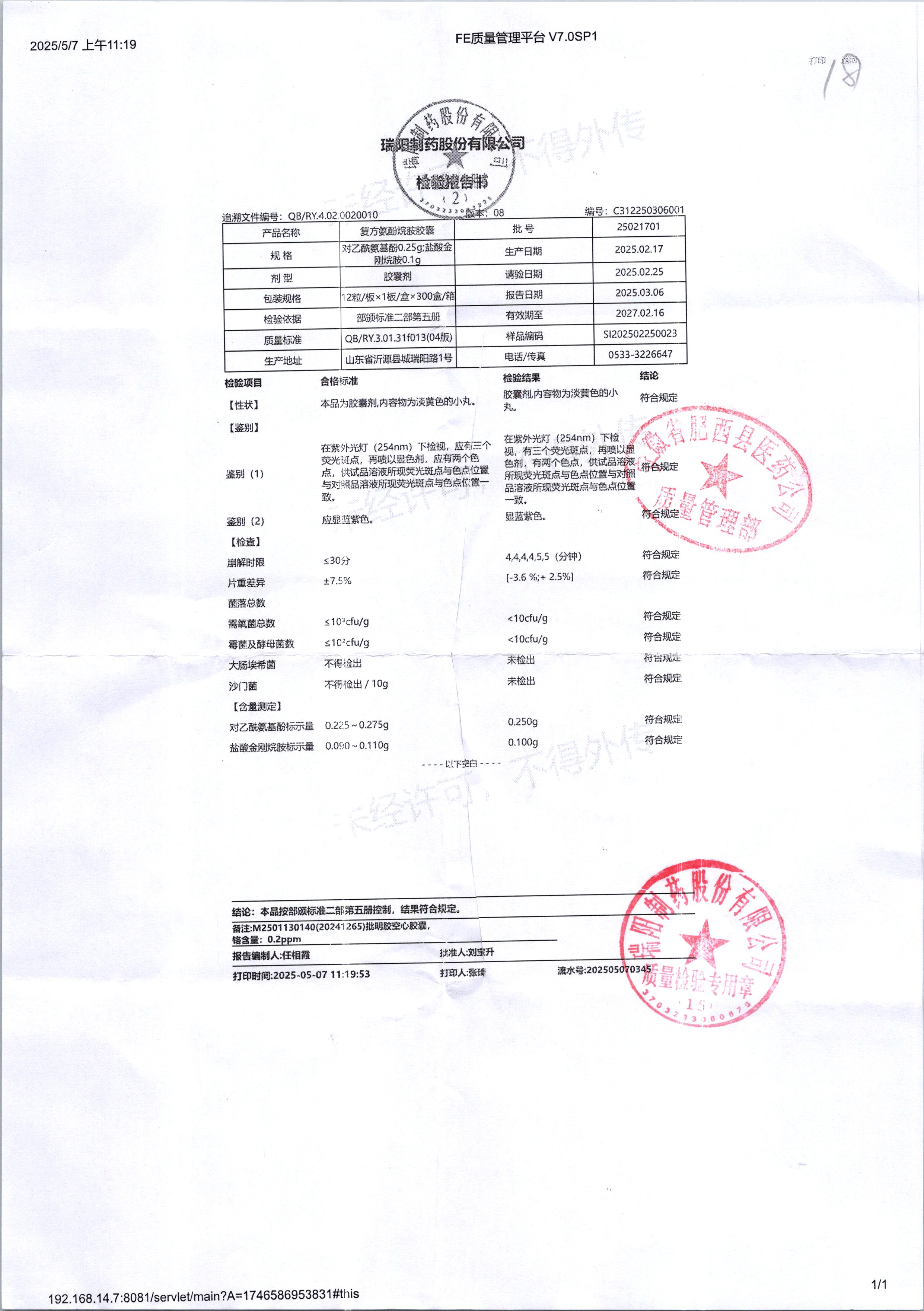 复方氨酚烷胺胶囊 | 0.25g:0.1g*12粒 | 25062101 | 查看详情 |