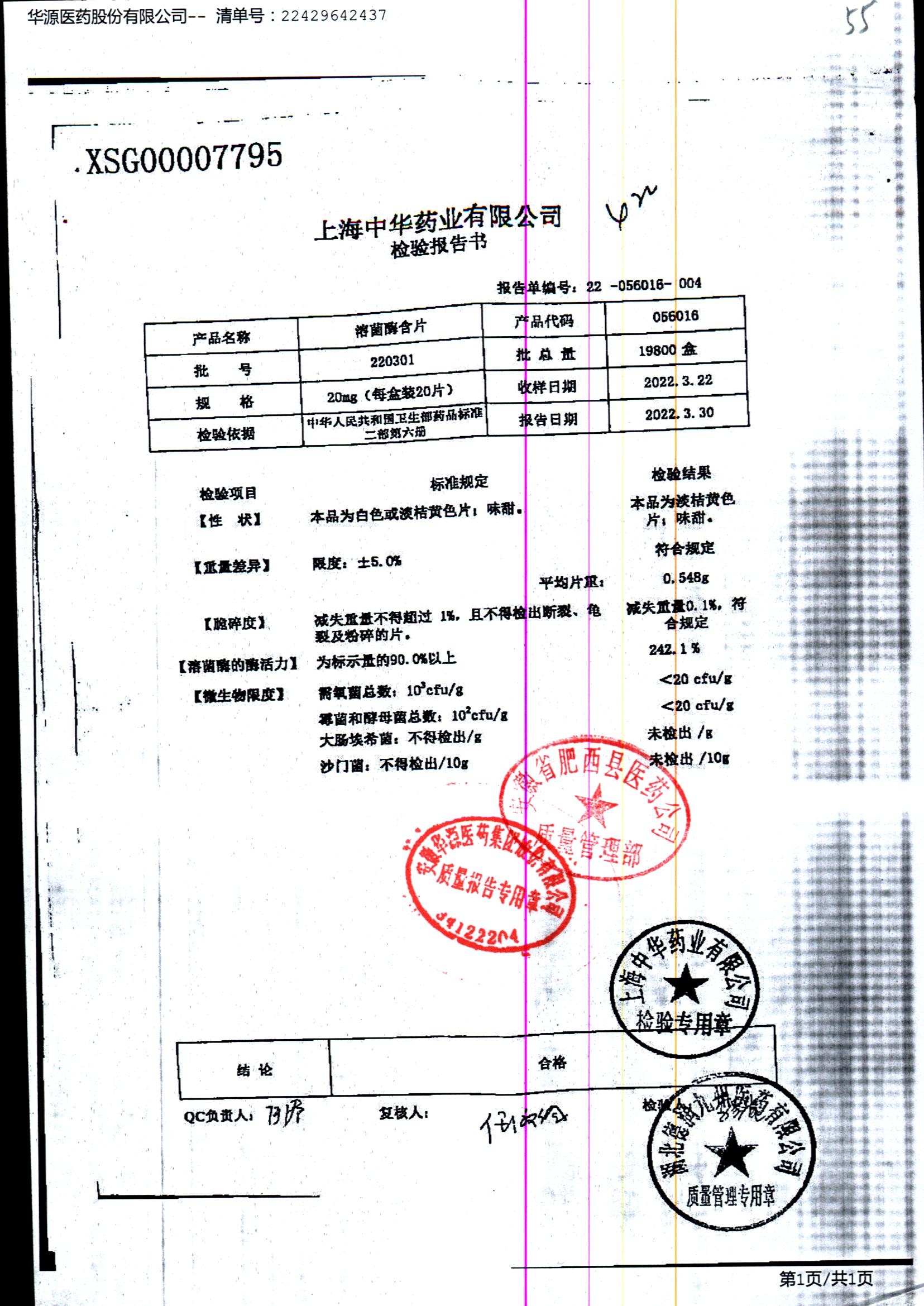 药检报告