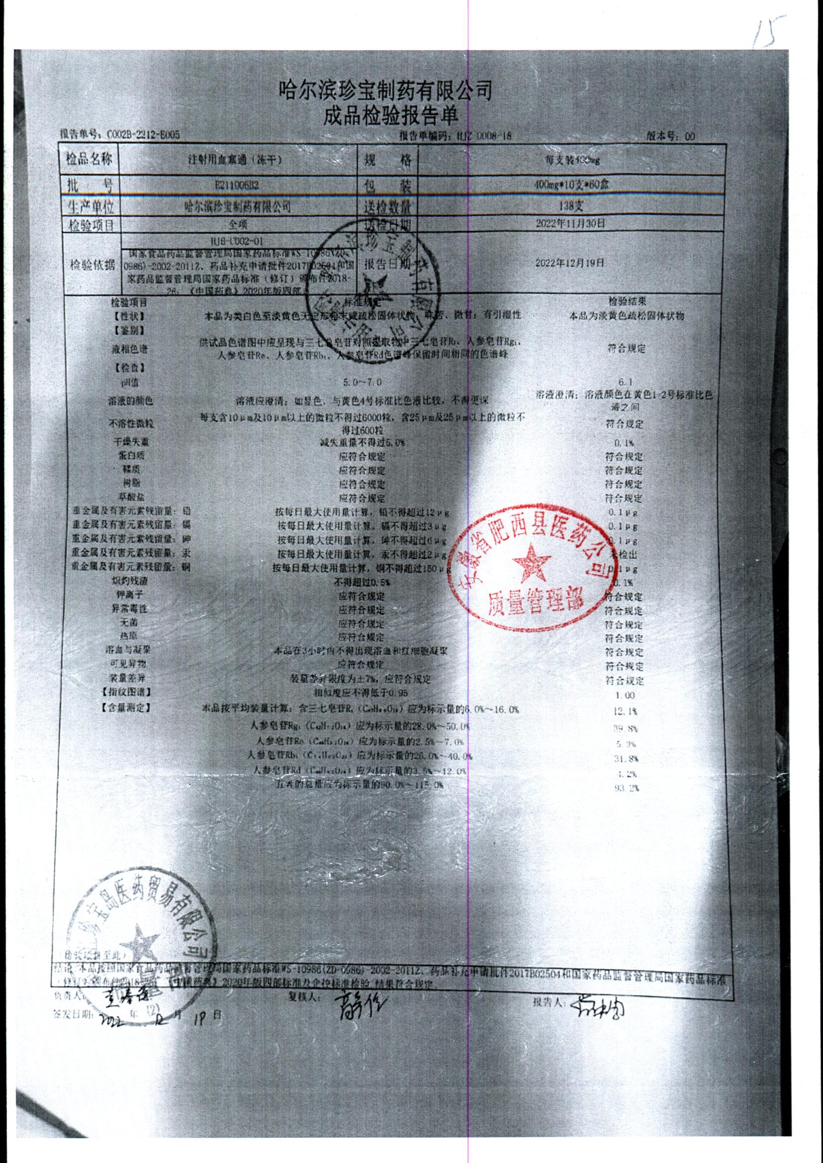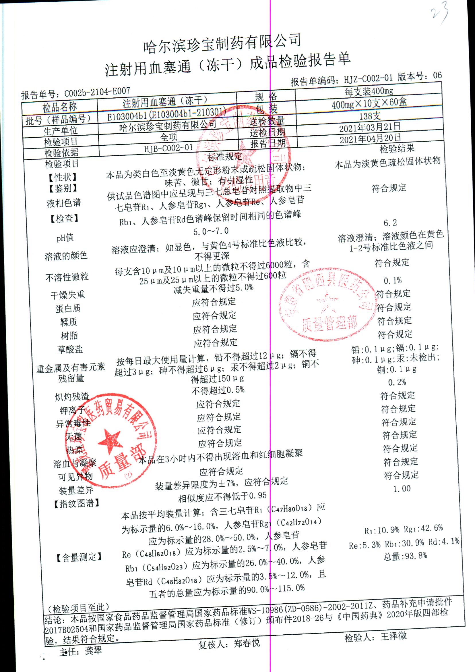 注射用血塞通(冻干) | 400mg*10支 | E103004b12(E103004b1-210301) | 查看详情 |
