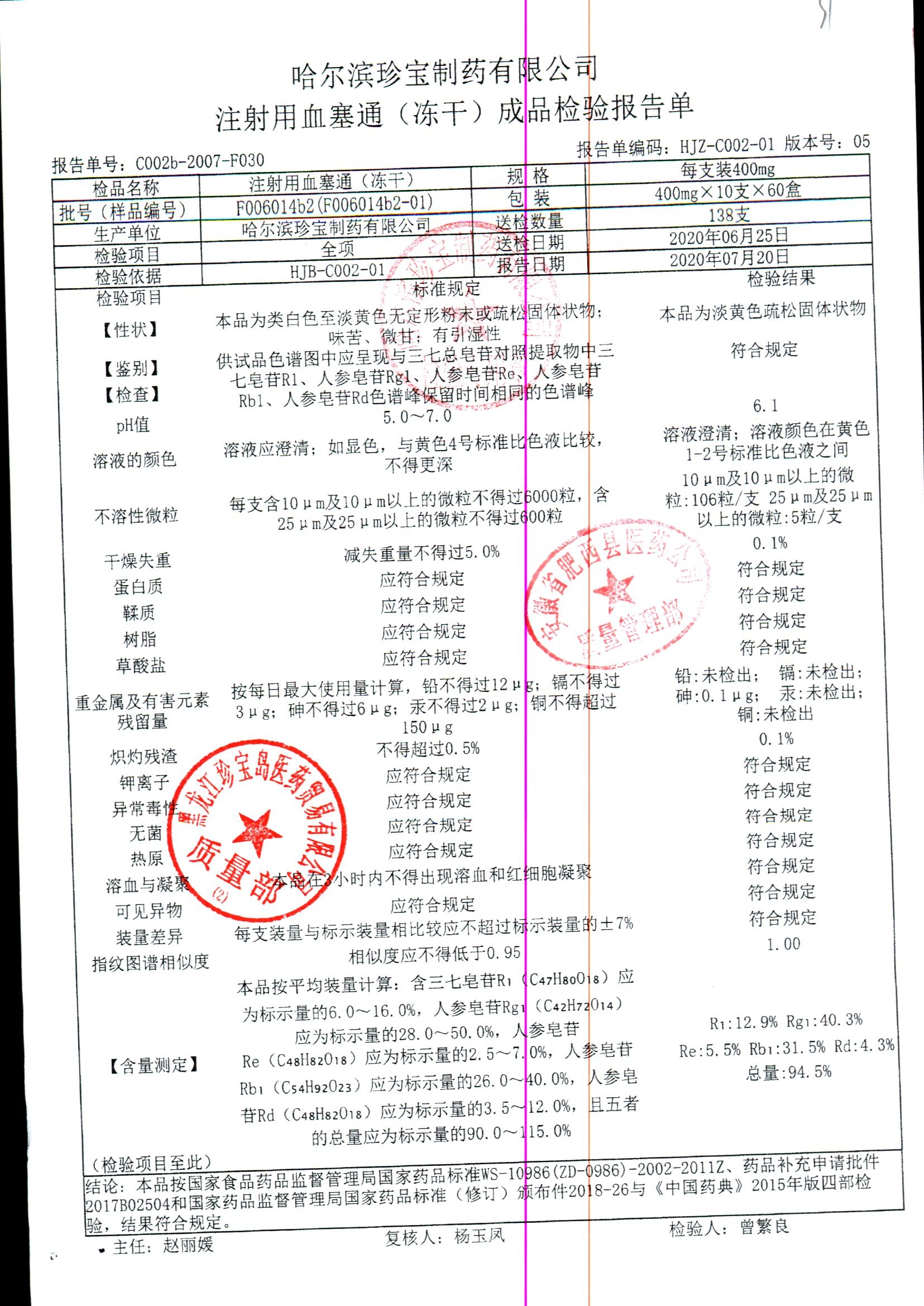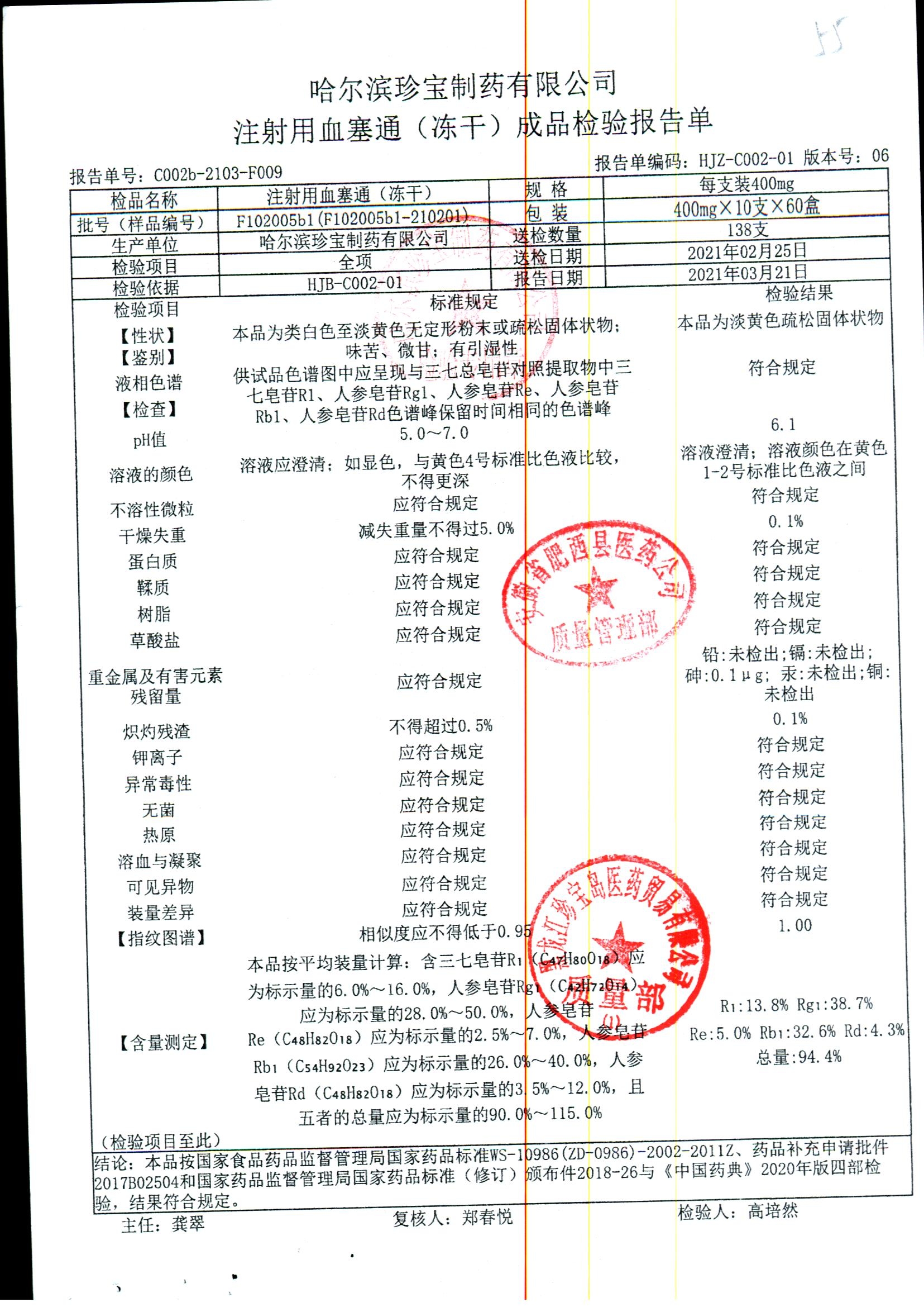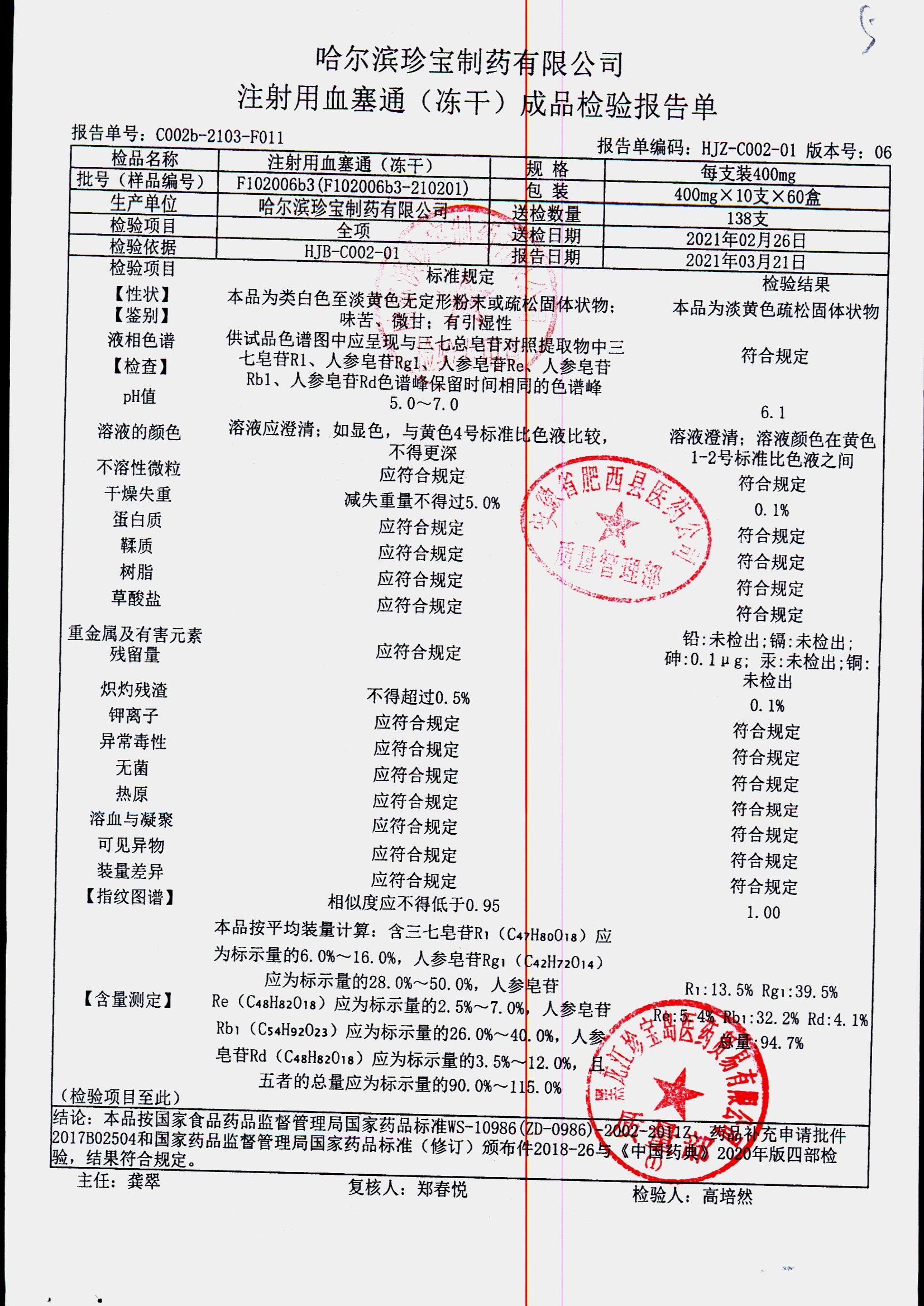 注射用血塞通(冻干) | 400mg*10支 | F102004b3(F102004b3-210201) | 查看详情 |