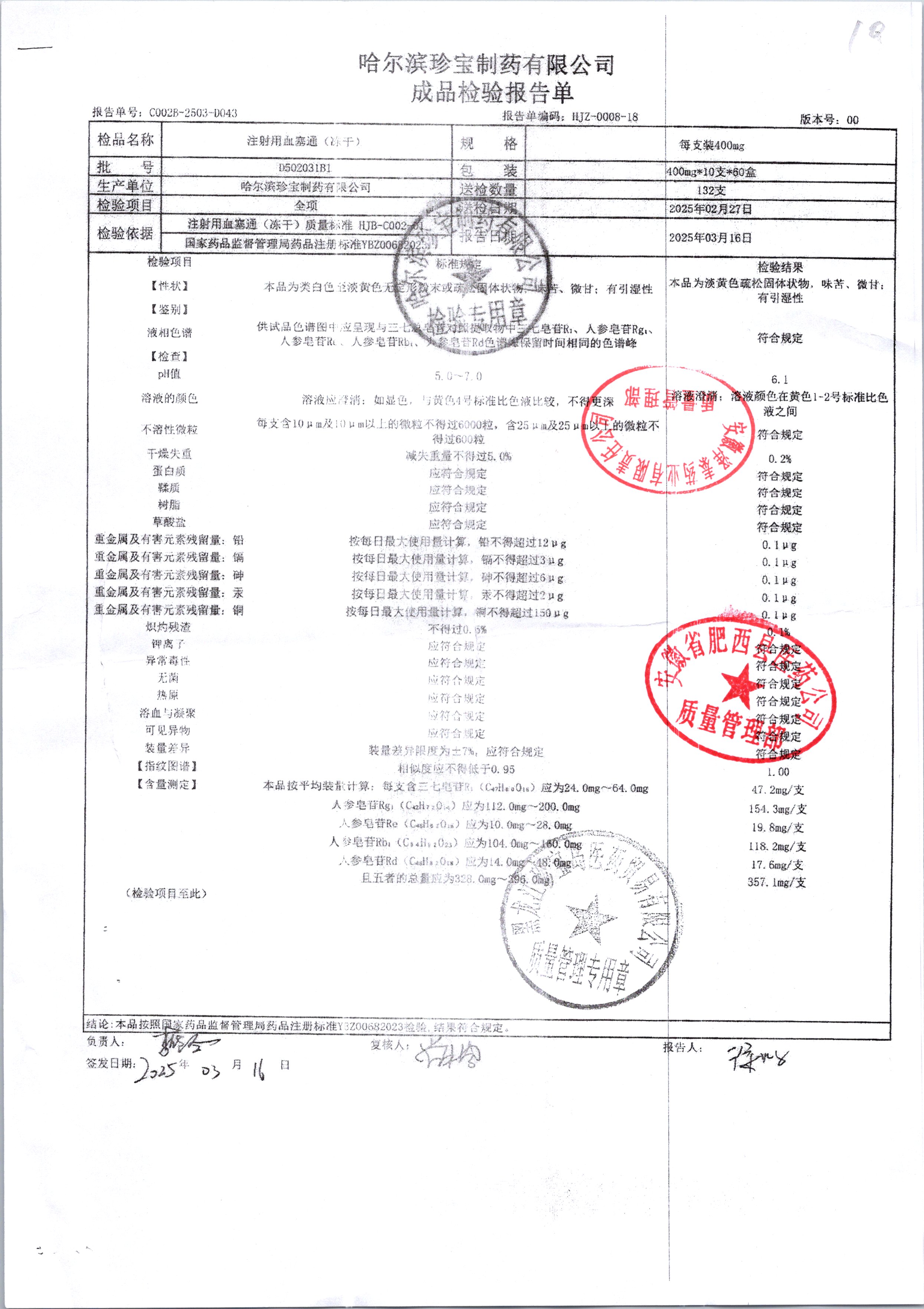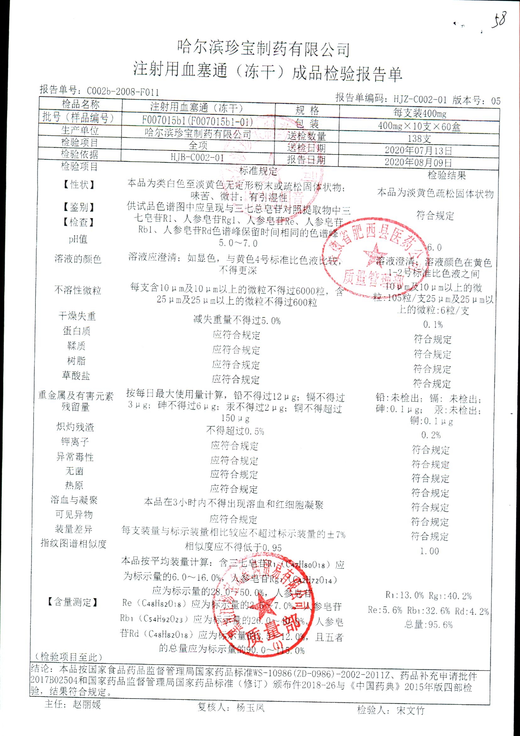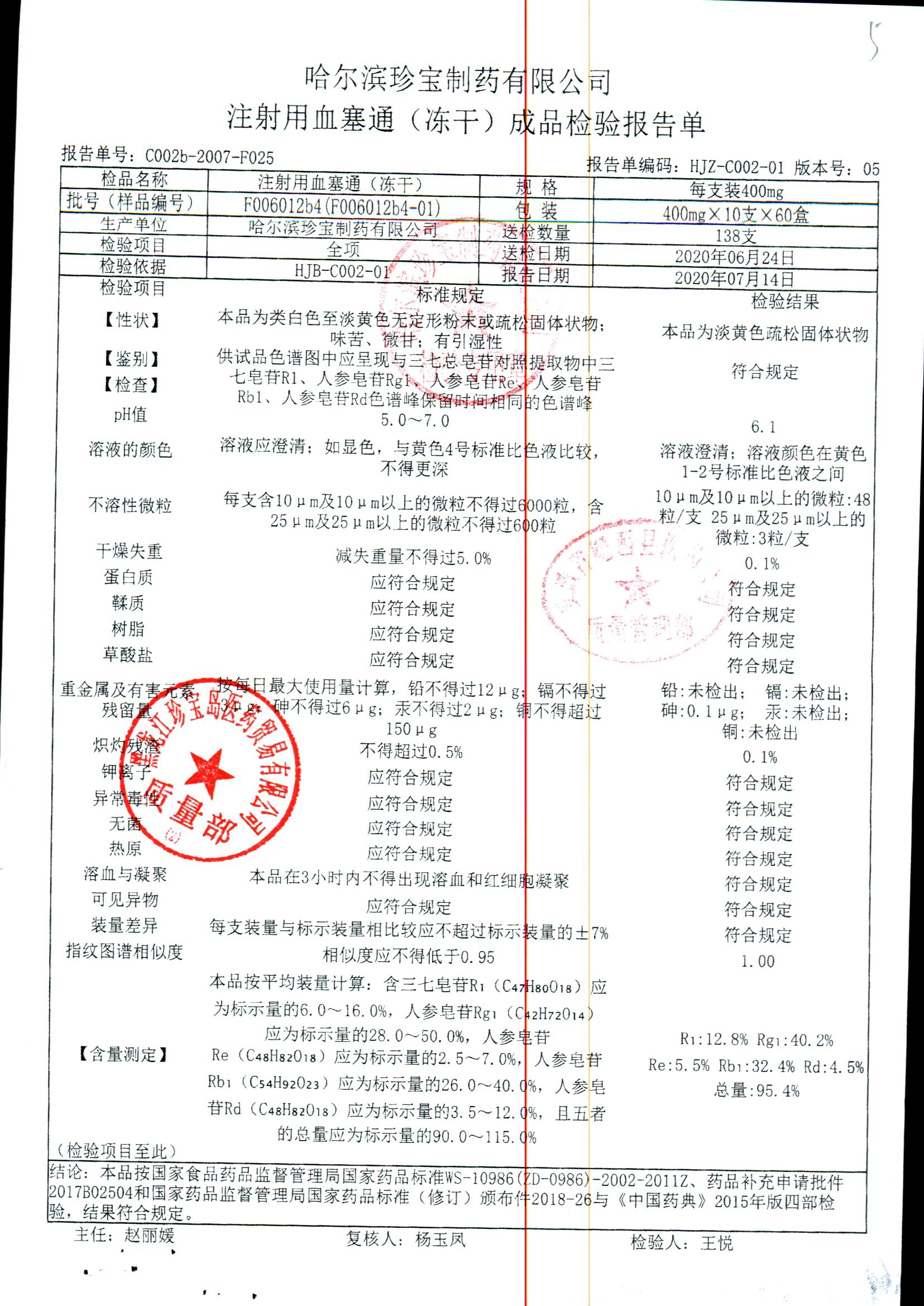 注射用血塞通(冻干) | 400mg*10支 | F102004b3(F102004b3-210201) | 查看详情 |