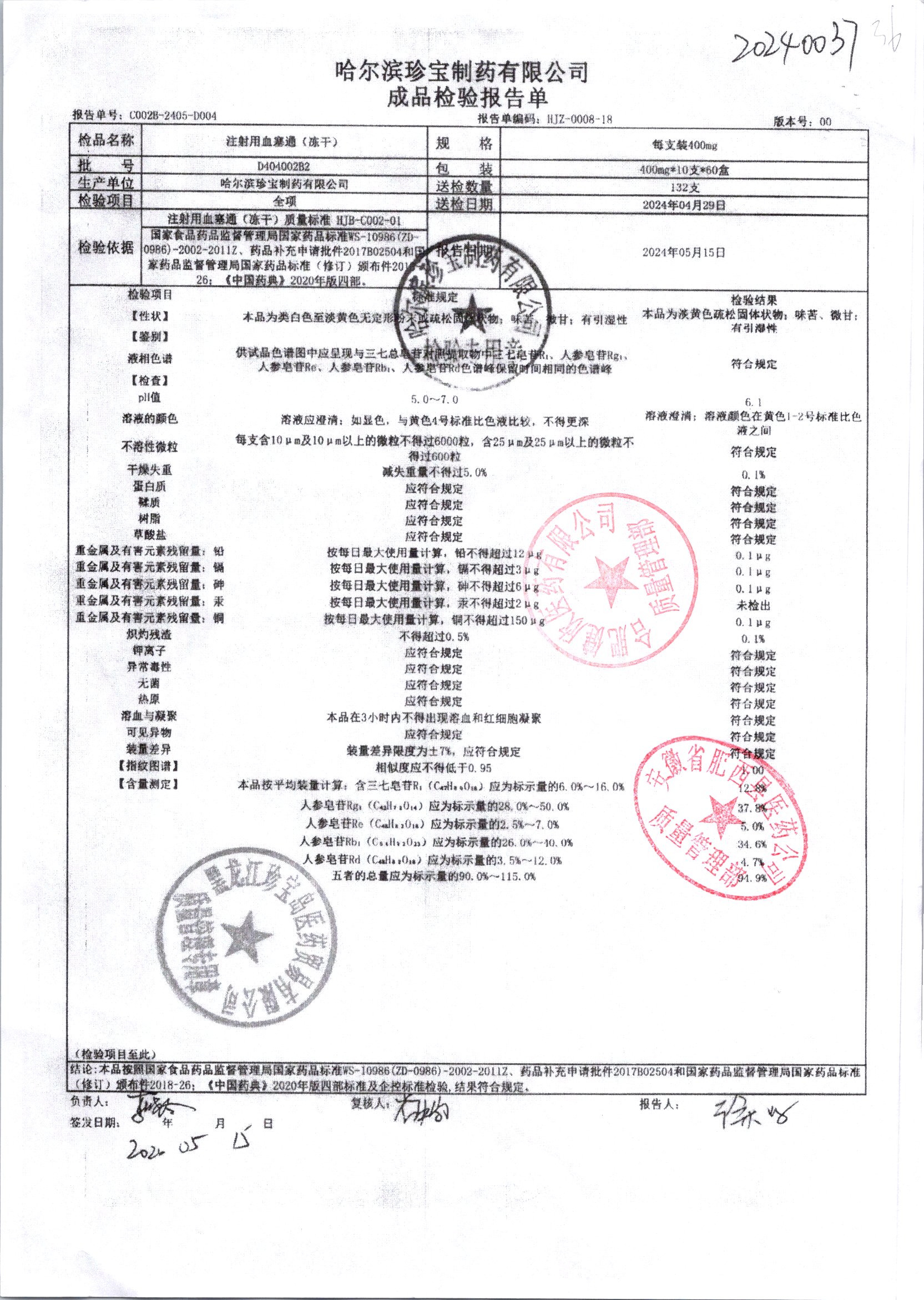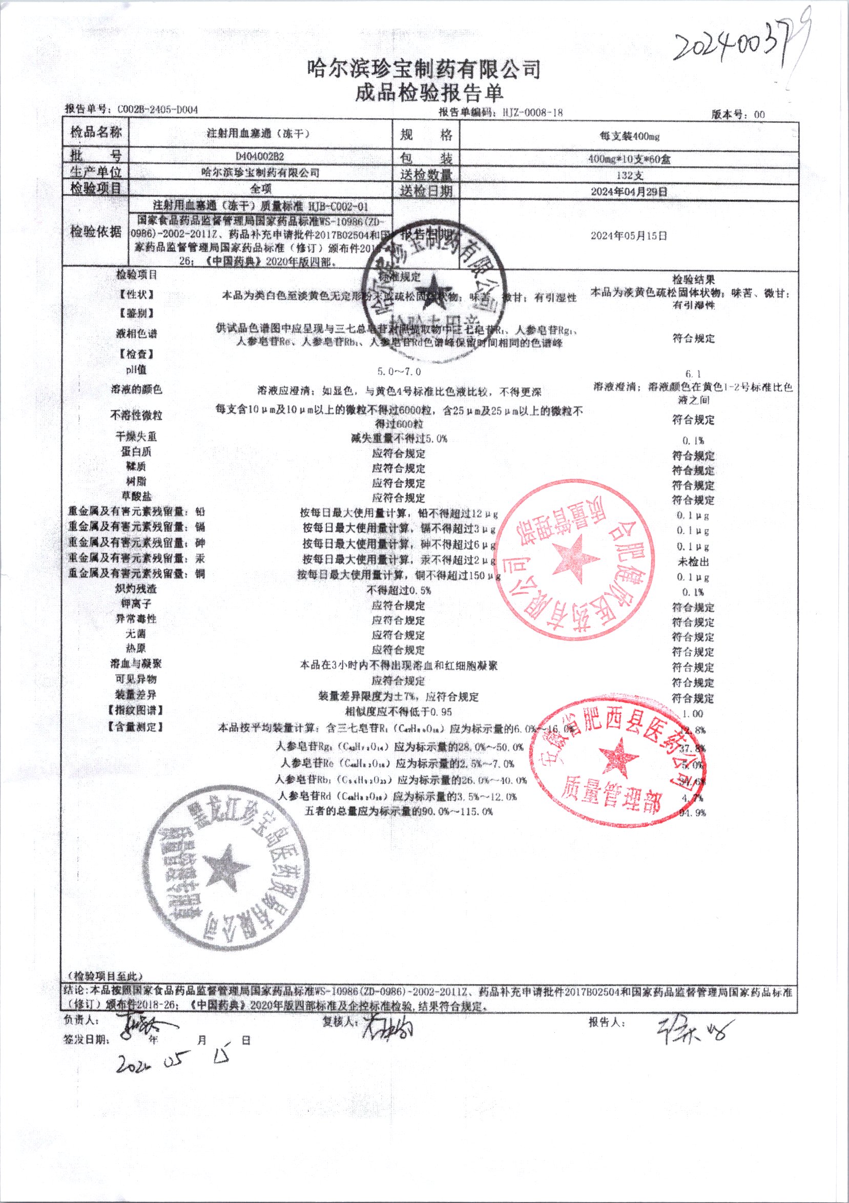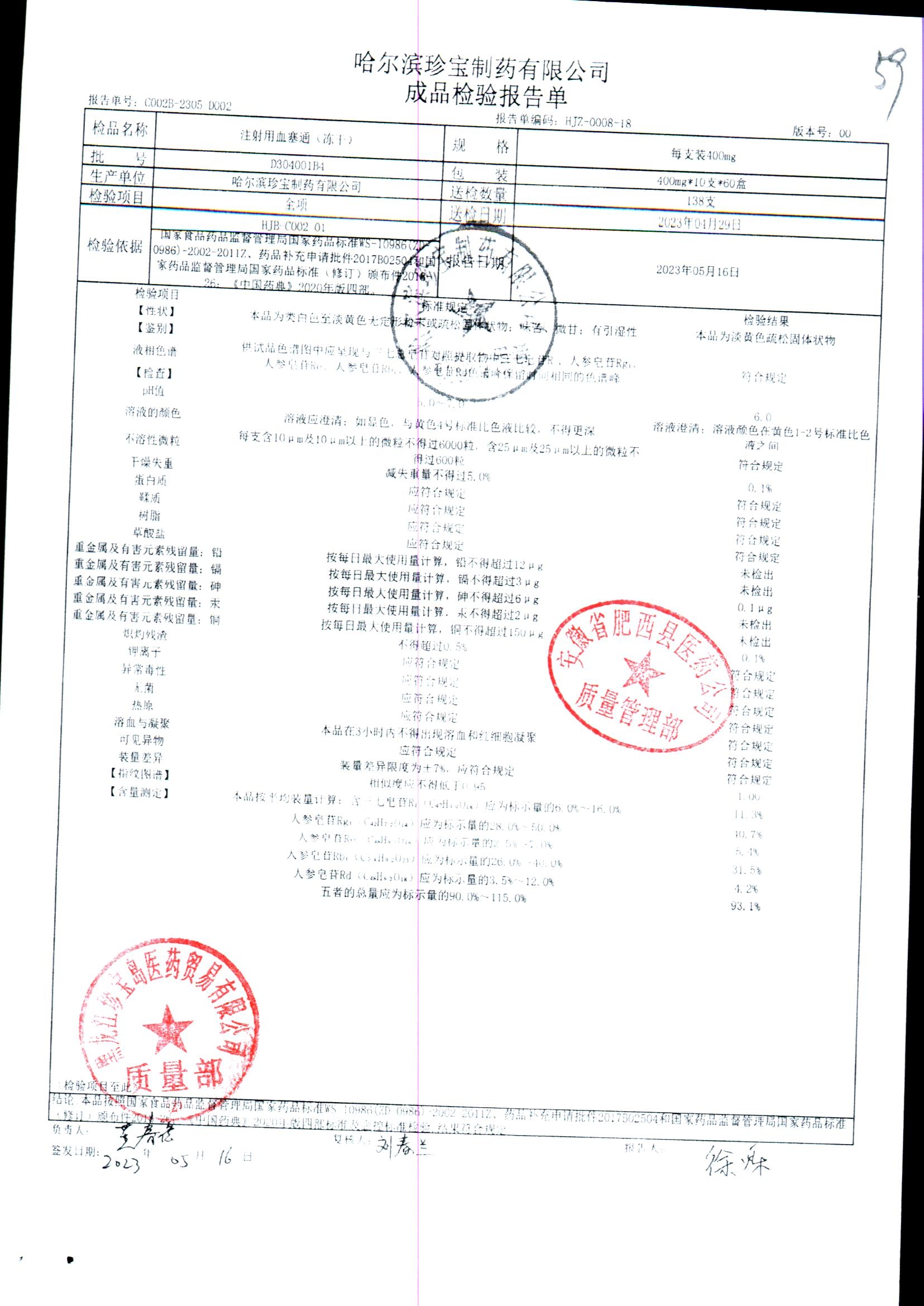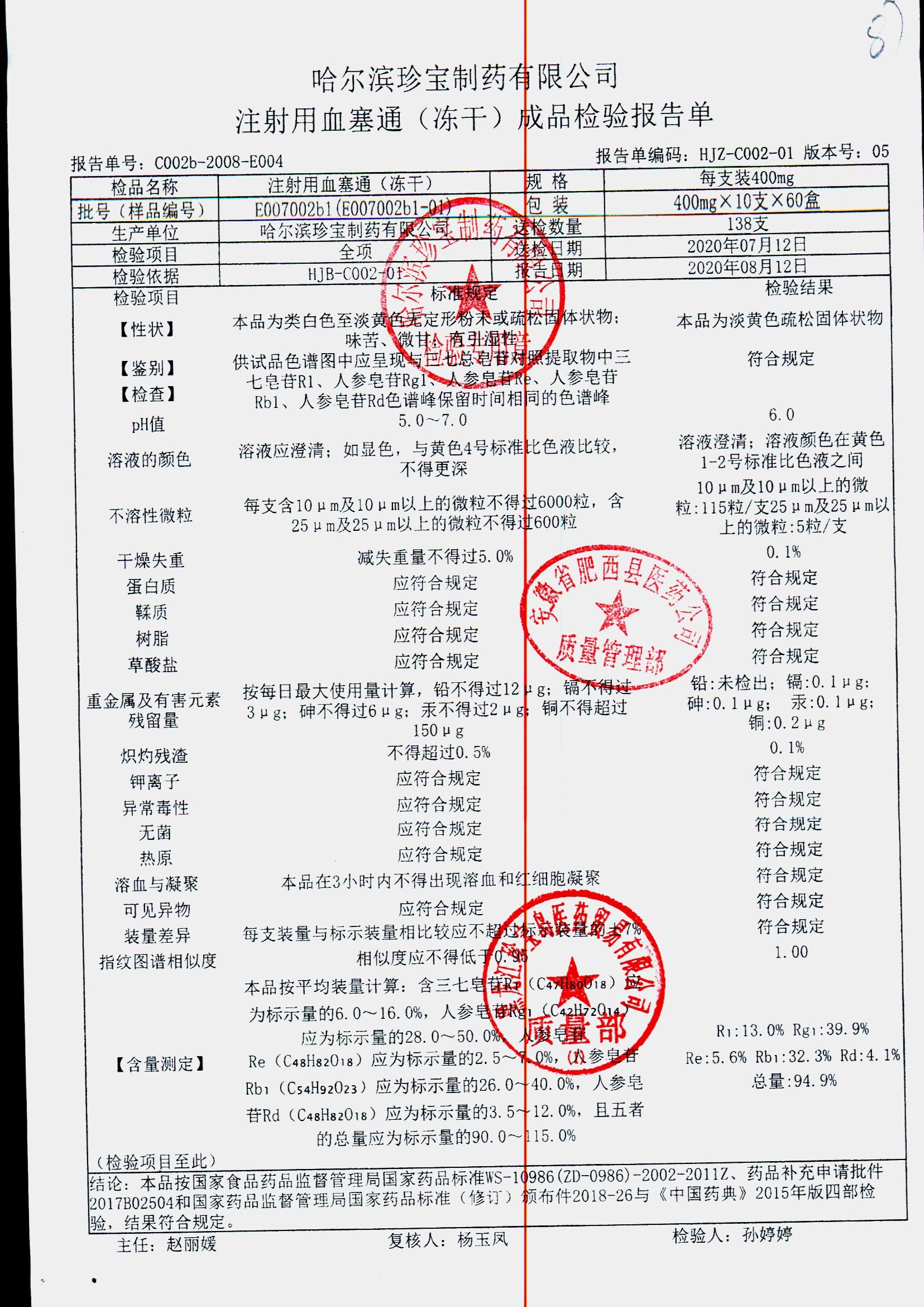 注射用血塞通(冻干) | 400mg*10支 | E105008b4(E 105008b4-210501) | 查看详情 |