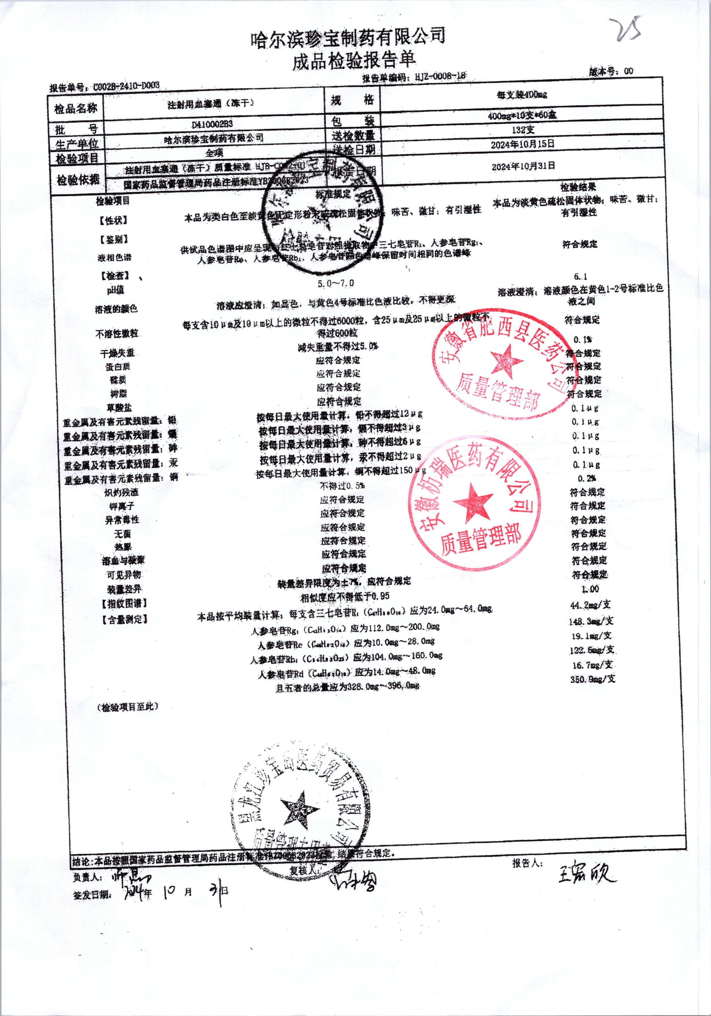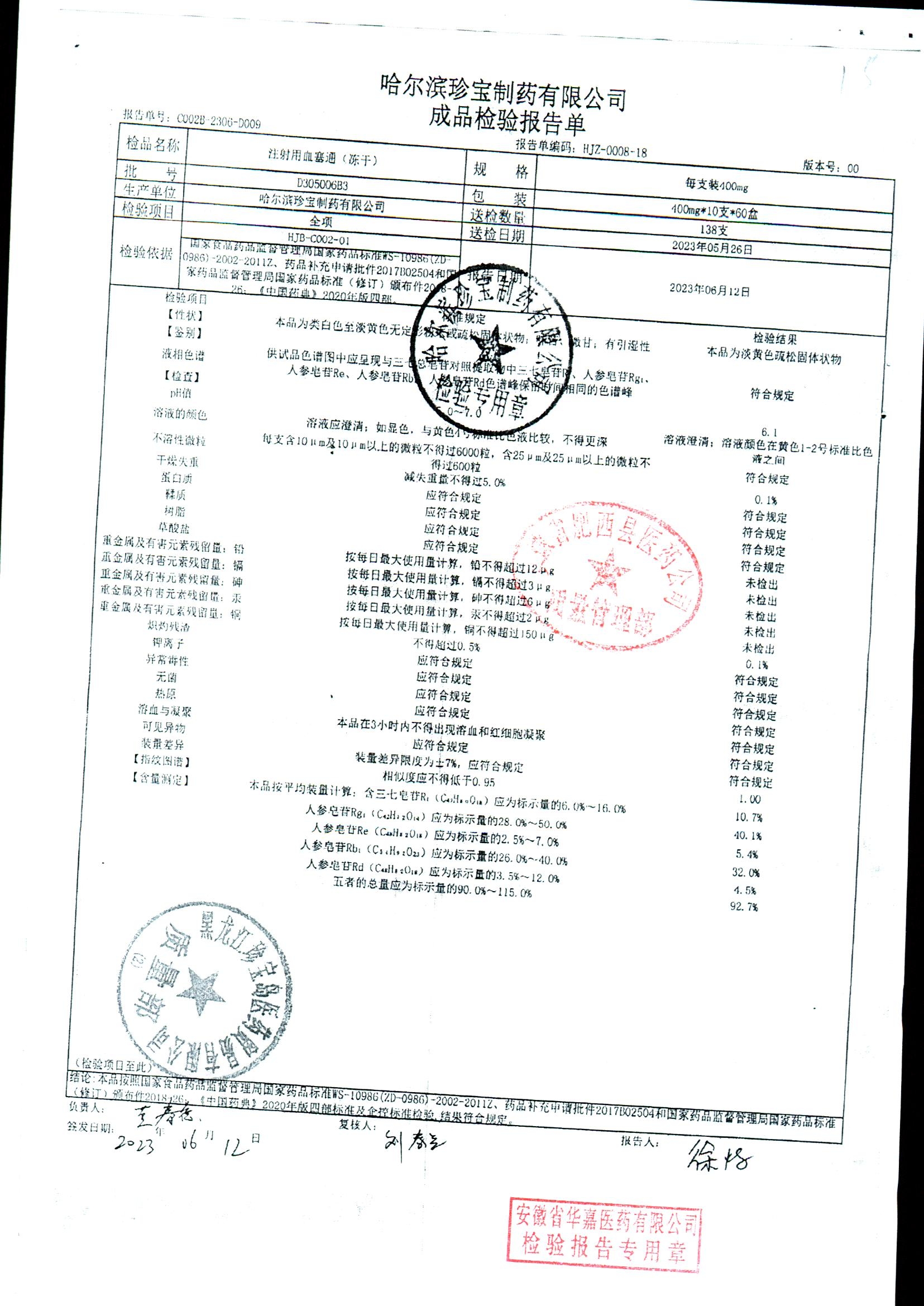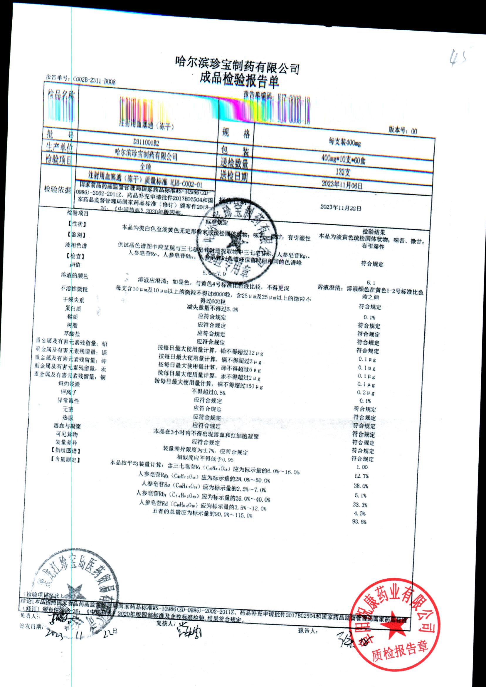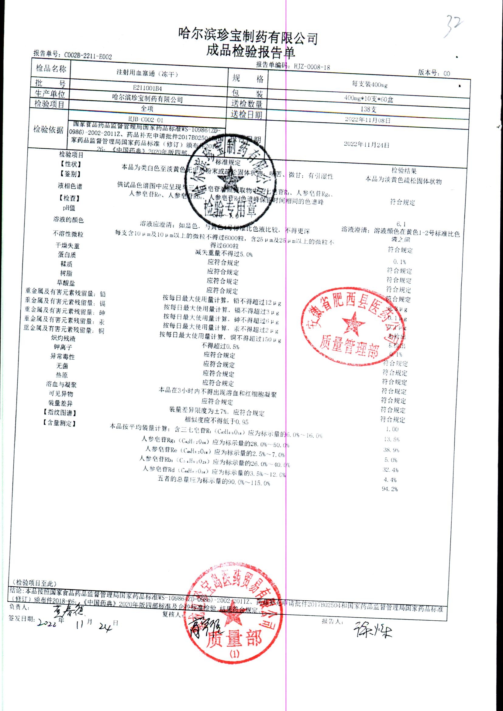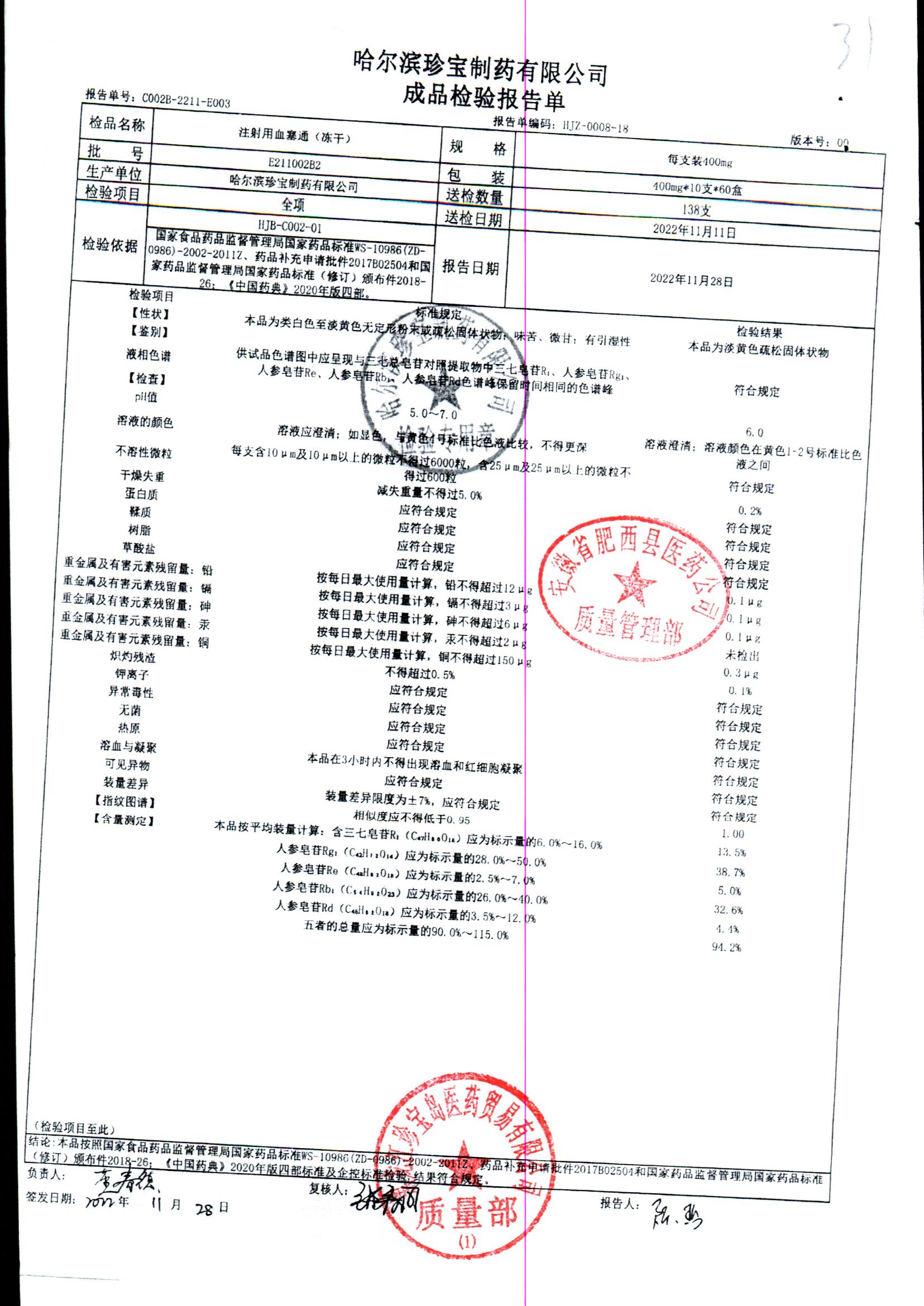 注射用血塞通(冻干) | 400mg*10支 | E211006B2 | 查看详情 |