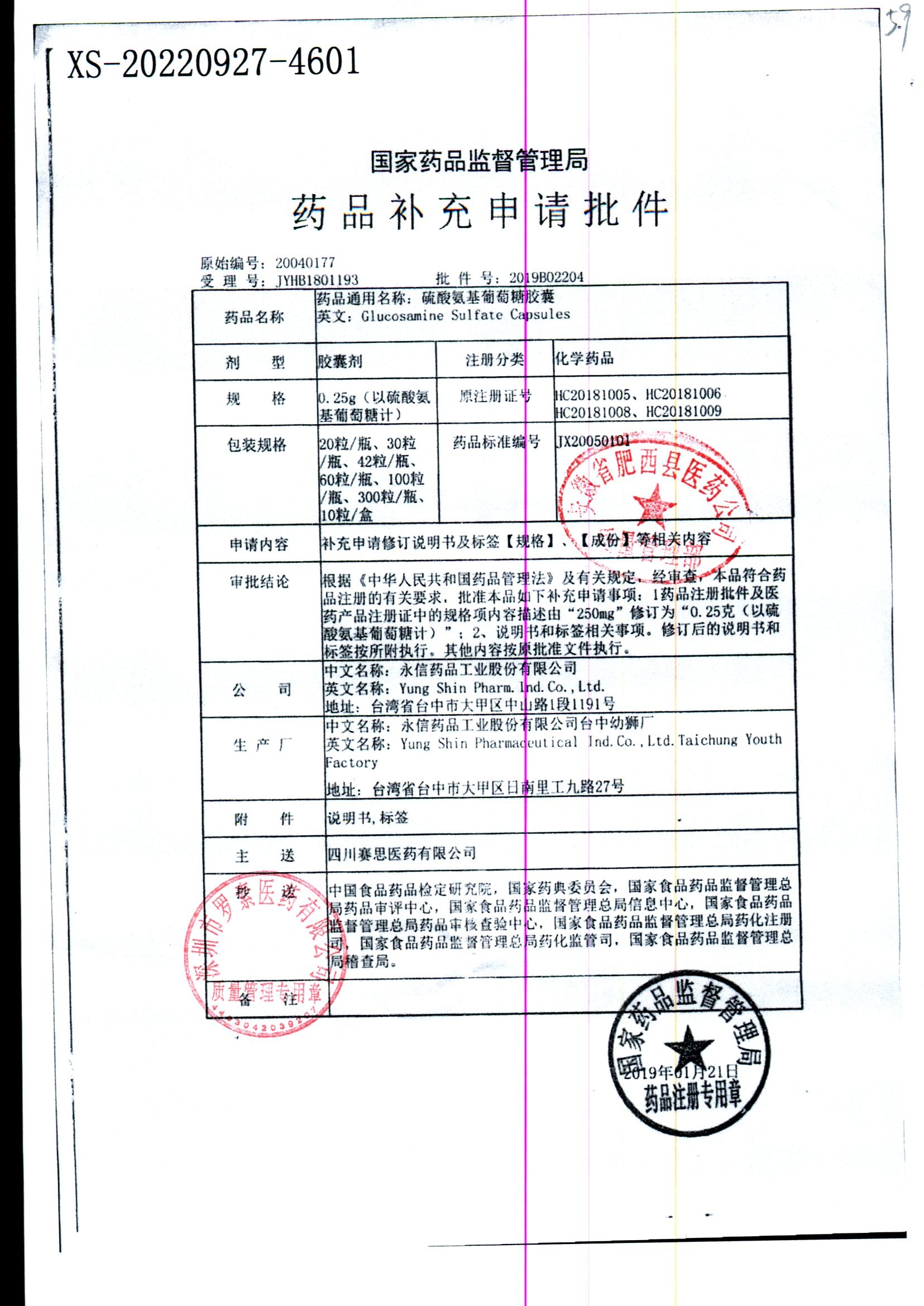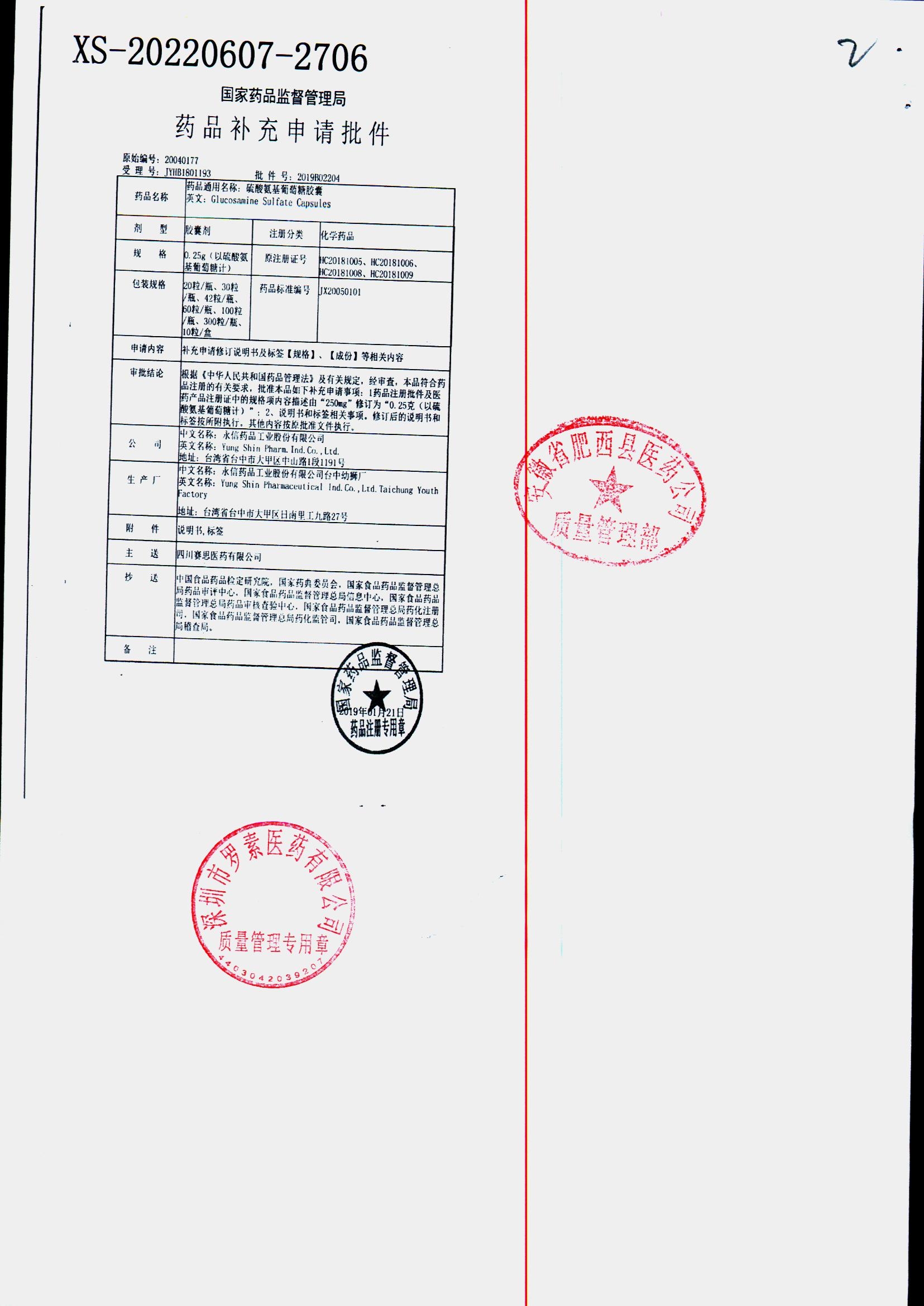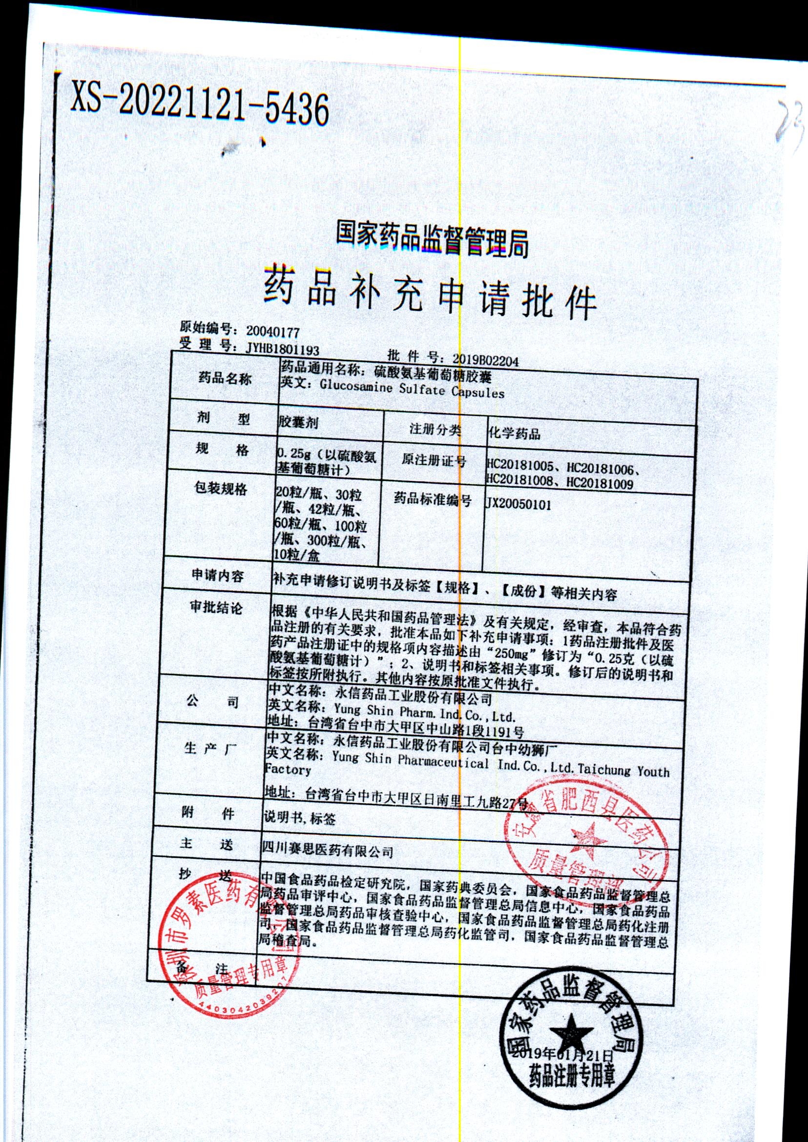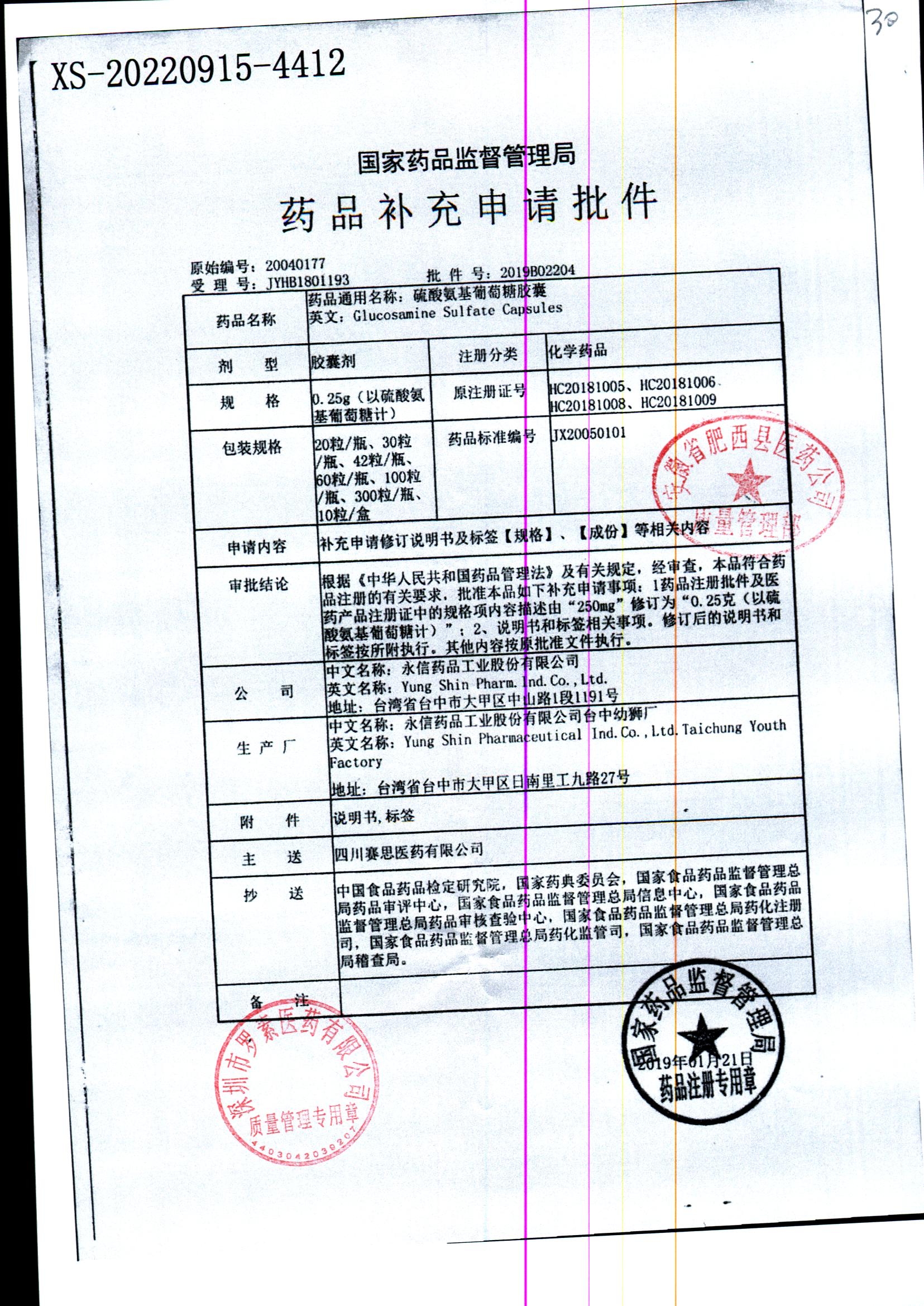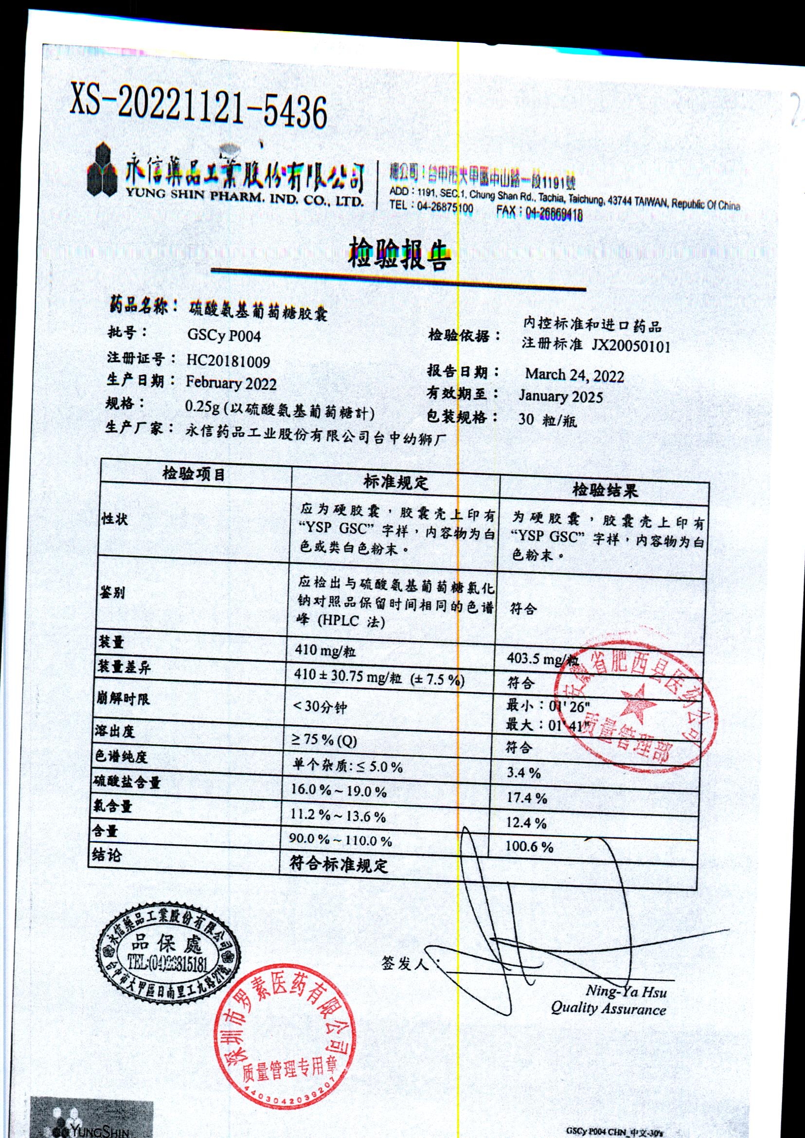 硫酸氨基葡萄糖胶囊 | 0.25g*30粒 | GSCYS018/1 | 查看详情 |