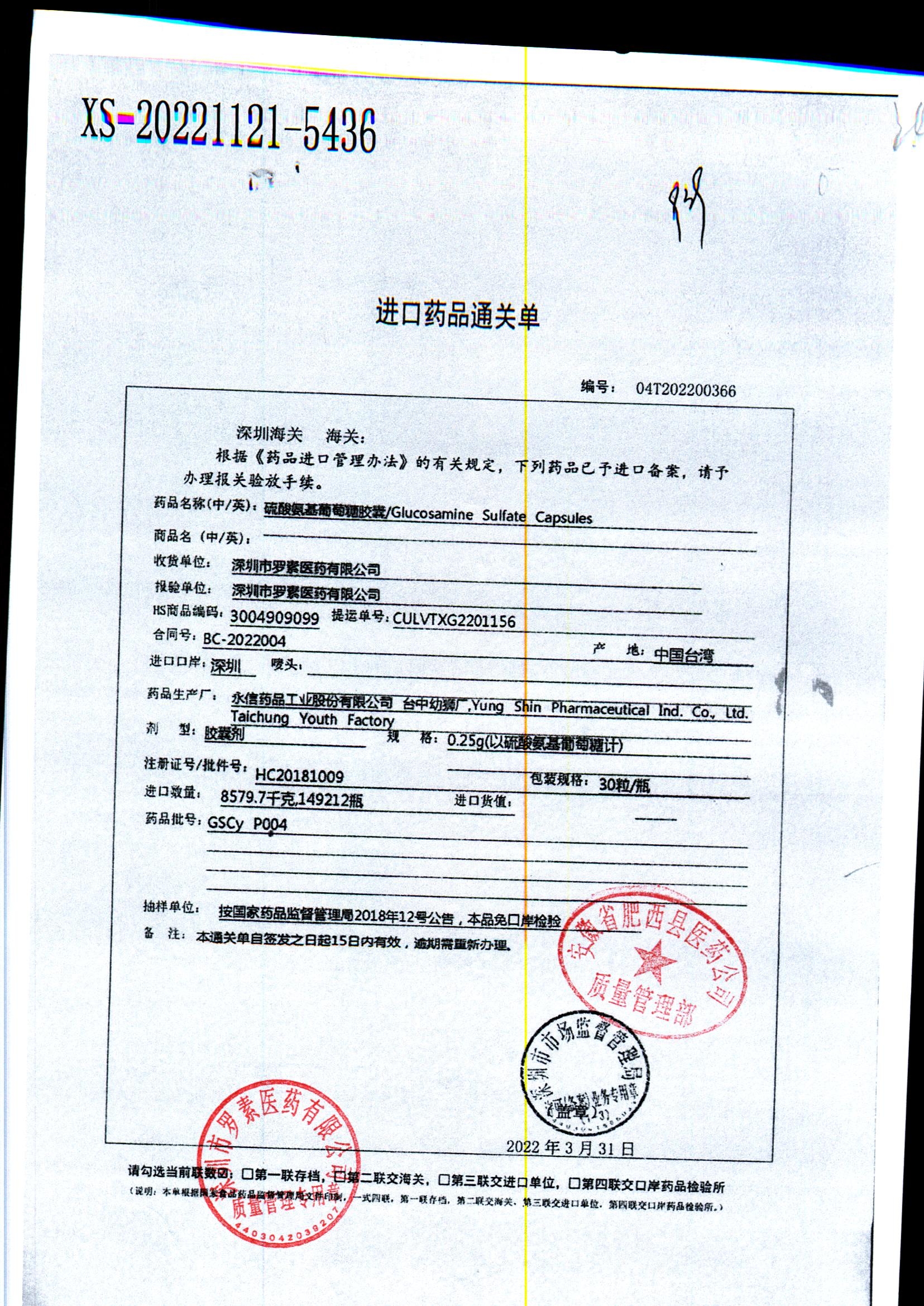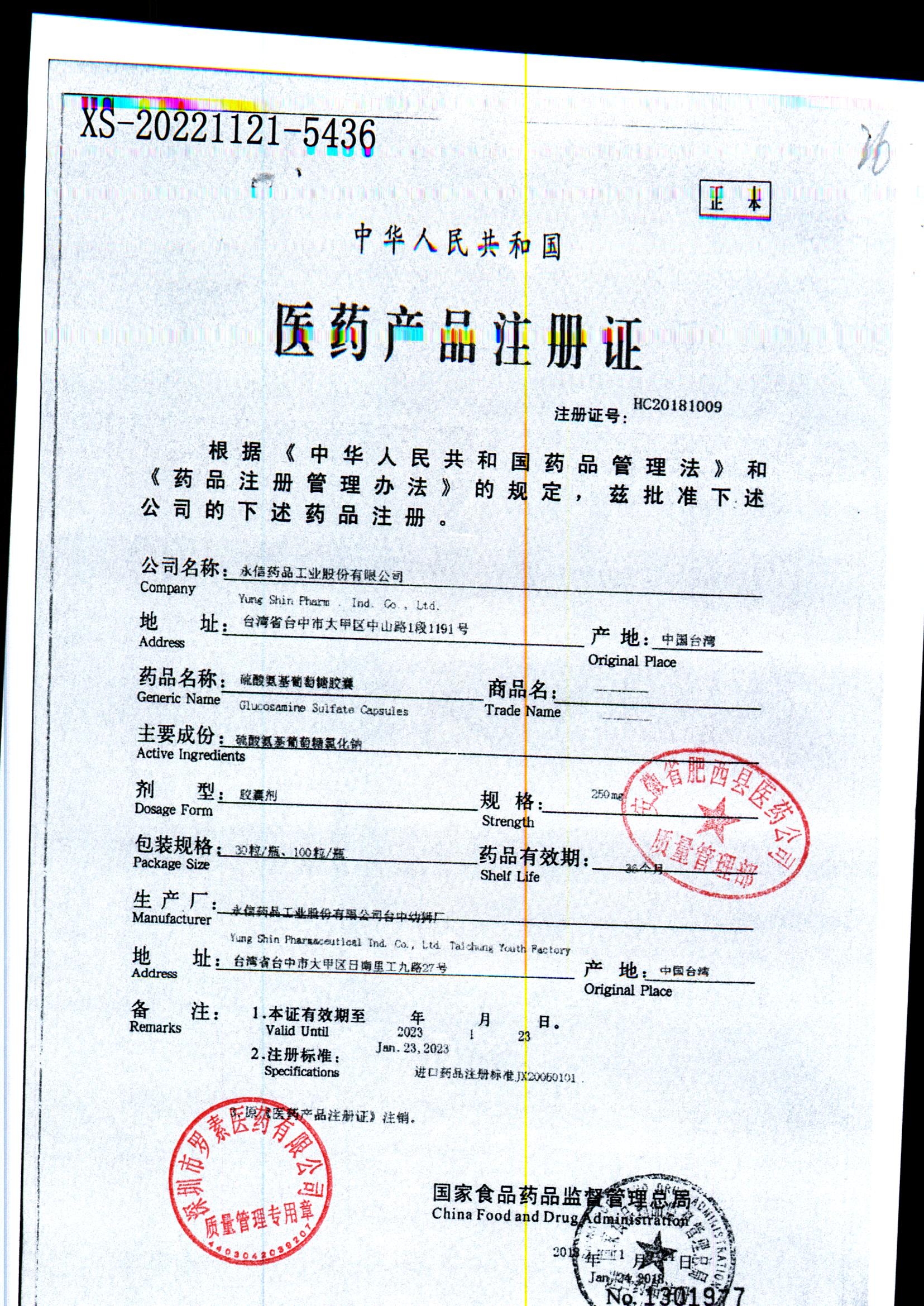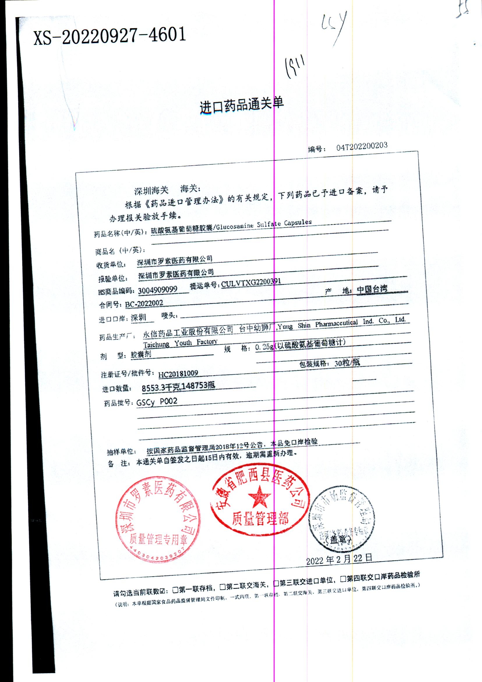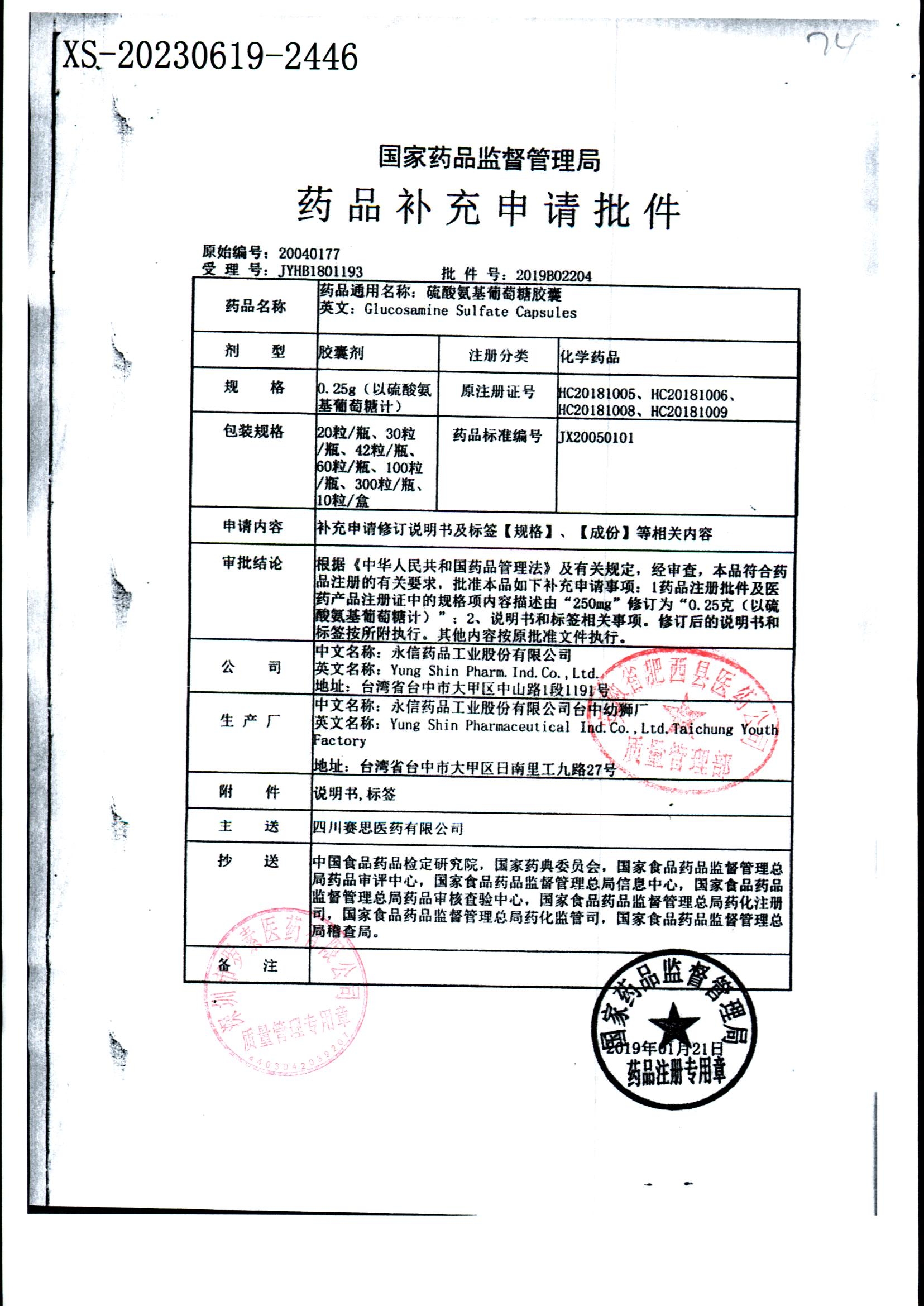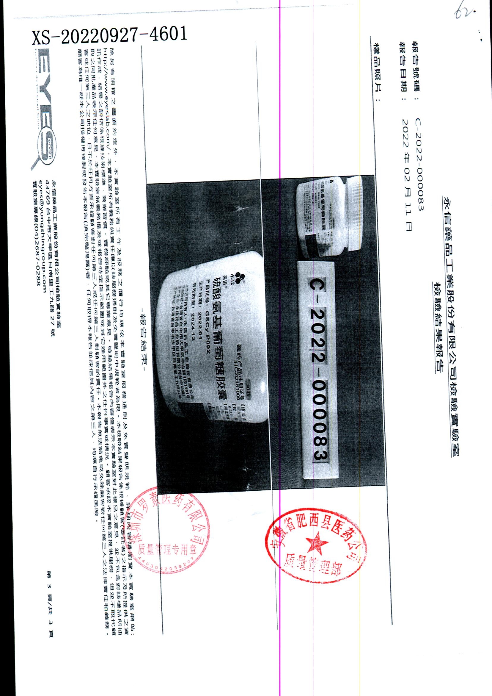 硫酸氨基葡萄糖胶囊 | 0.25g*30粒 | GSCYS018/1 | 查看详情 |