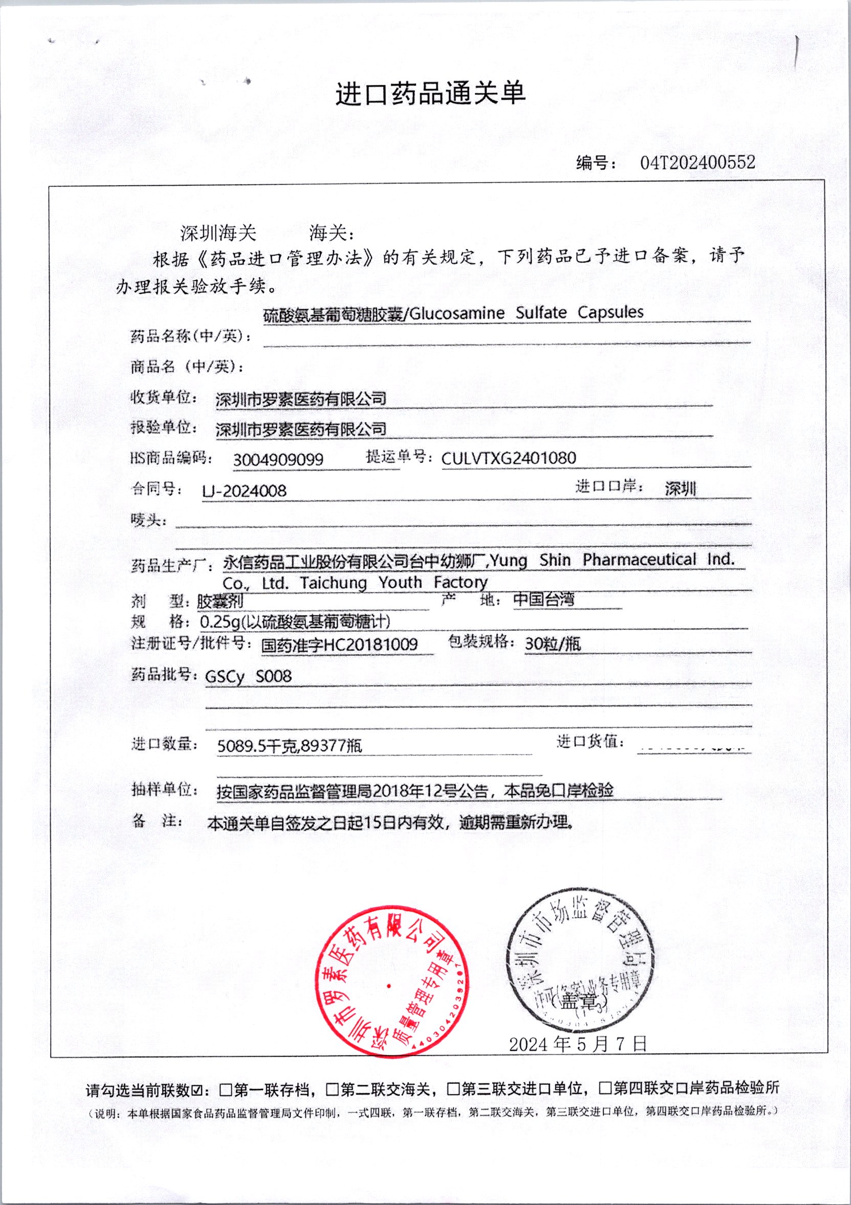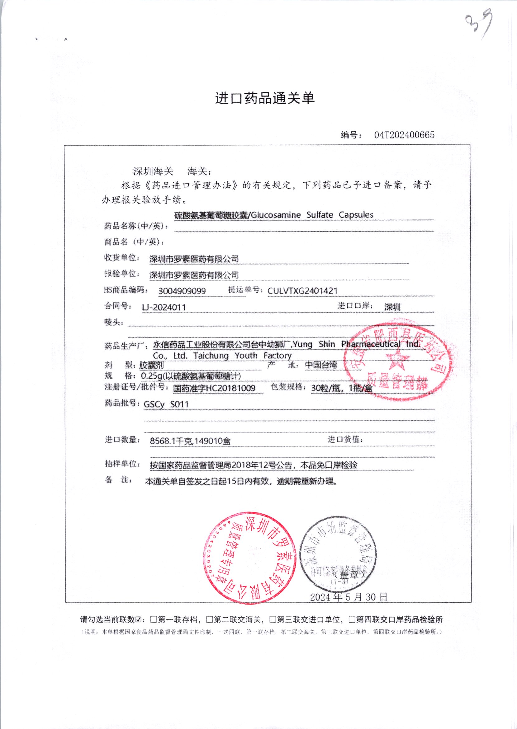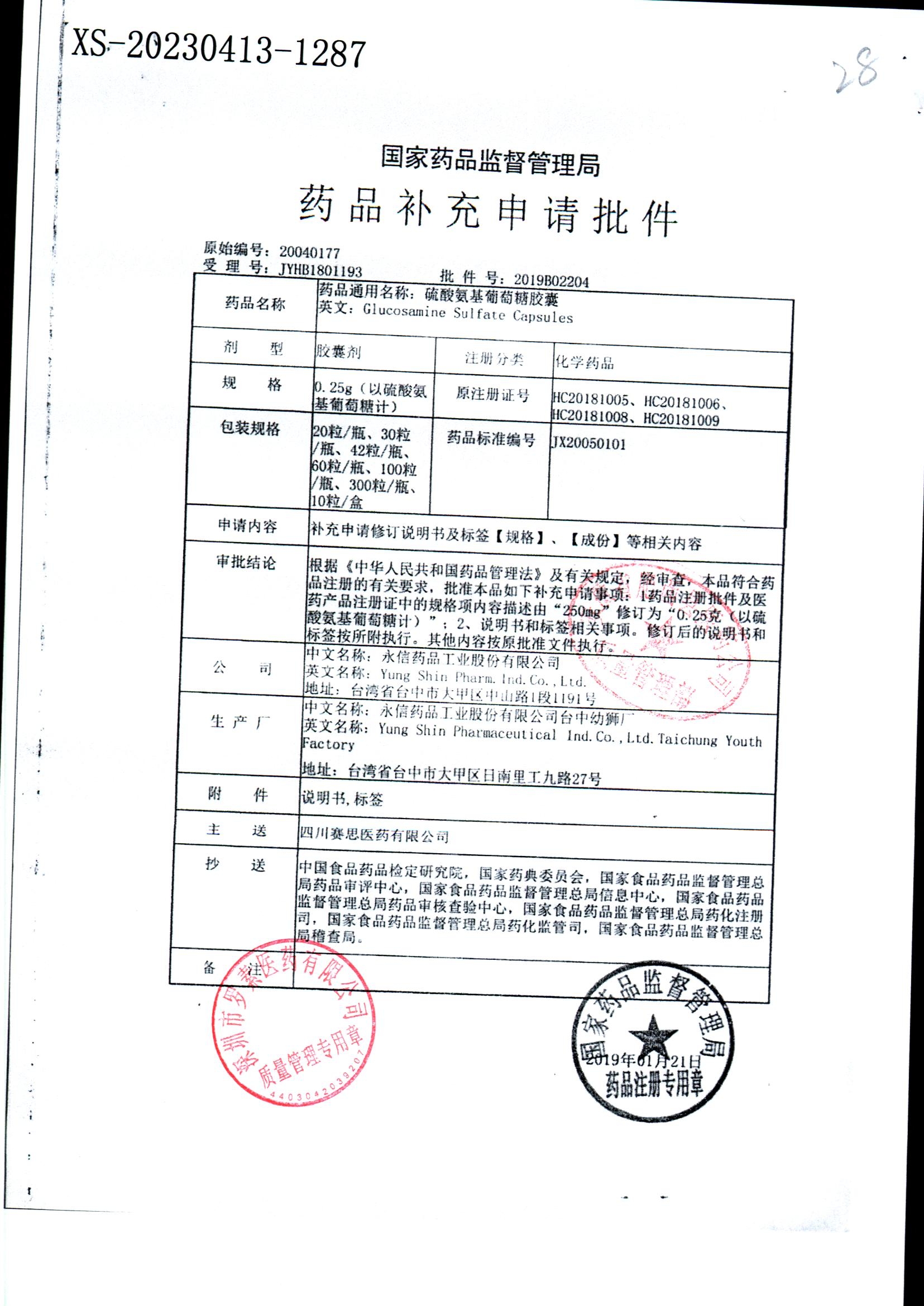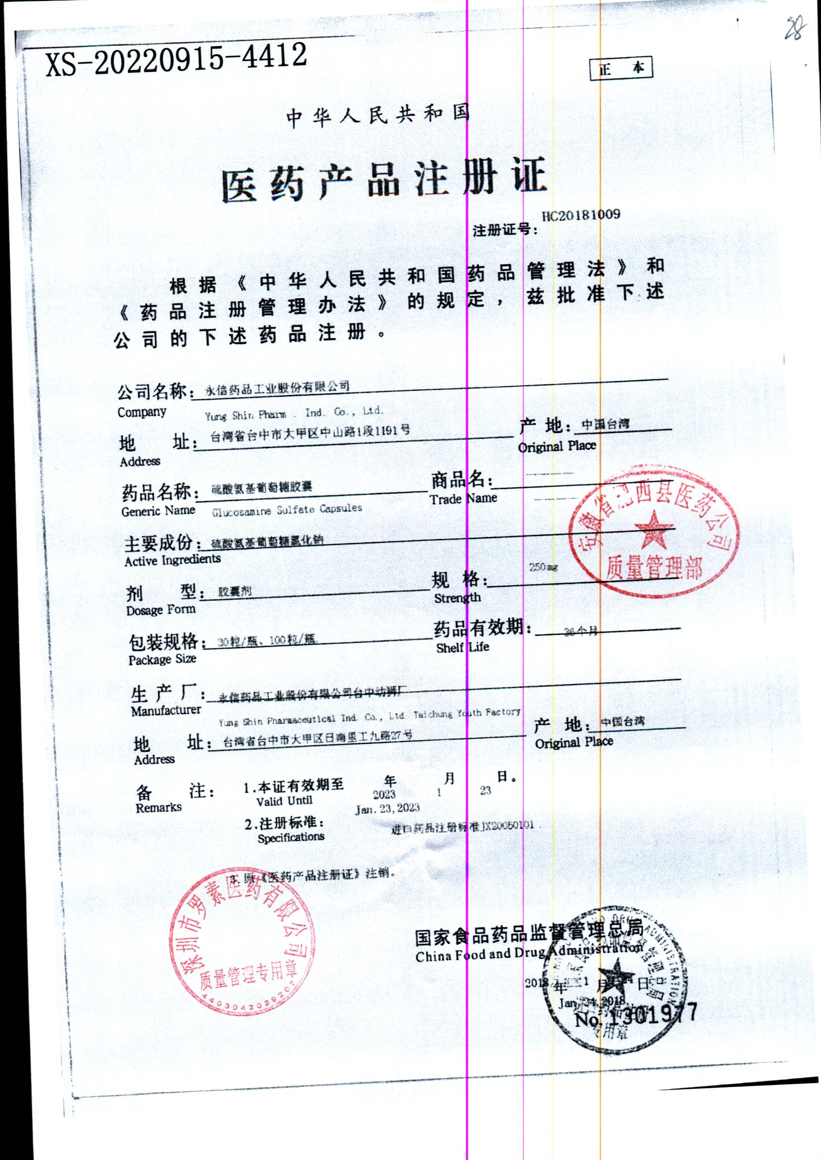 硫酸氨基葡萄糖胶囊 | 0.25g*30粒 | GSCYS018/1 | 查看详情 |