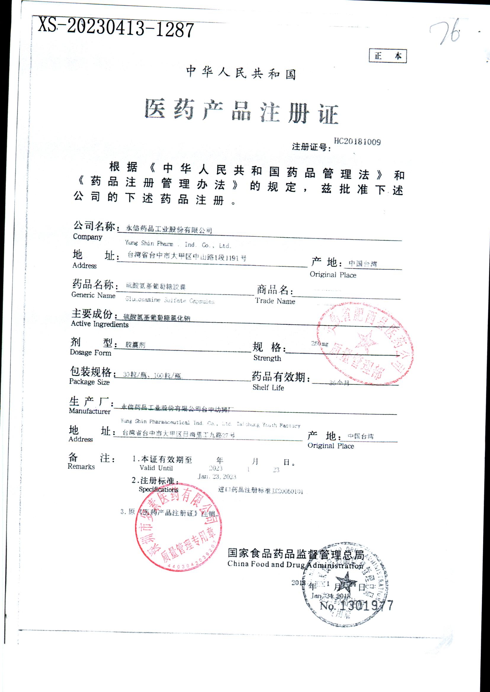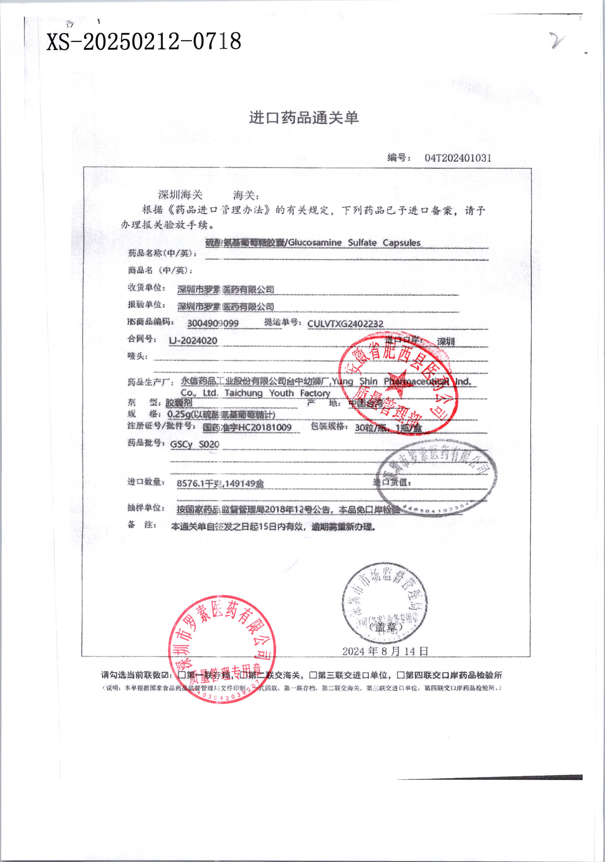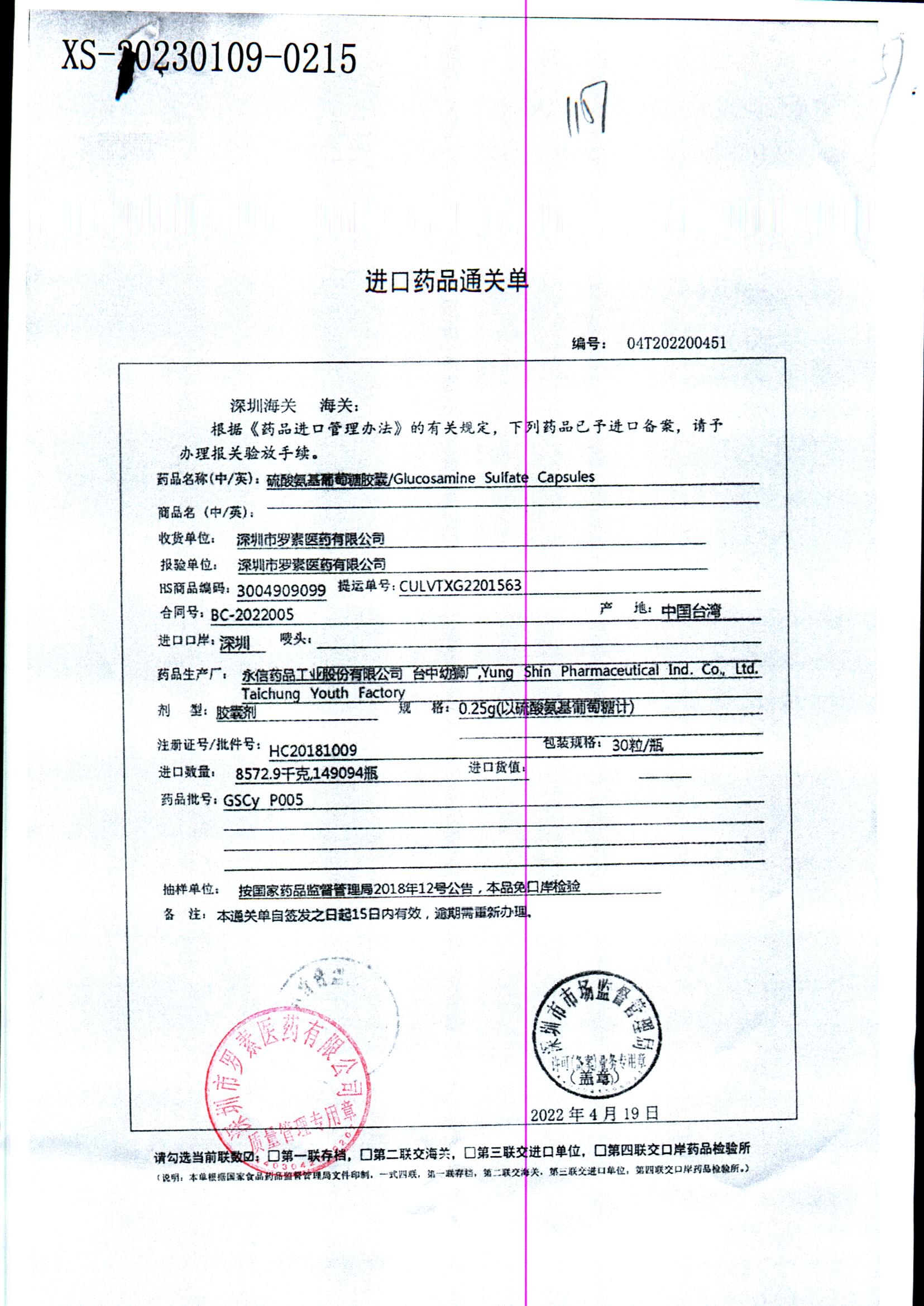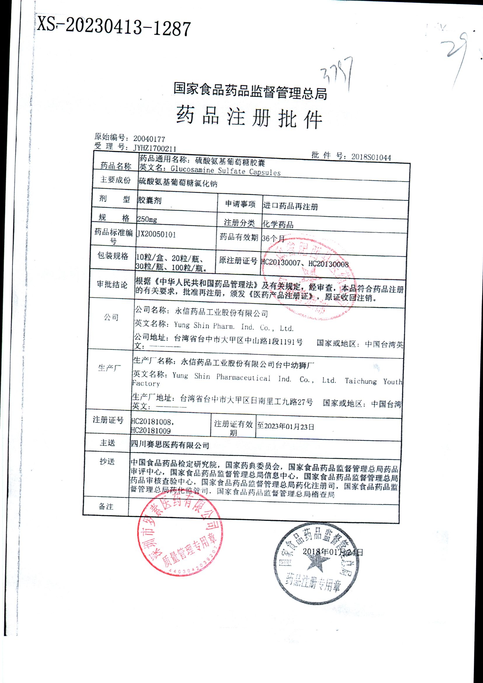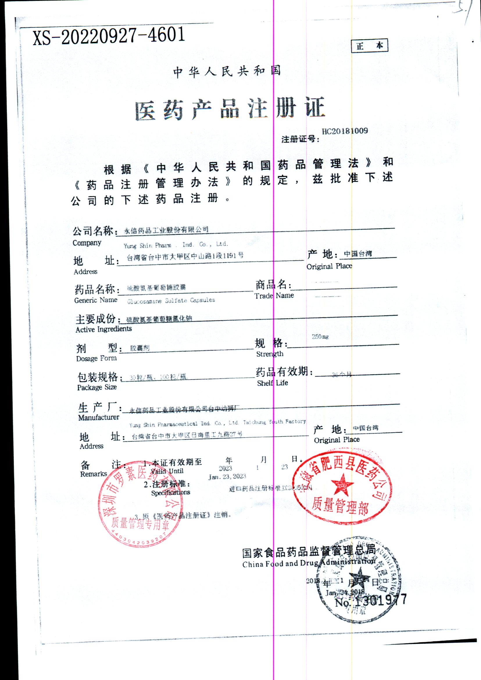 硫酸氨基葡萄糖胶囊 | 0.25g*30粒 | GSCYS018/1 | 查看详情 |