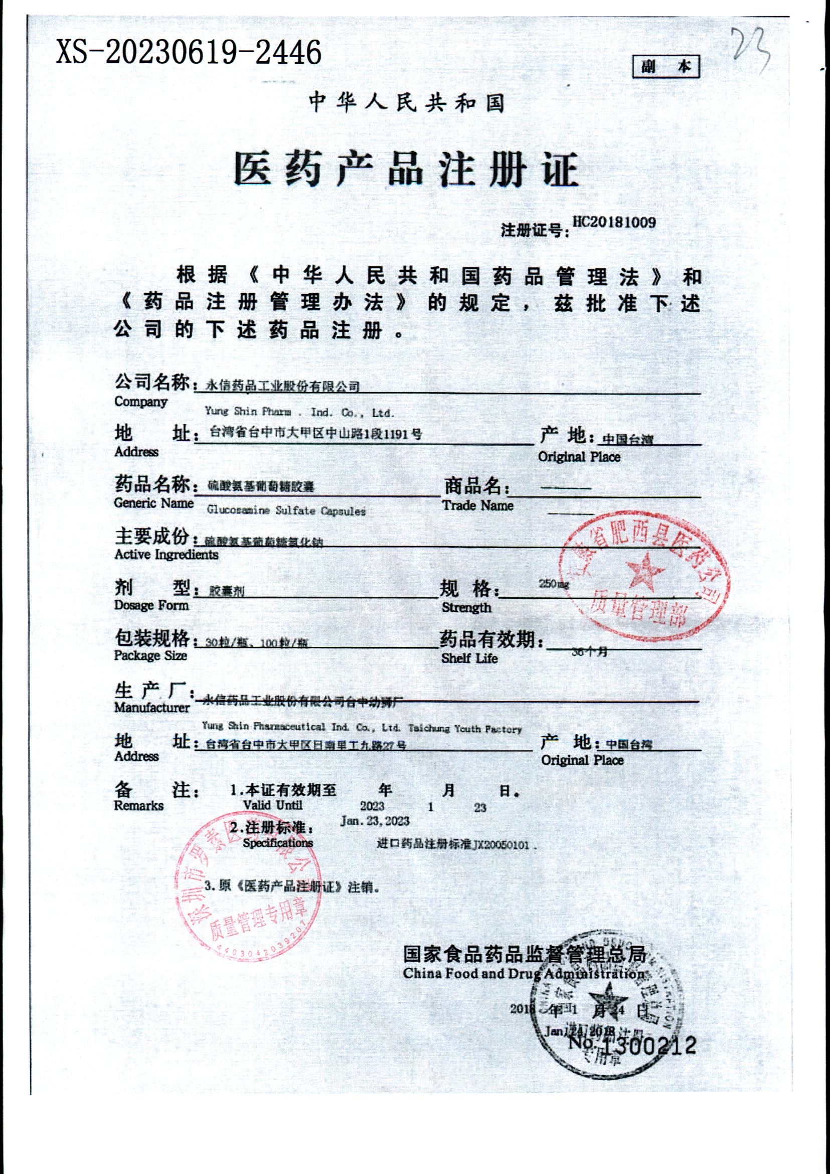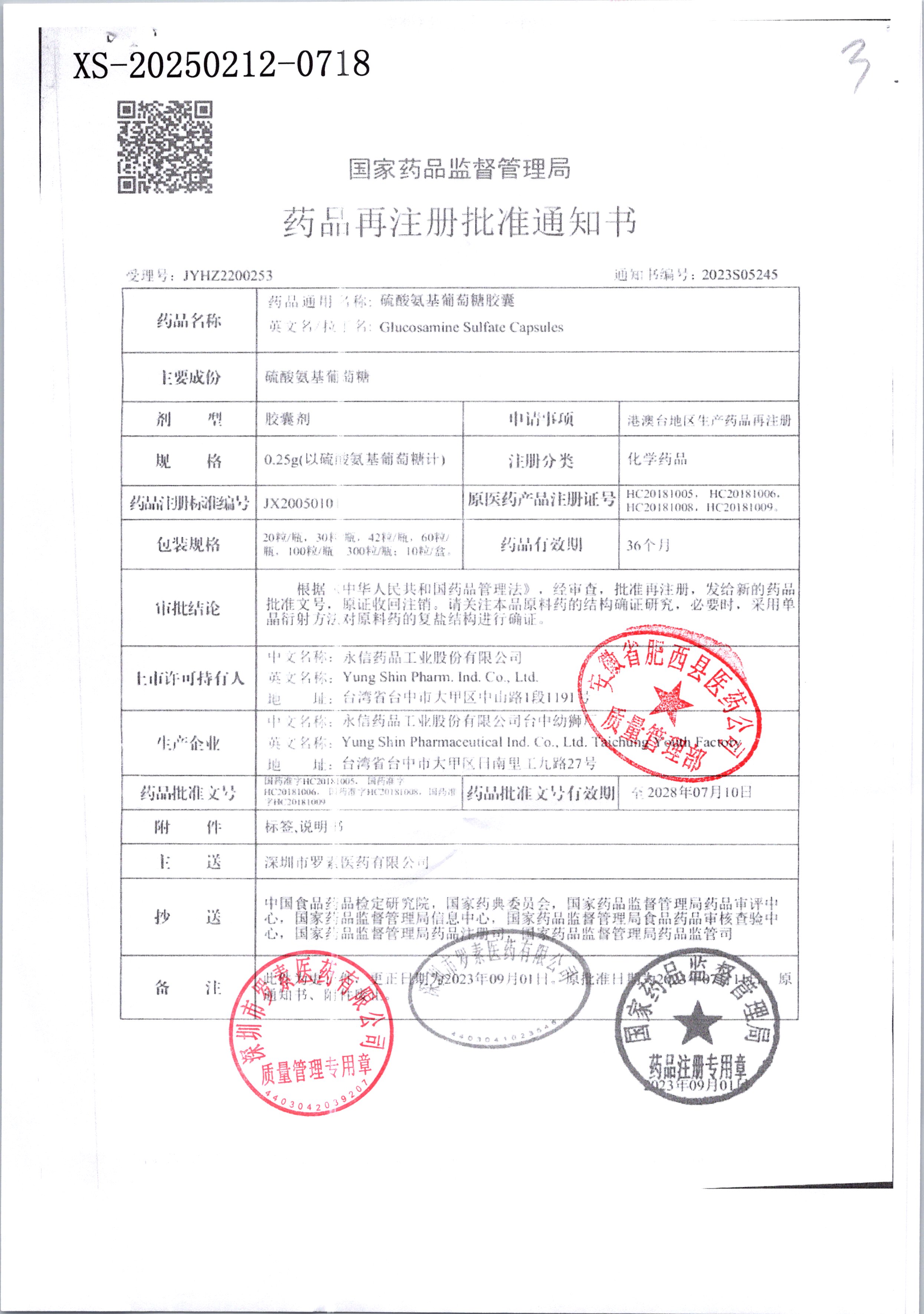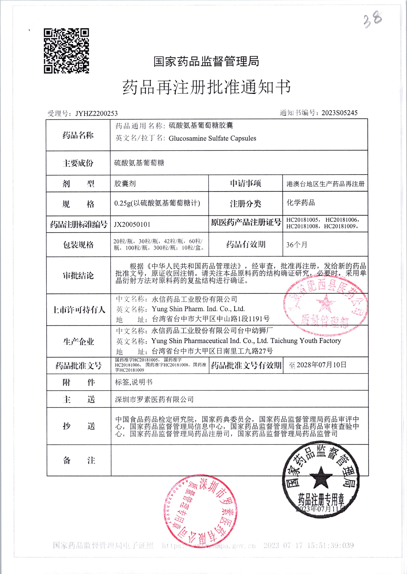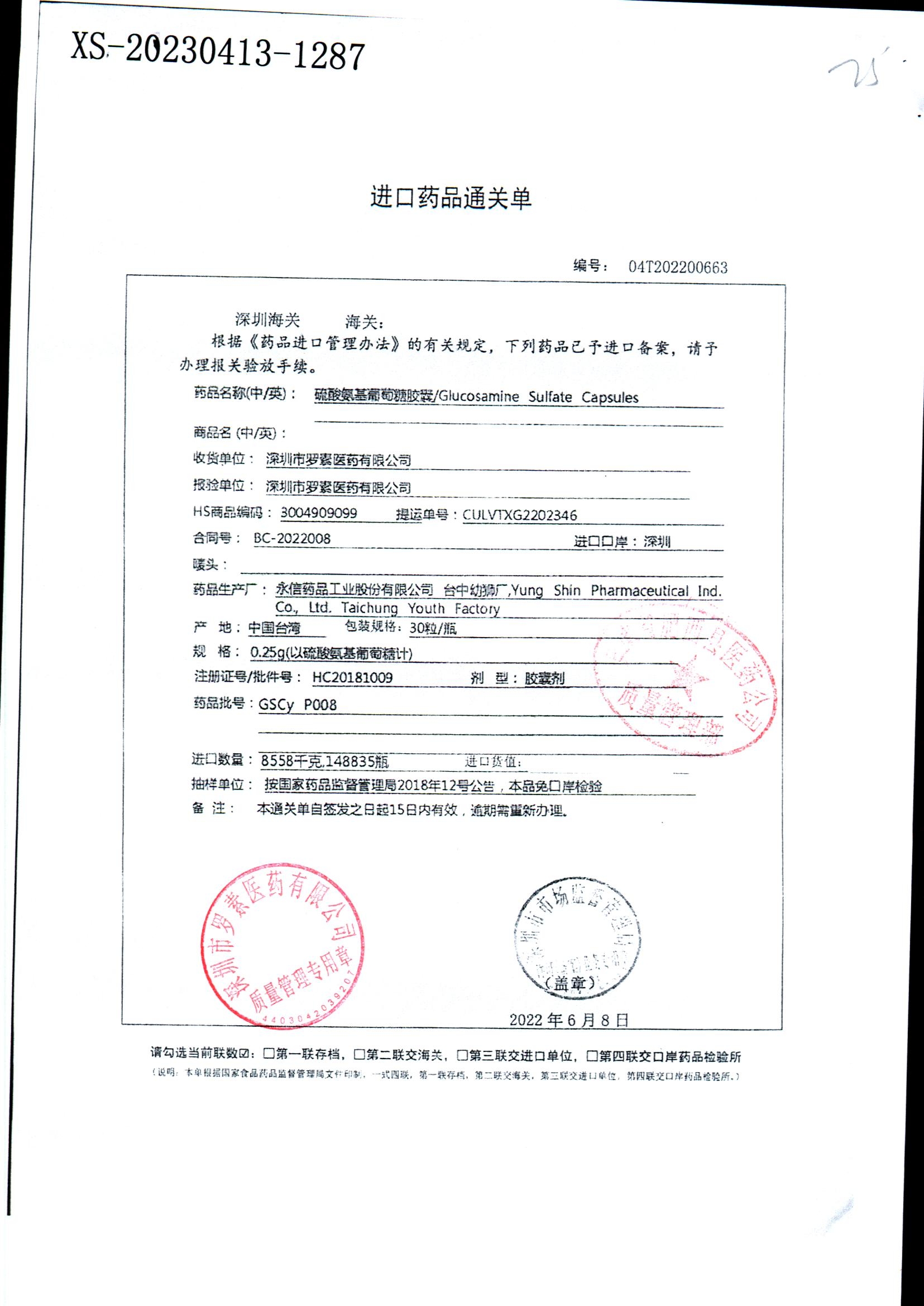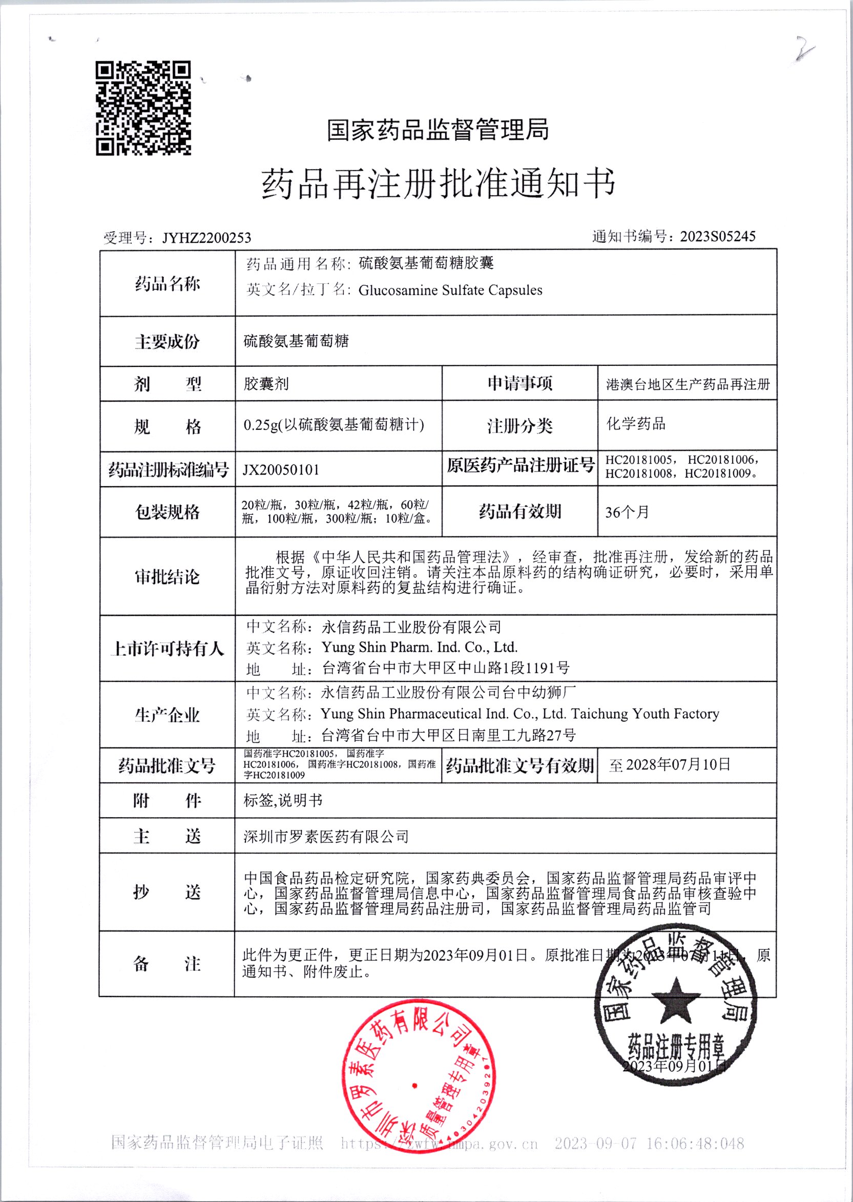 硫酸氨基葡萄糖胶囊 | 0.25g*30粒 | GSCYS018/1 | 查看详情 |