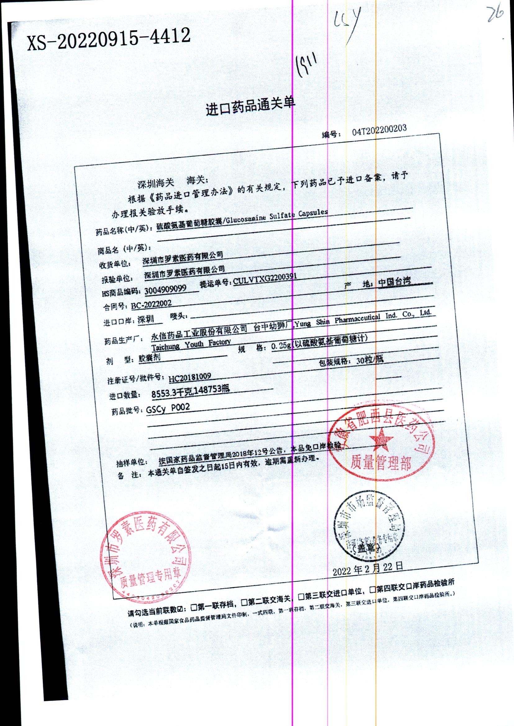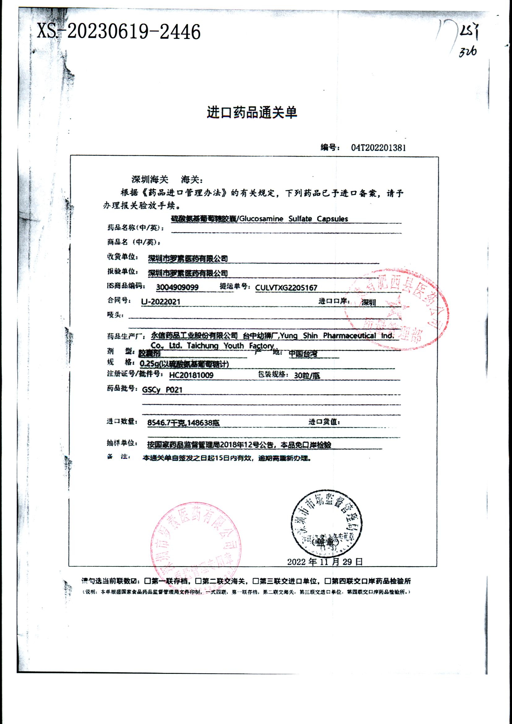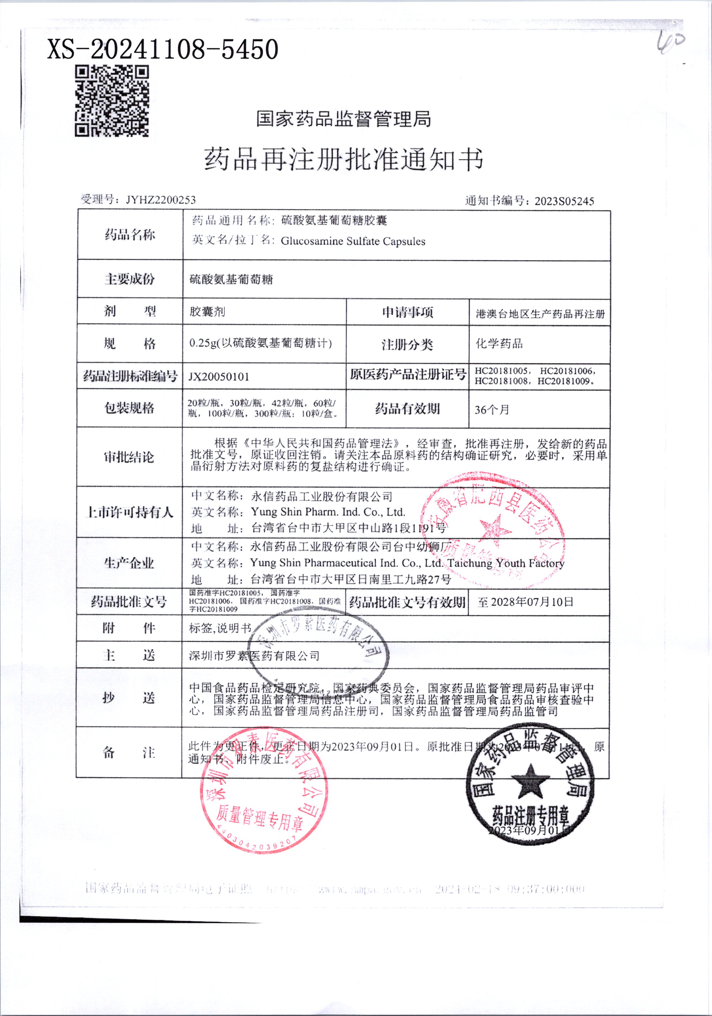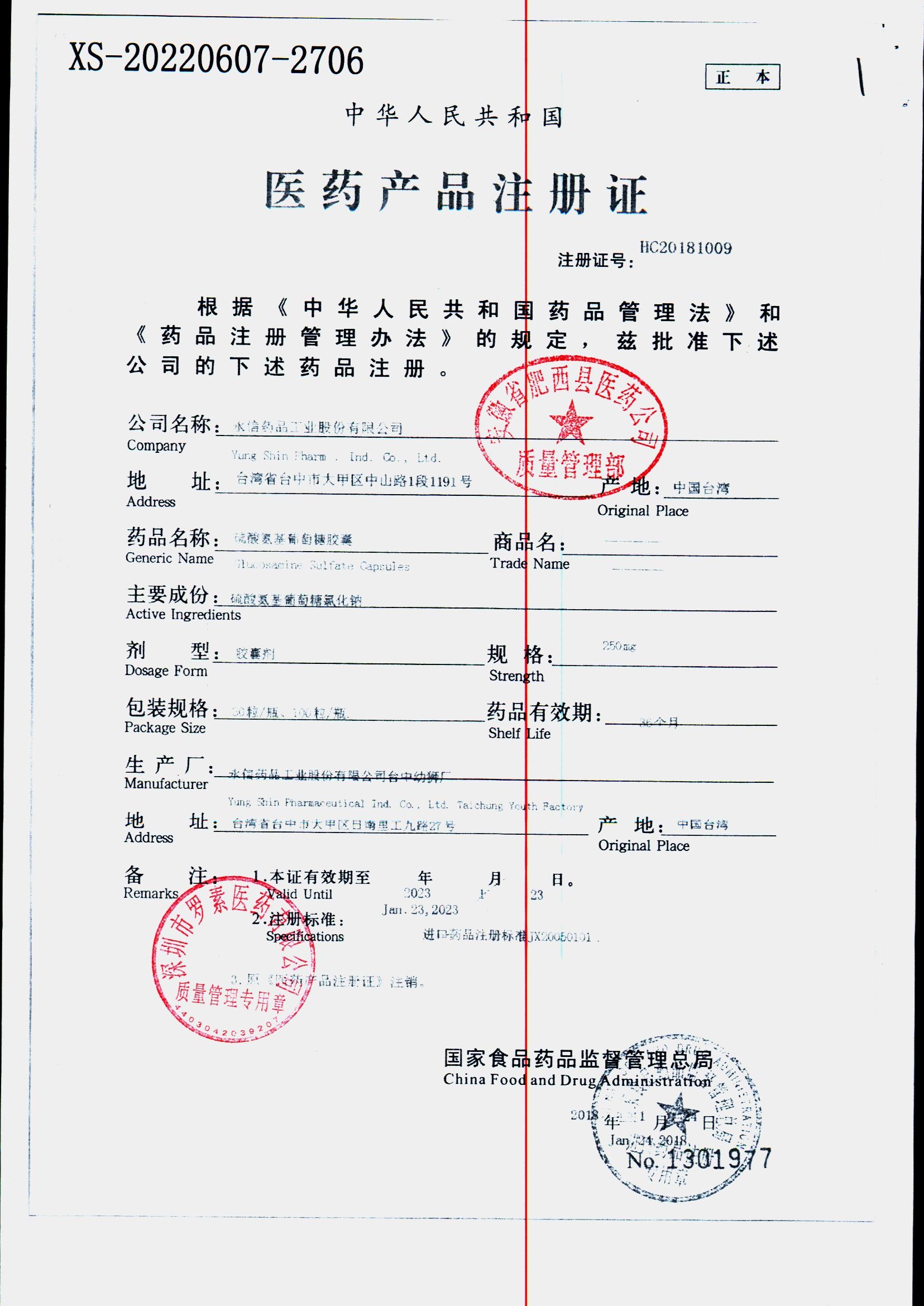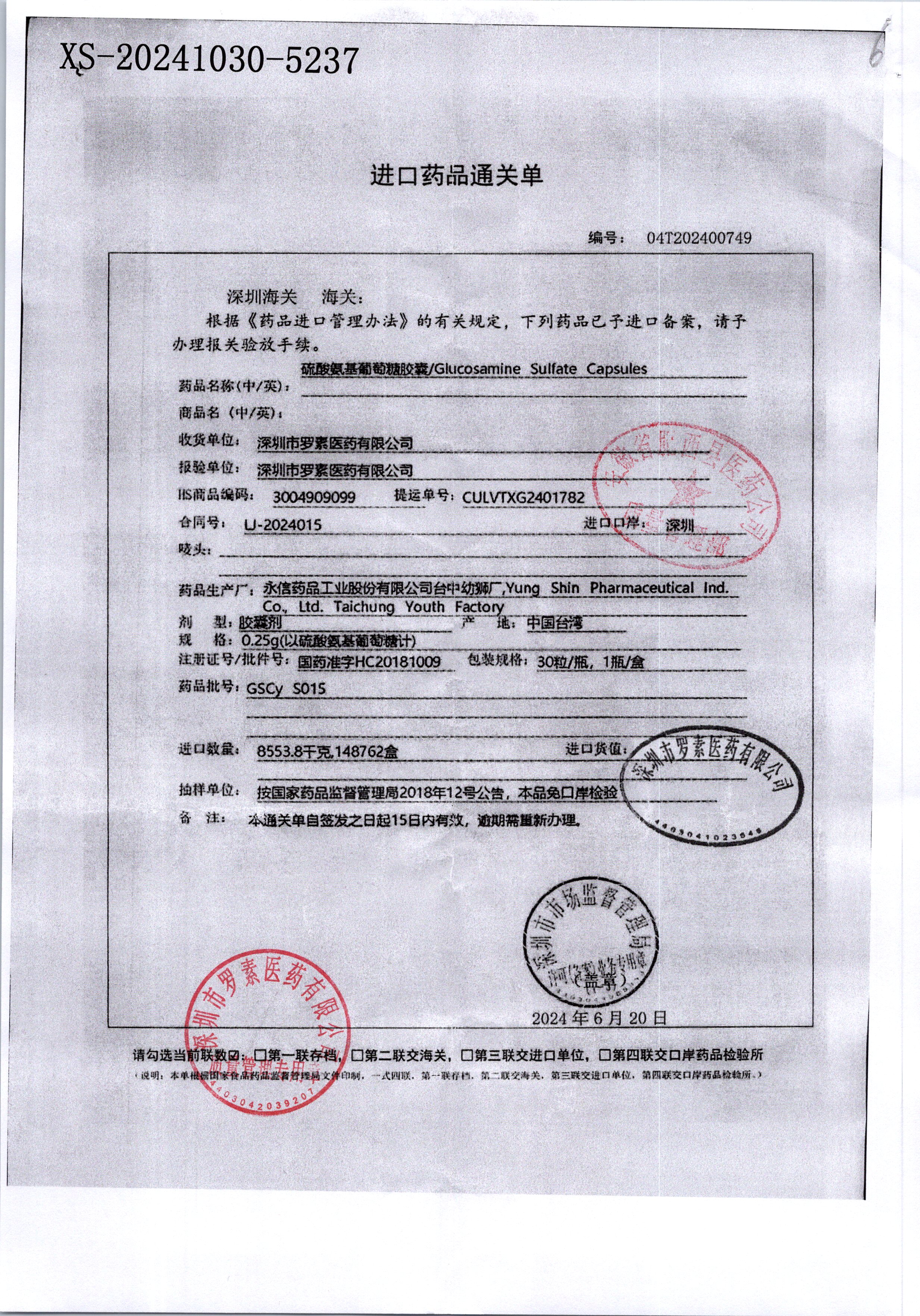 硫酸氨基葡萄糖胶囊 | 0.25g*30粒 | GSCYS018/1 | 查看详情 |