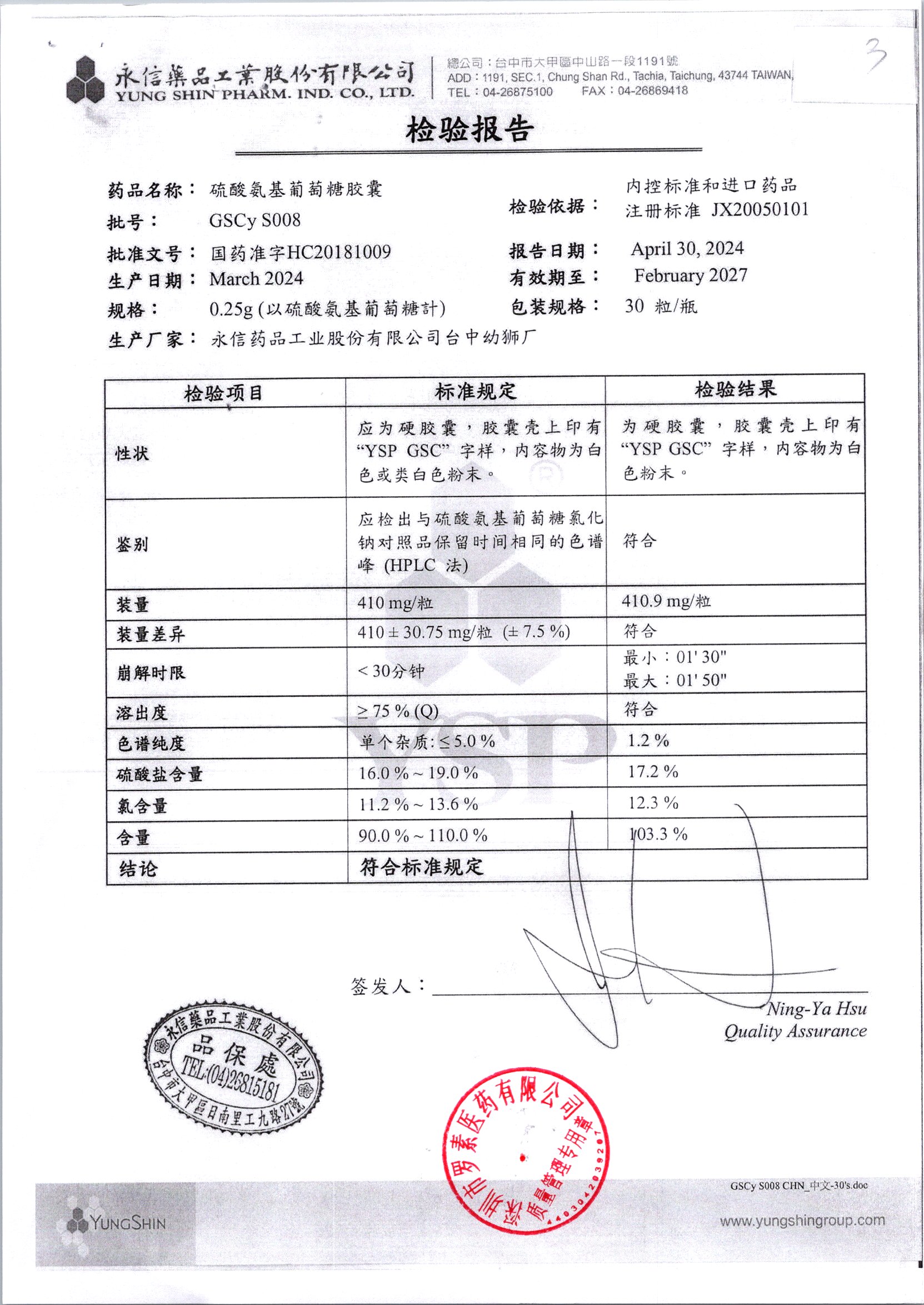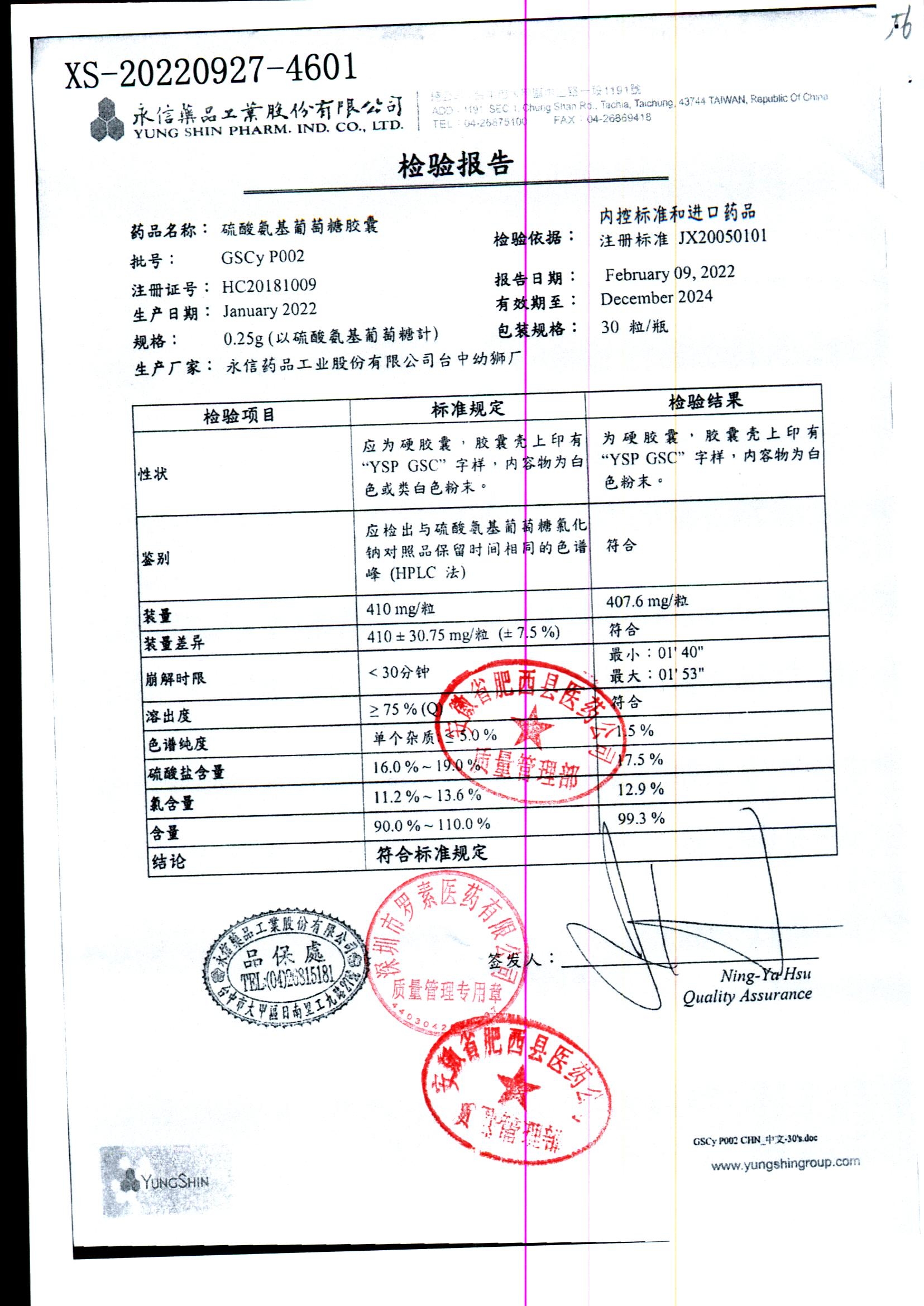 硫酸氨基葡萄糖胶囊 | 0.25g*30粒 | GSCYP005/6 | 查看详情 |