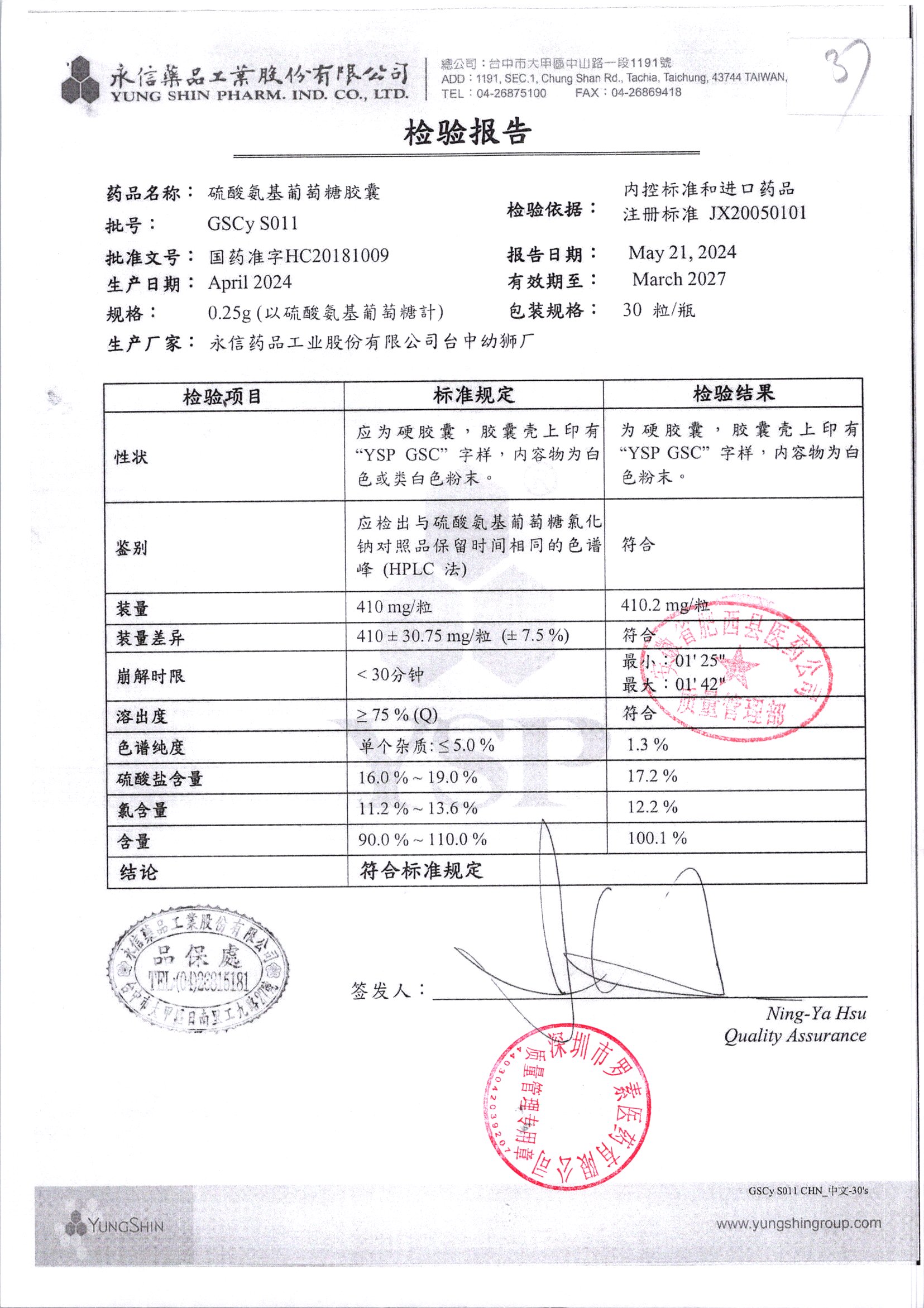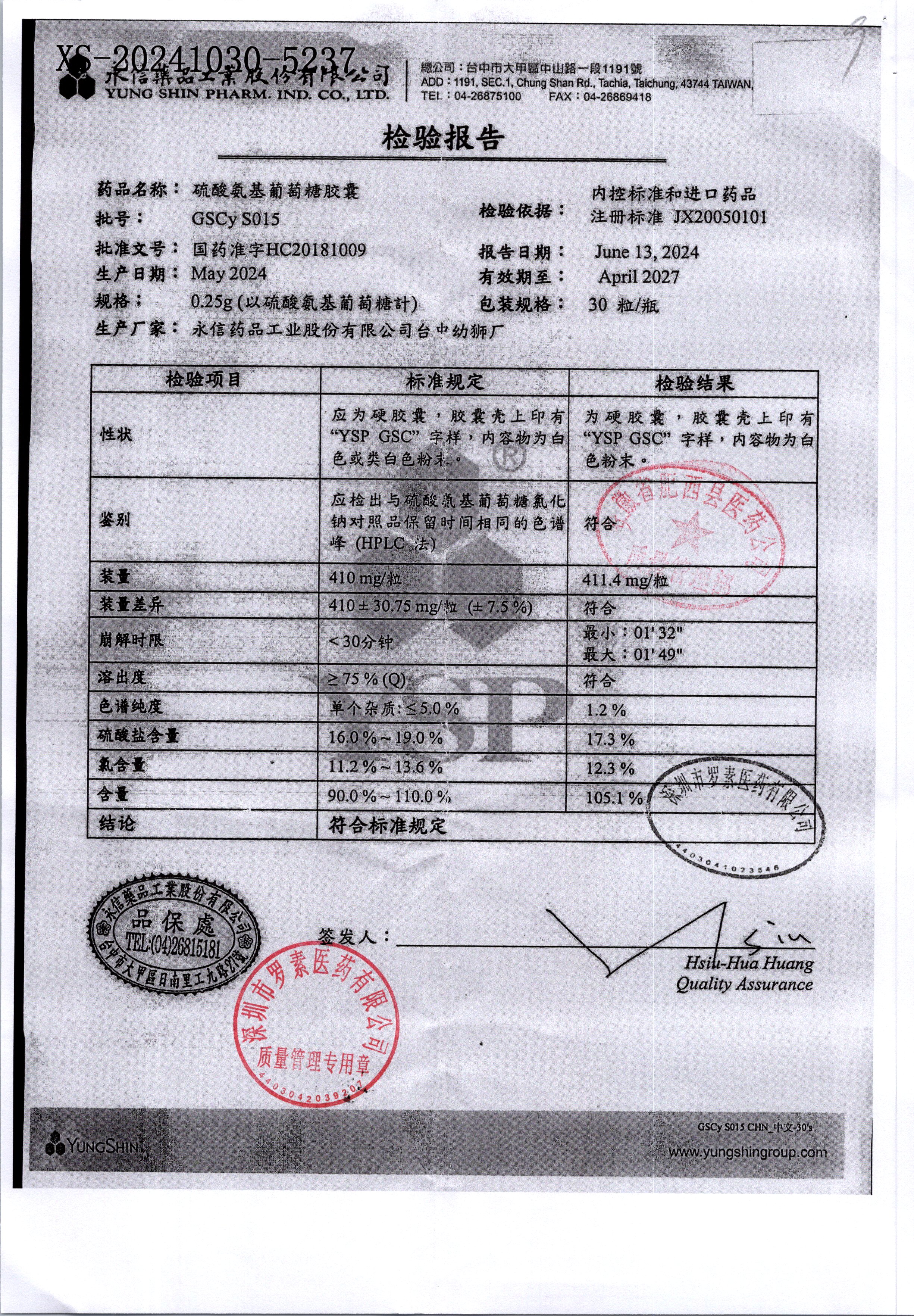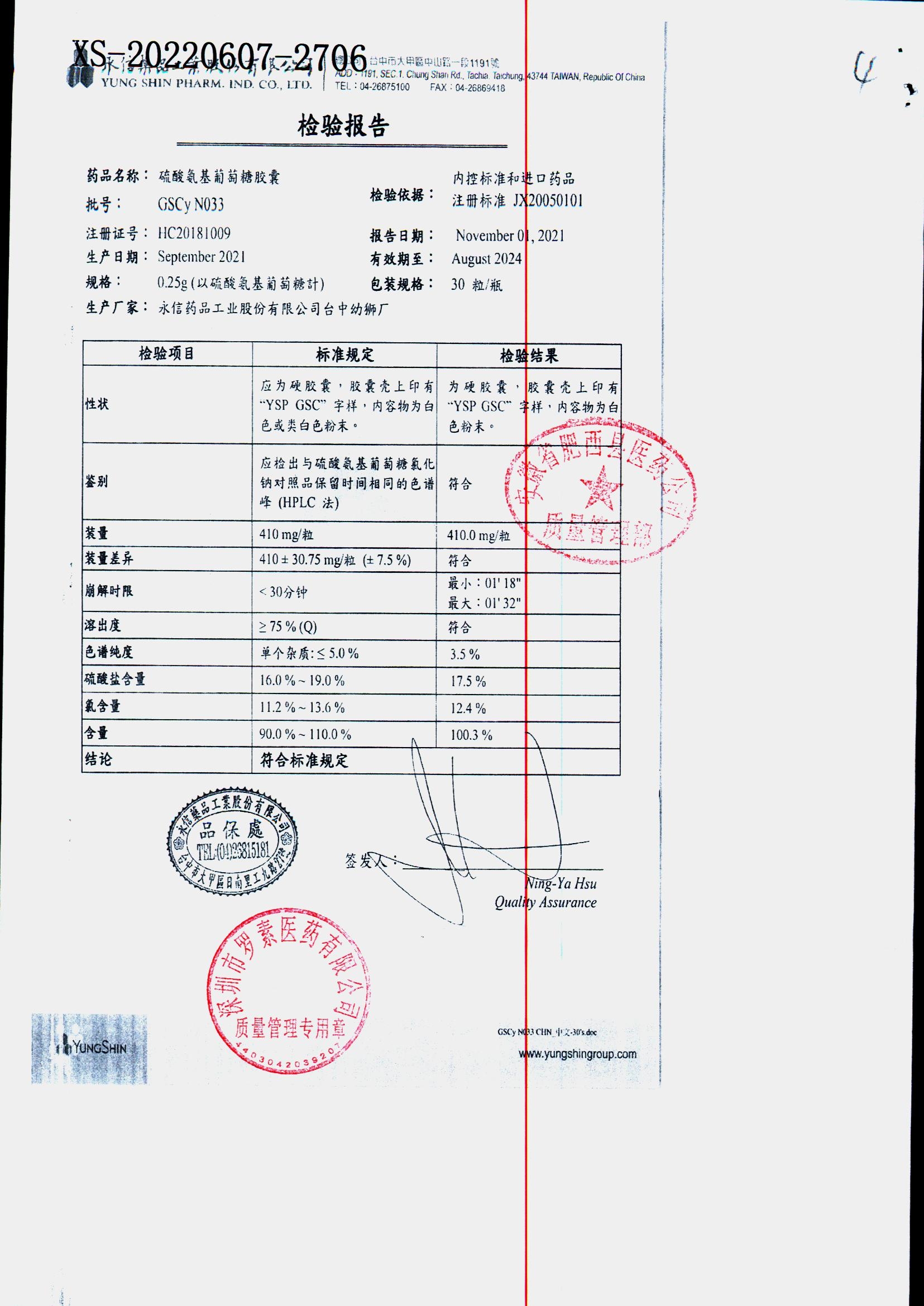 硫酸氨基葡萄糖胶囊 | 0.25g*30粒 | GSCYP004/1 | 查看详情 |