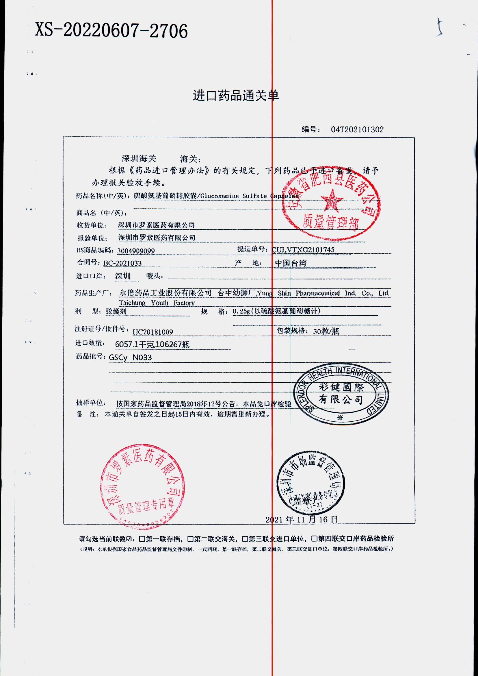 硫酸氨基葡萄糖胶囊 | 0.25g*30粒 | GSCYN033/1 | 查看详情 |