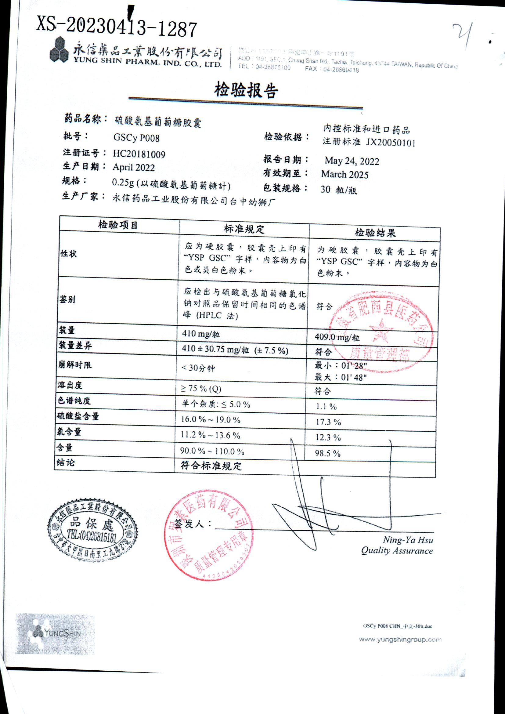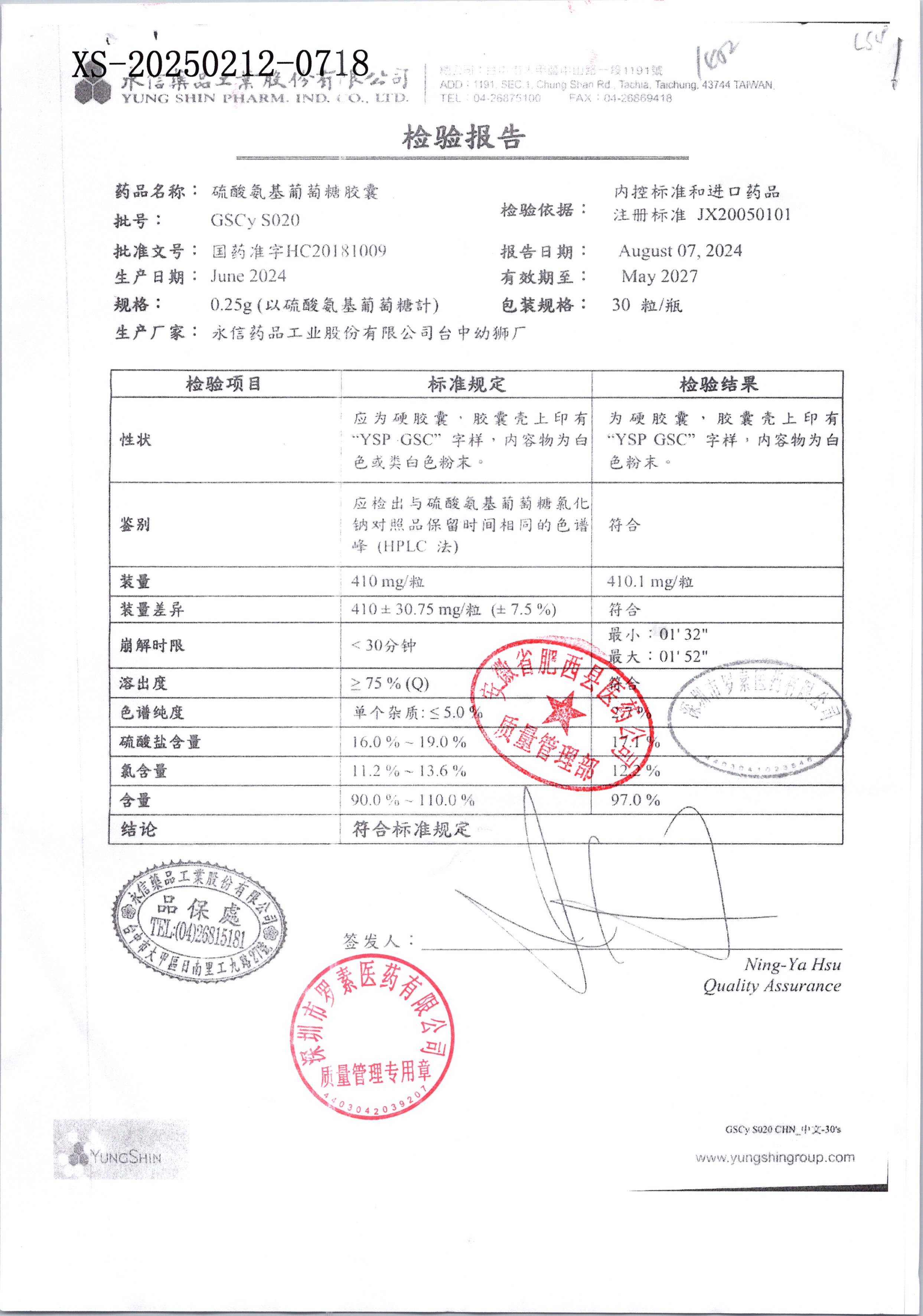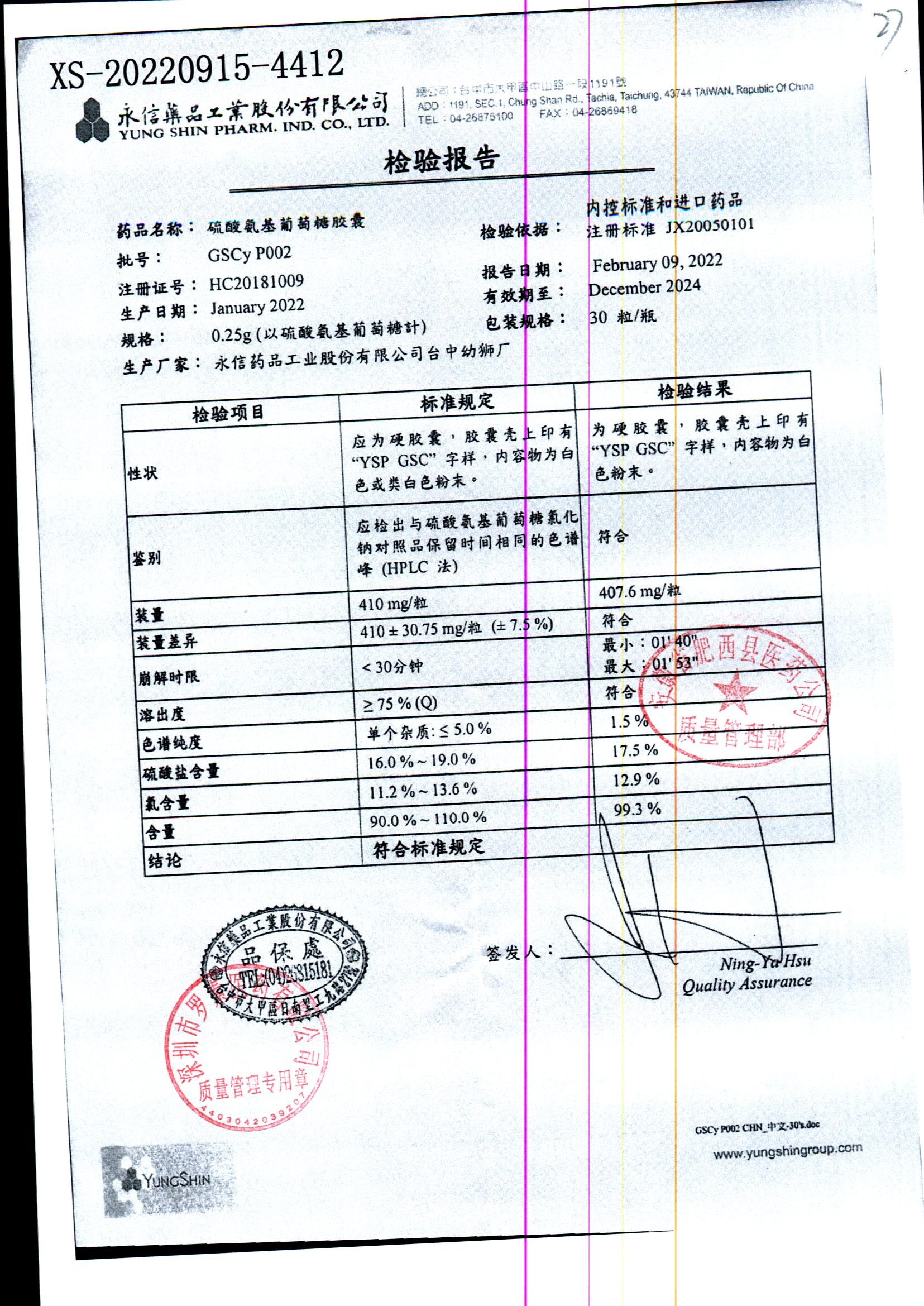 硫酸氨基葡萄糖胶囊 | 0.25g*30粒 | GSCYP002/1 | 查看详情 |
