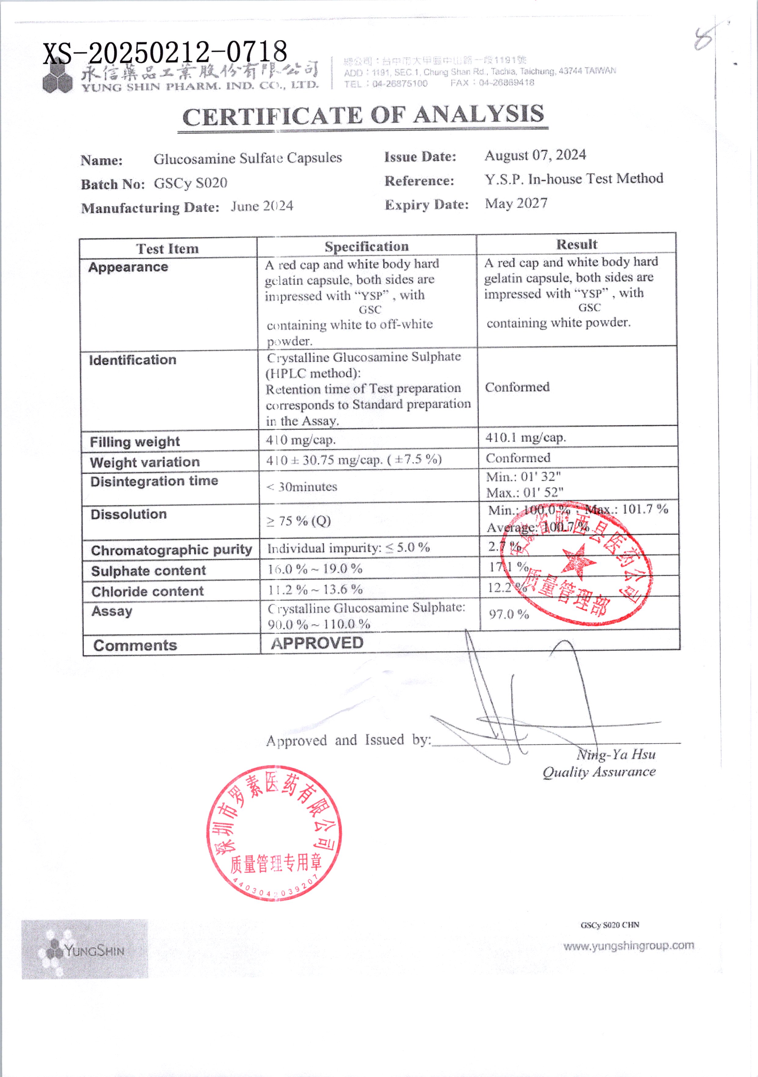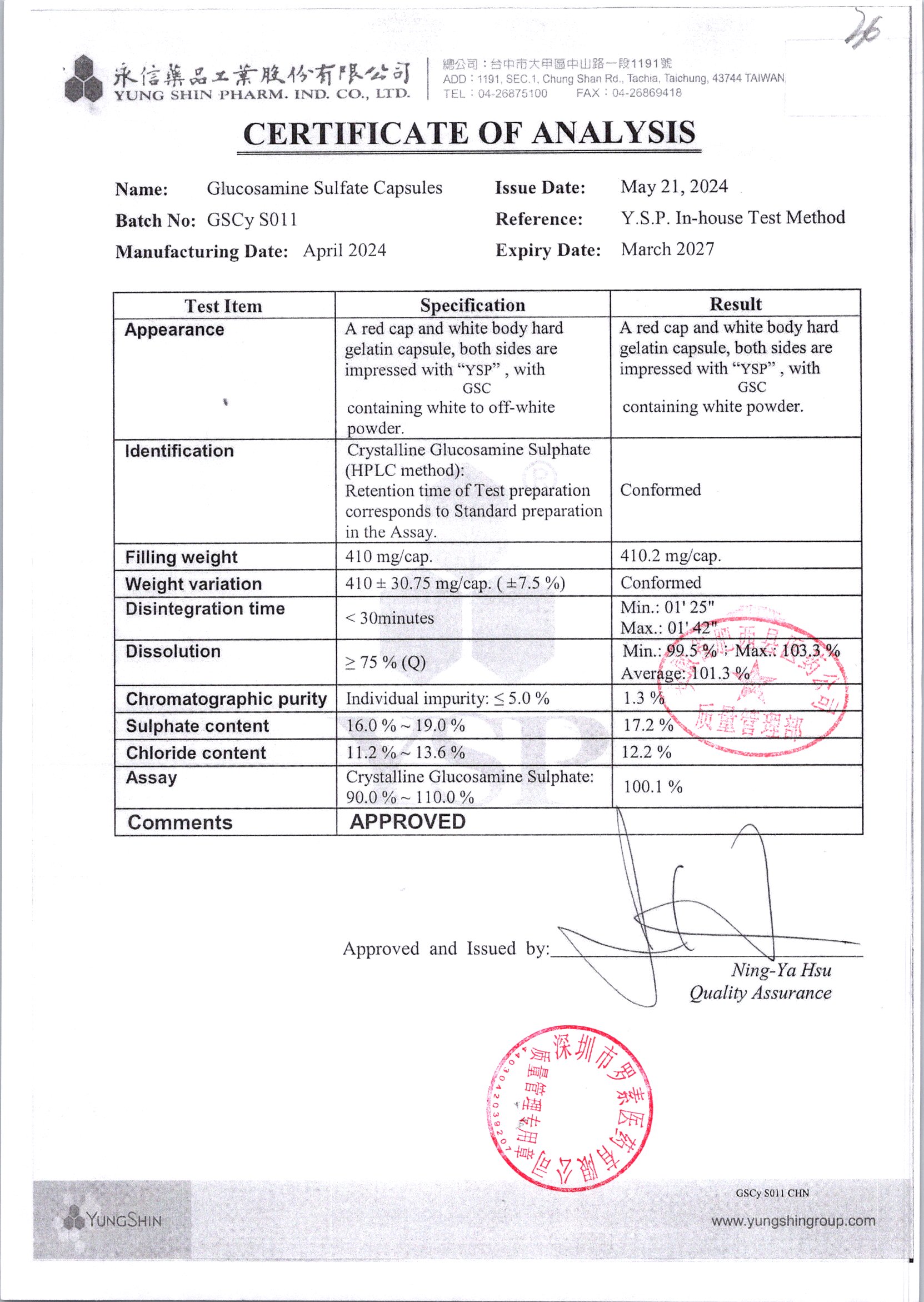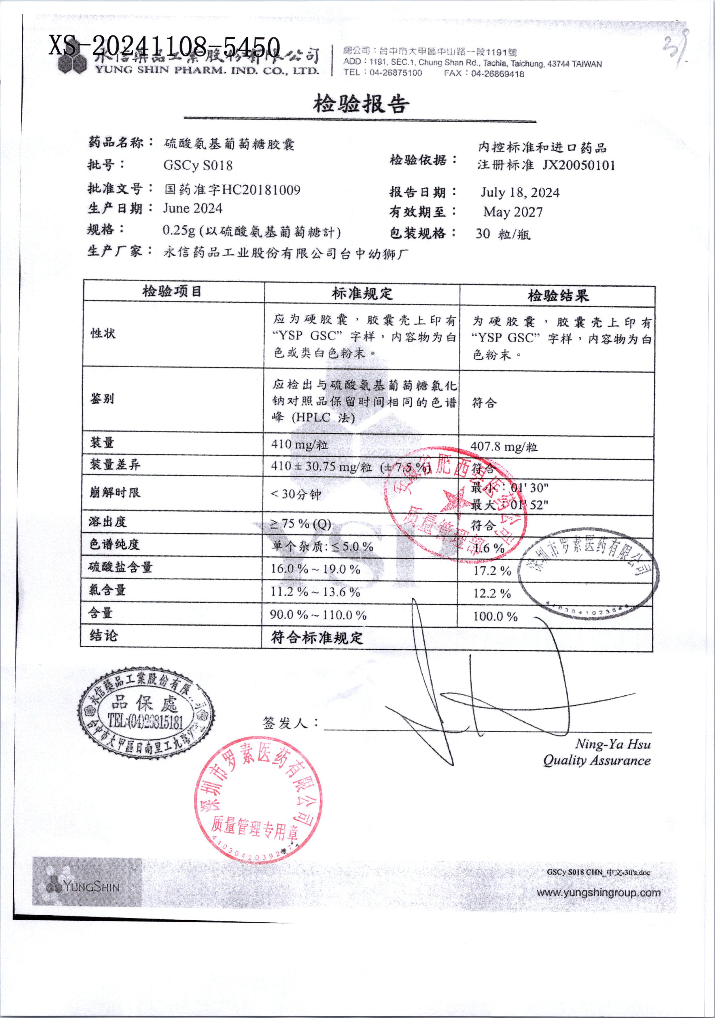 硫酸氨基葡萄糖胶囊 | 0.25g*30粒 | GSCYP002/1 | 查看详情 |