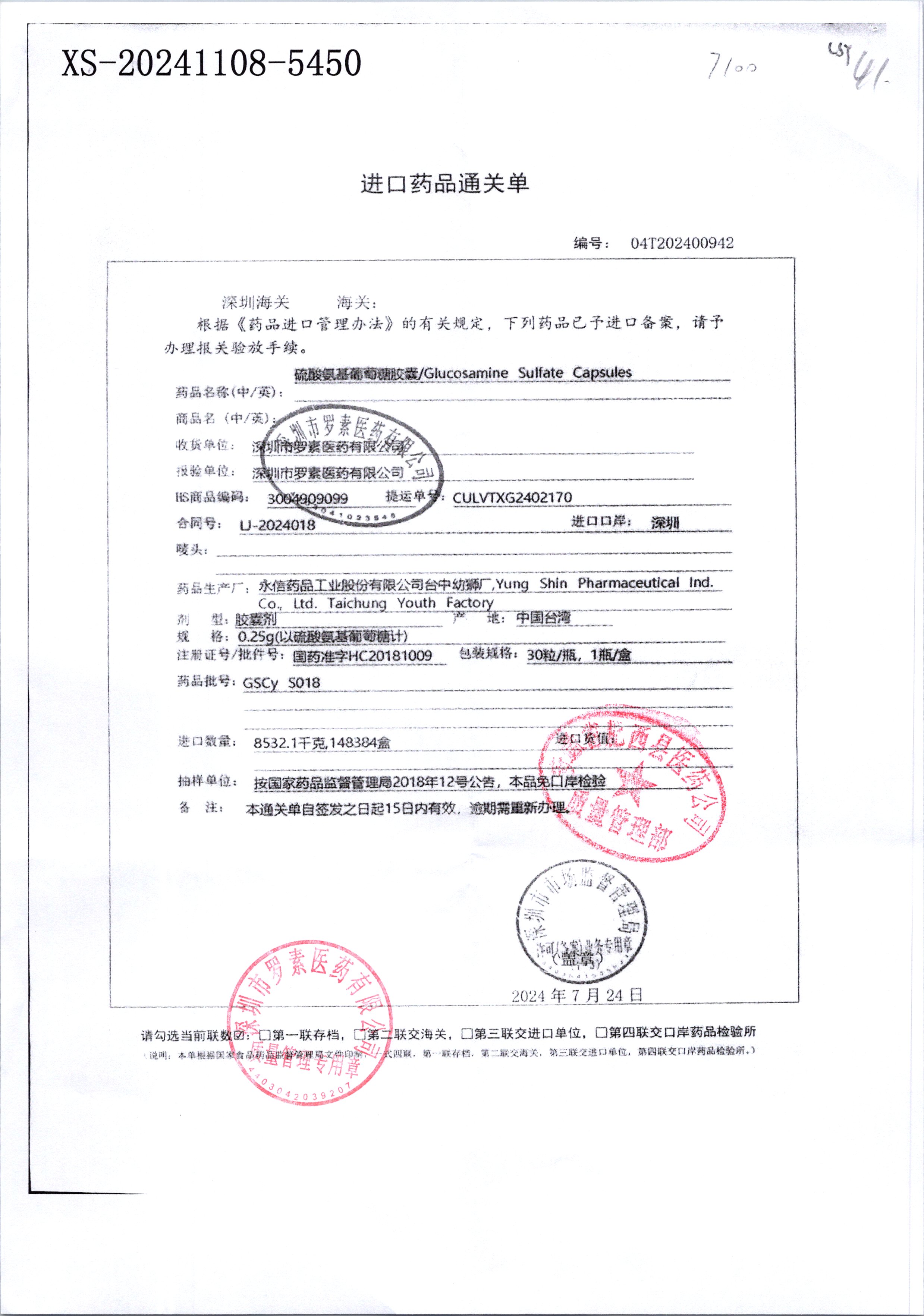 硫酸氨基葡萄糖胶囊 | 0.25g*30粒 | GSCYS011/7 | 查看详情 |