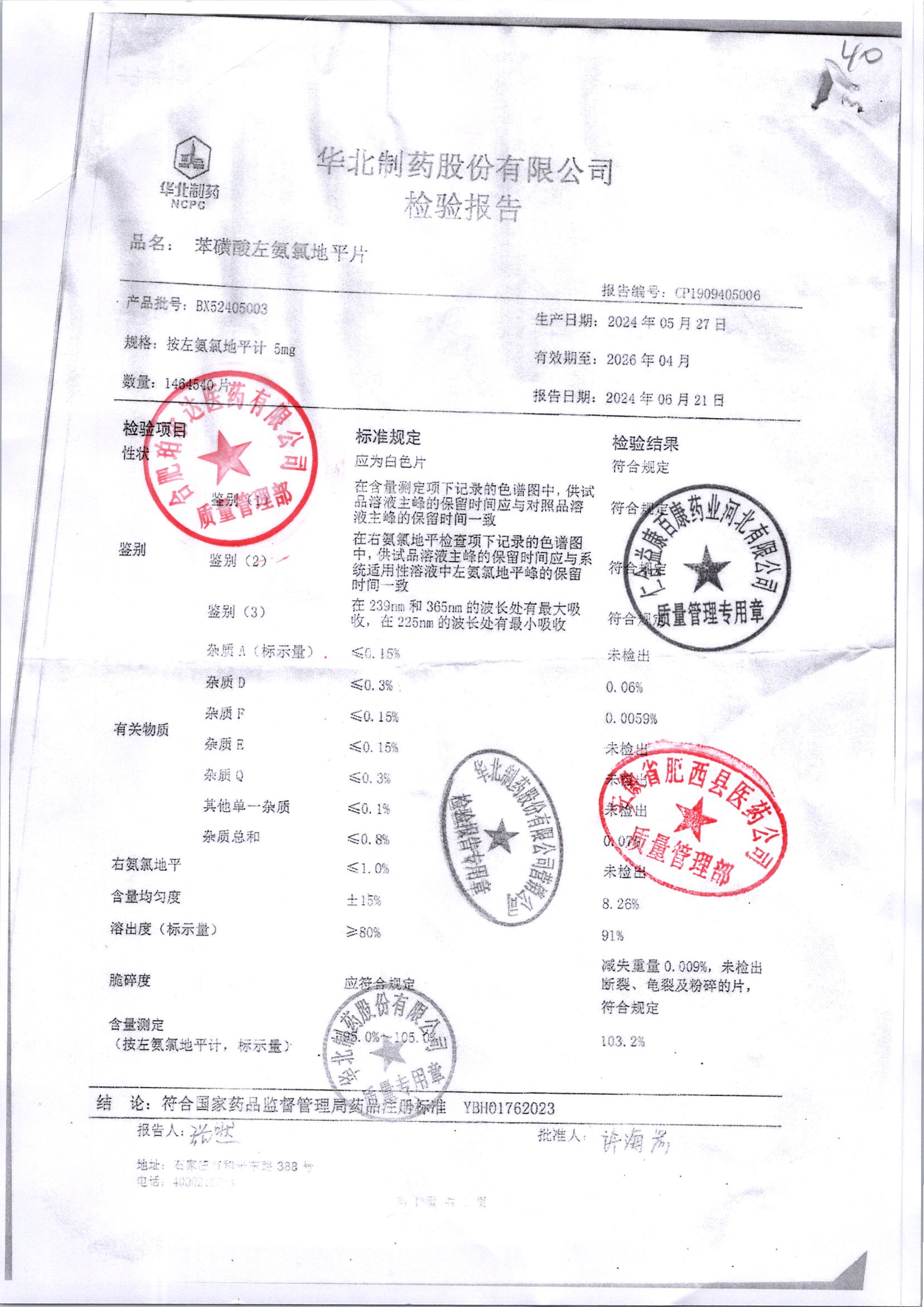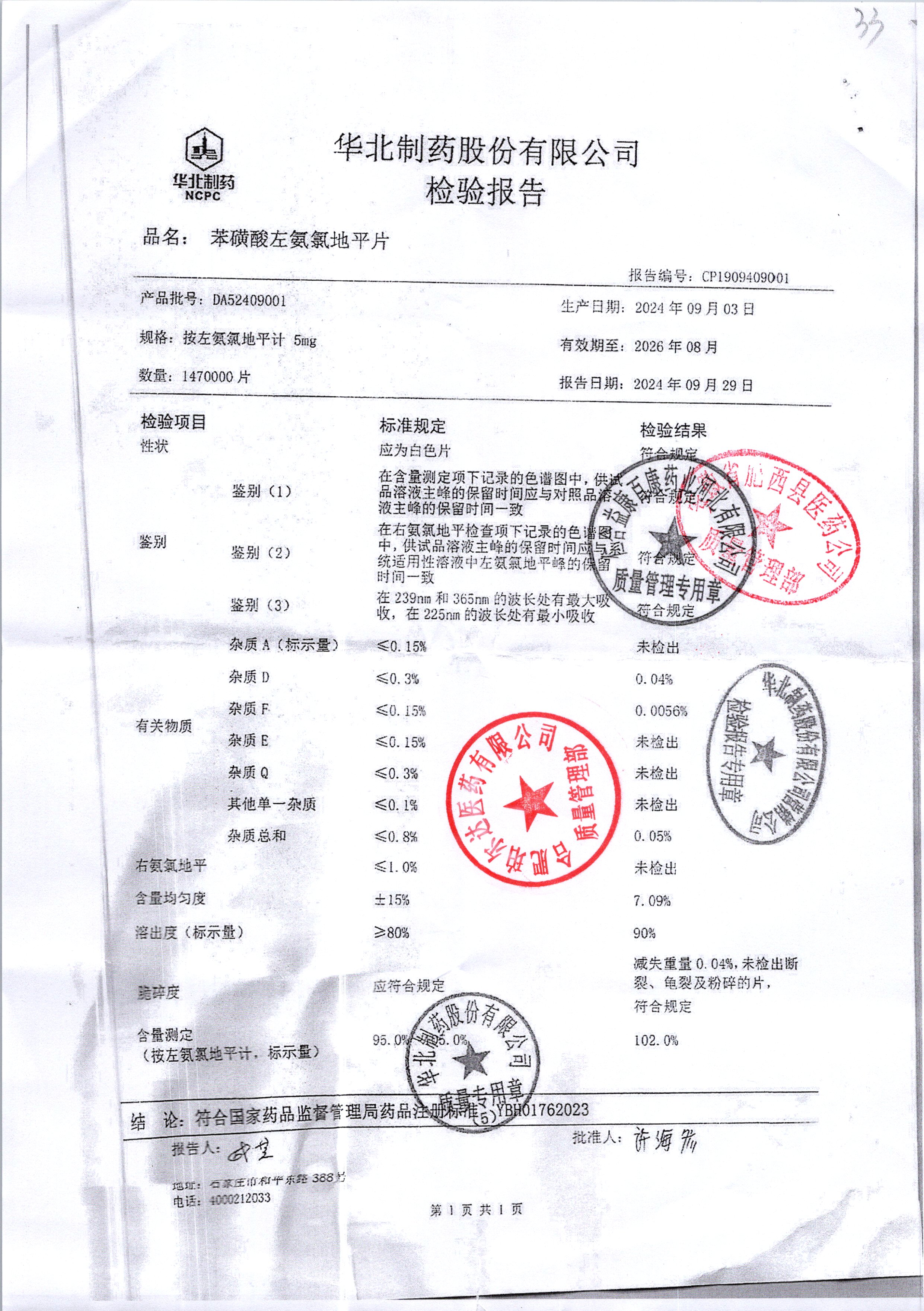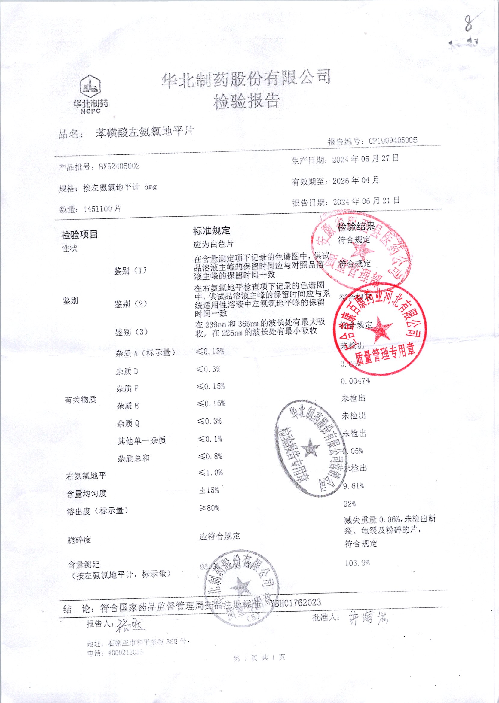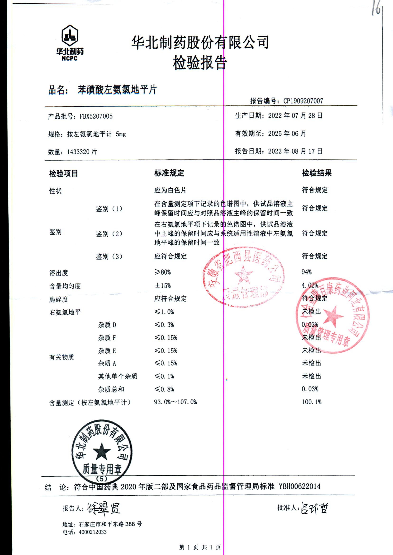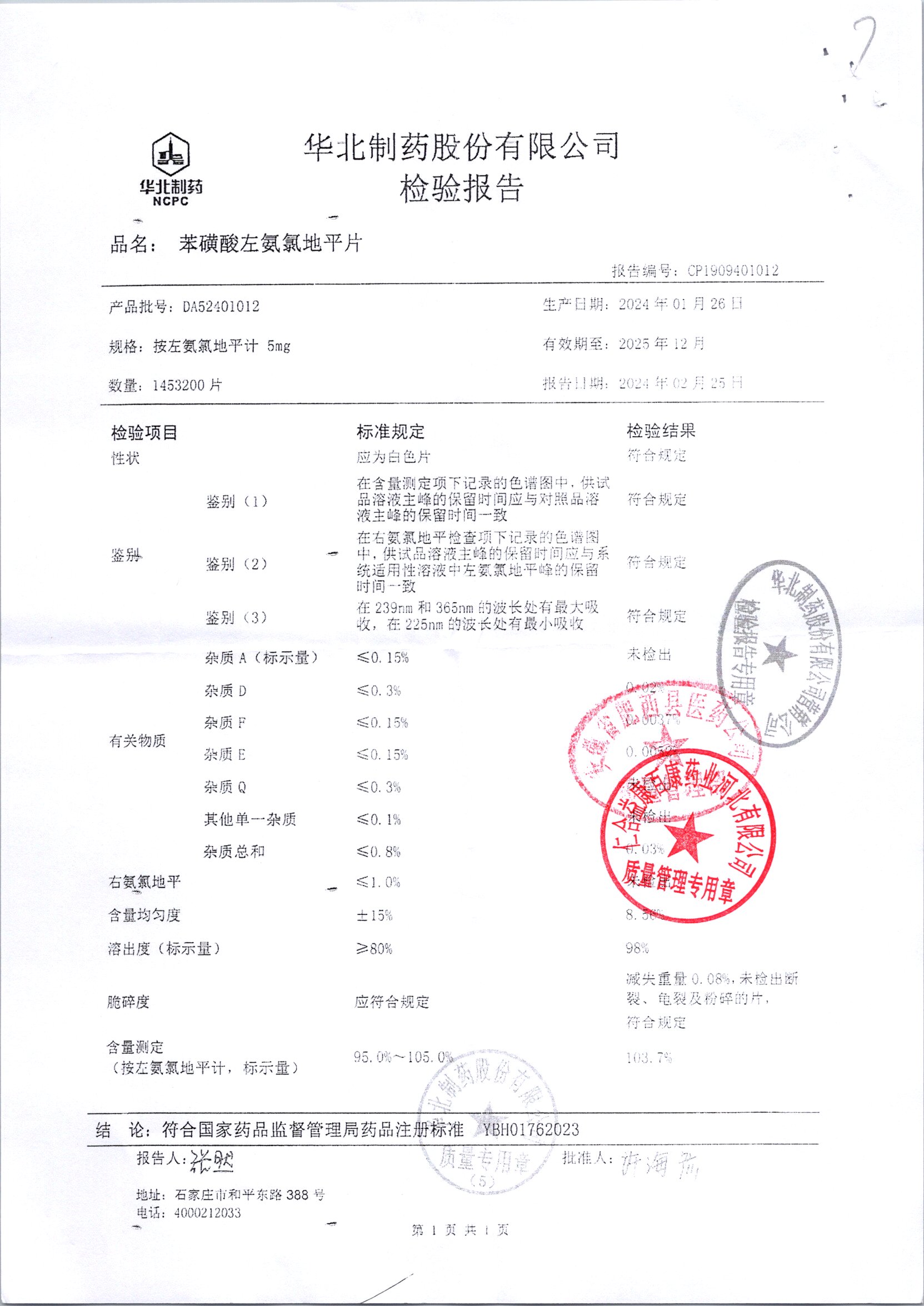 苯磺酸左氨氯地平片 | 5mg | BX52405003 | 查看详情 |