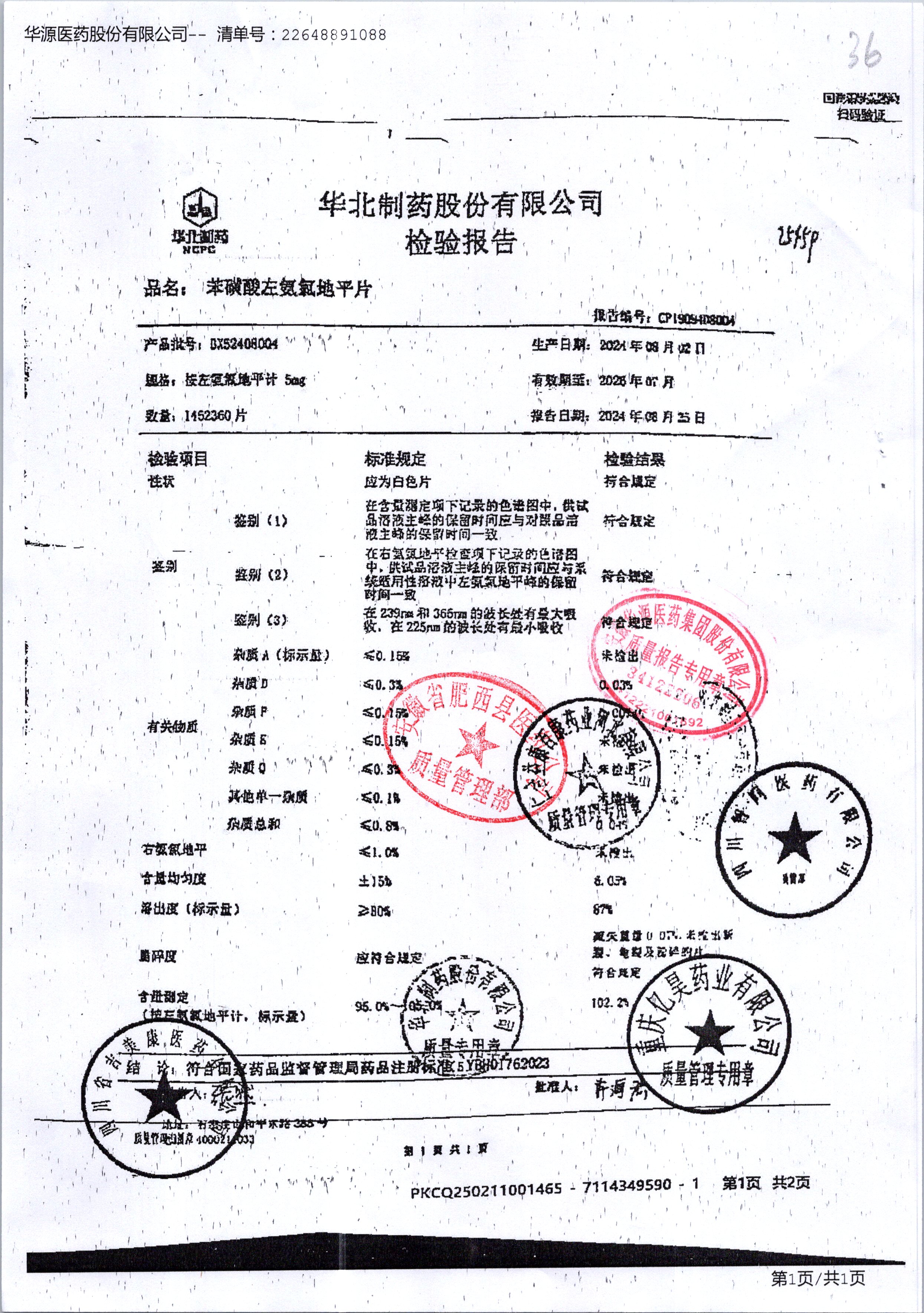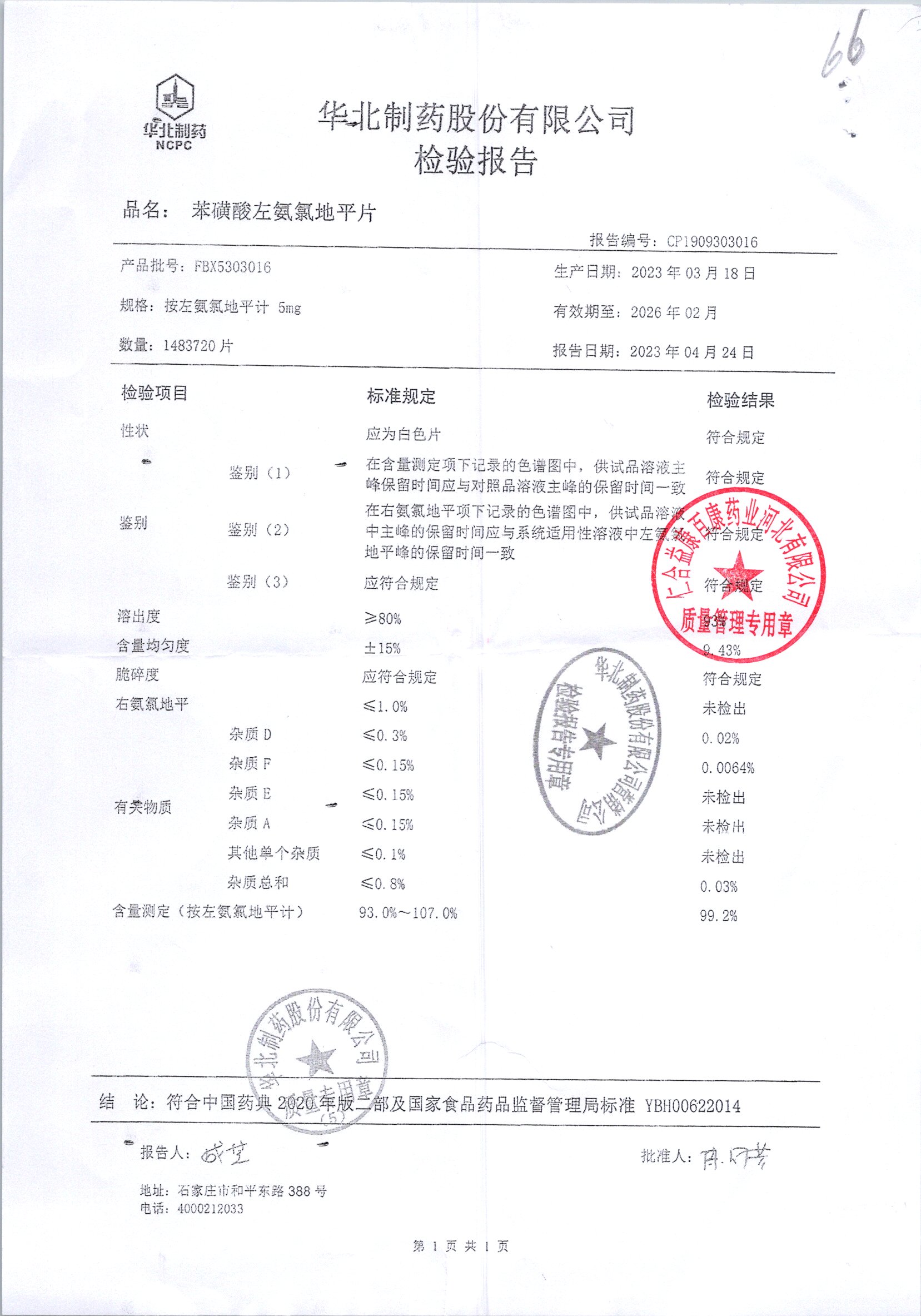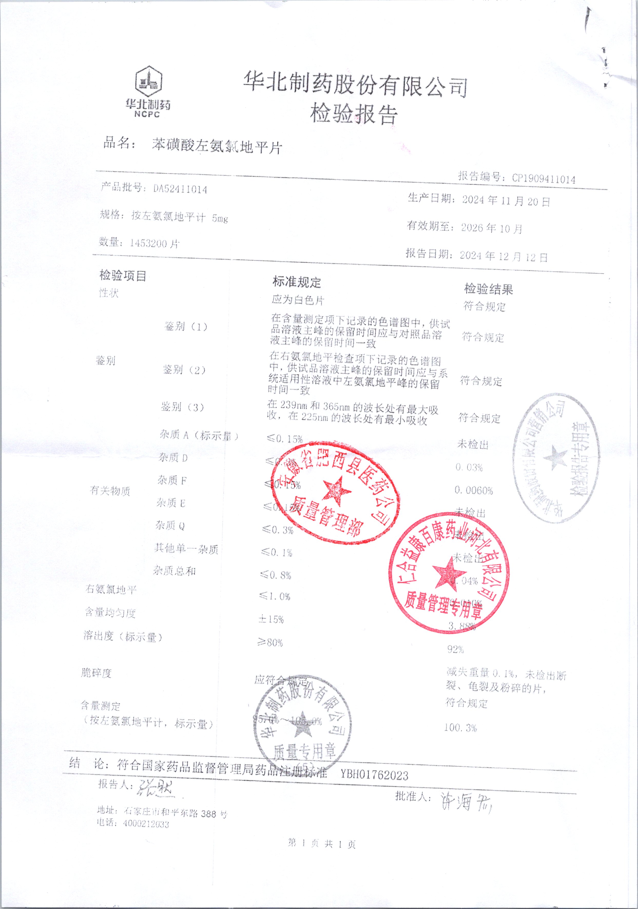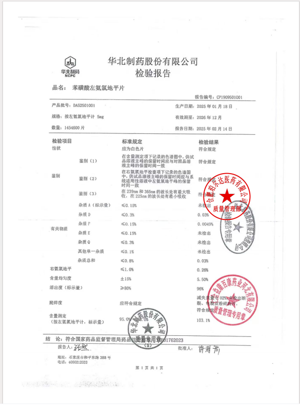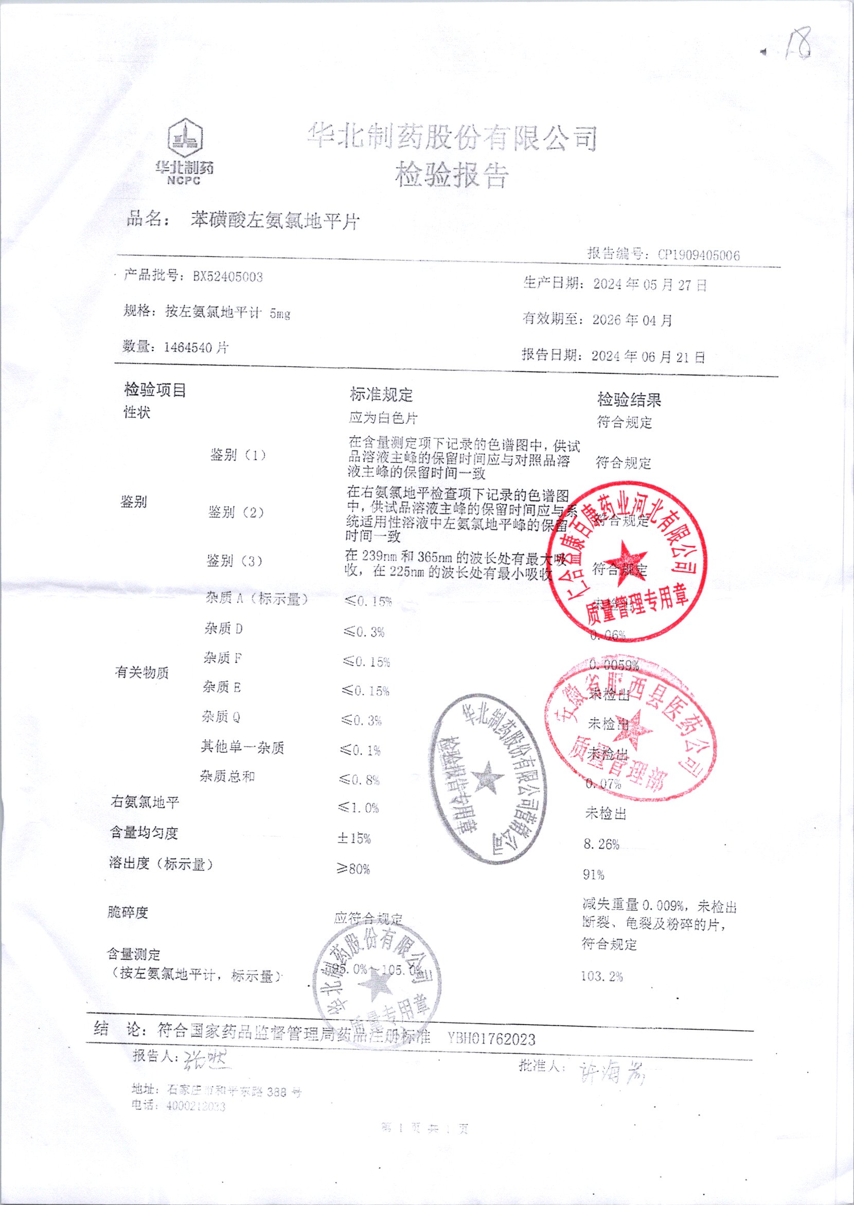 苯磺酸左氨氯地平片 | 5mg | BX52405003 | 查看详情 |