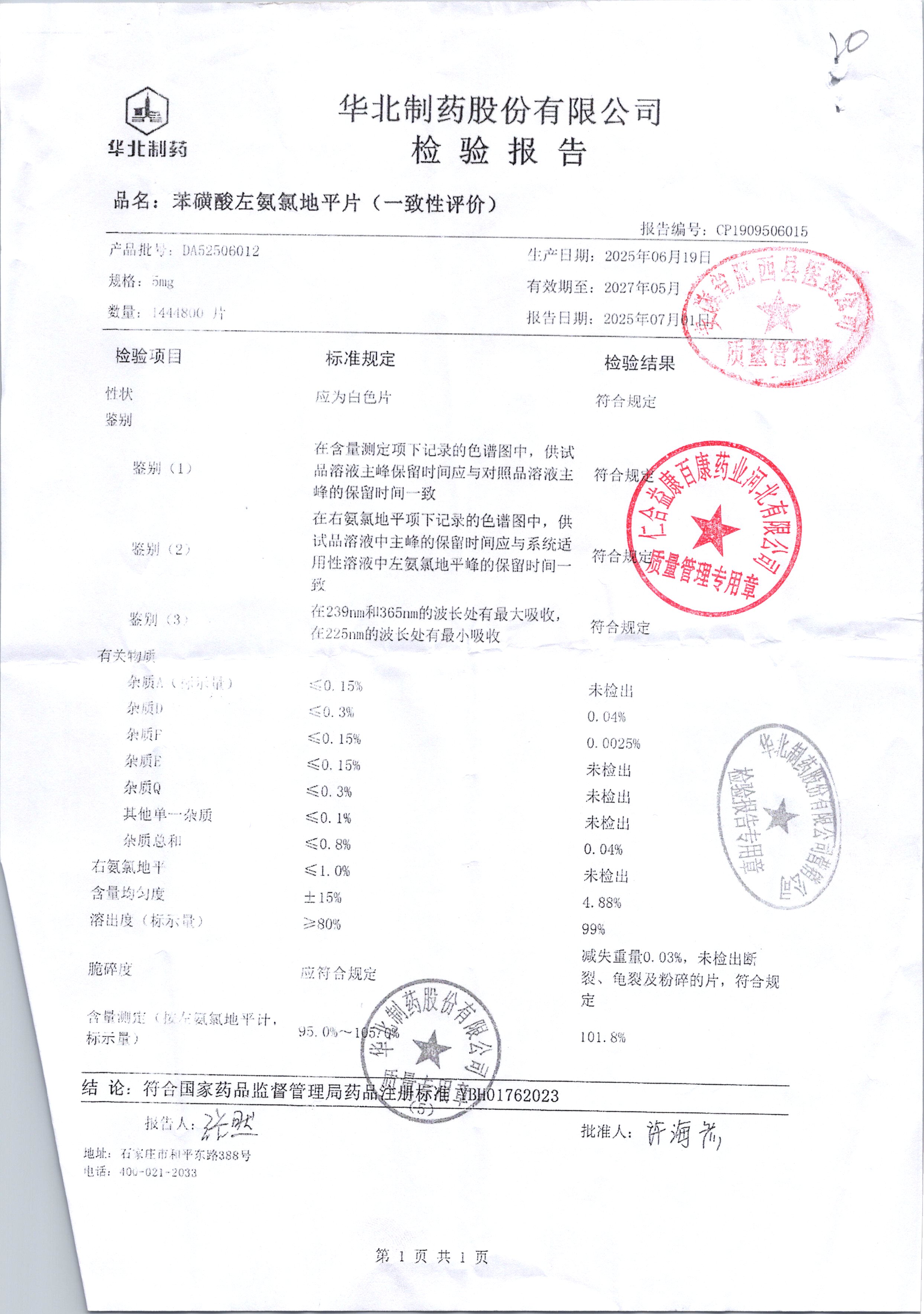 | 苯磺酸左氨氯地平片 | 5mg | DA52501001 | 查看详情 |