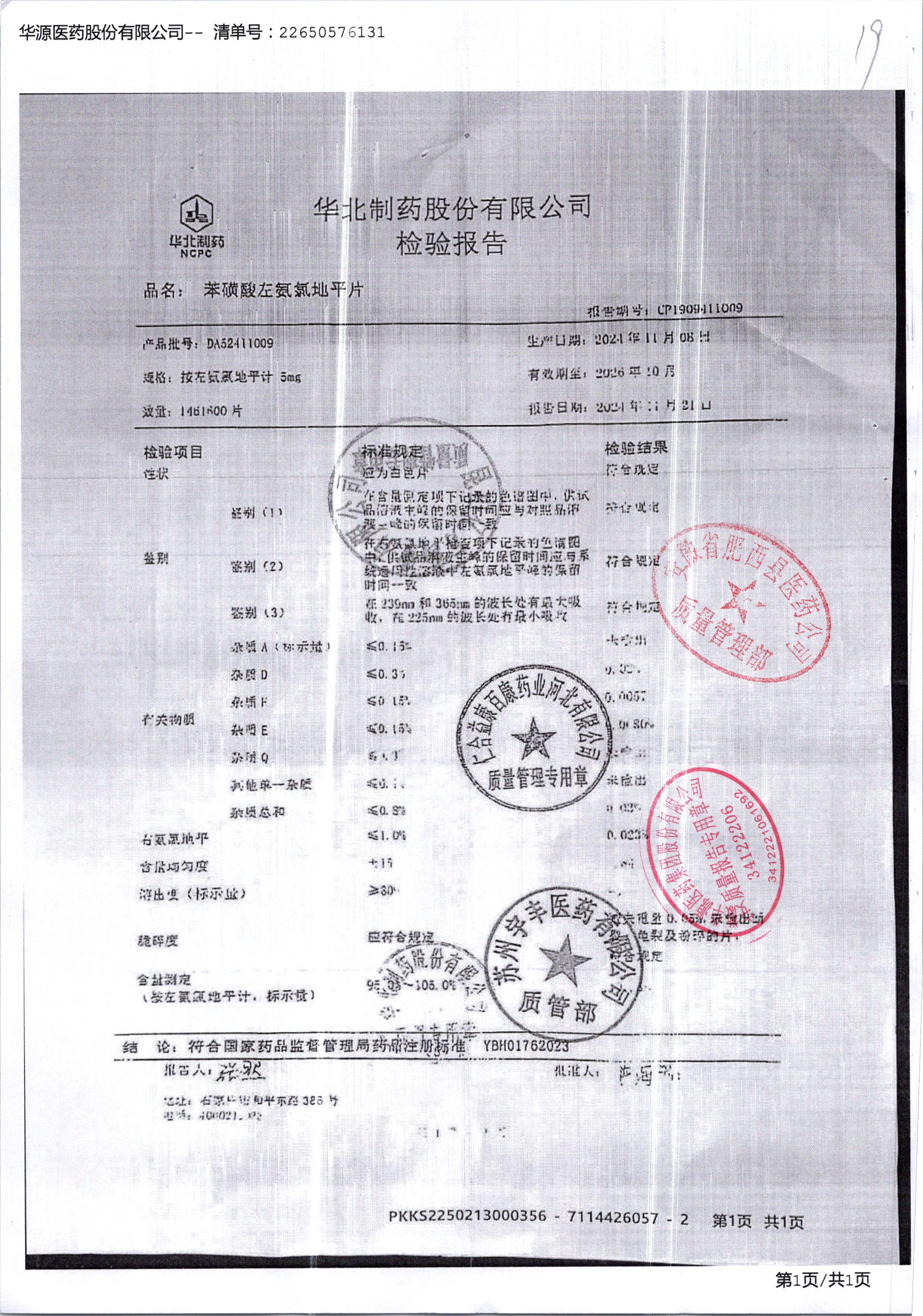 苯磺酸左氨氯地平片 | 5mg | DA52411014 | 查看详情 |