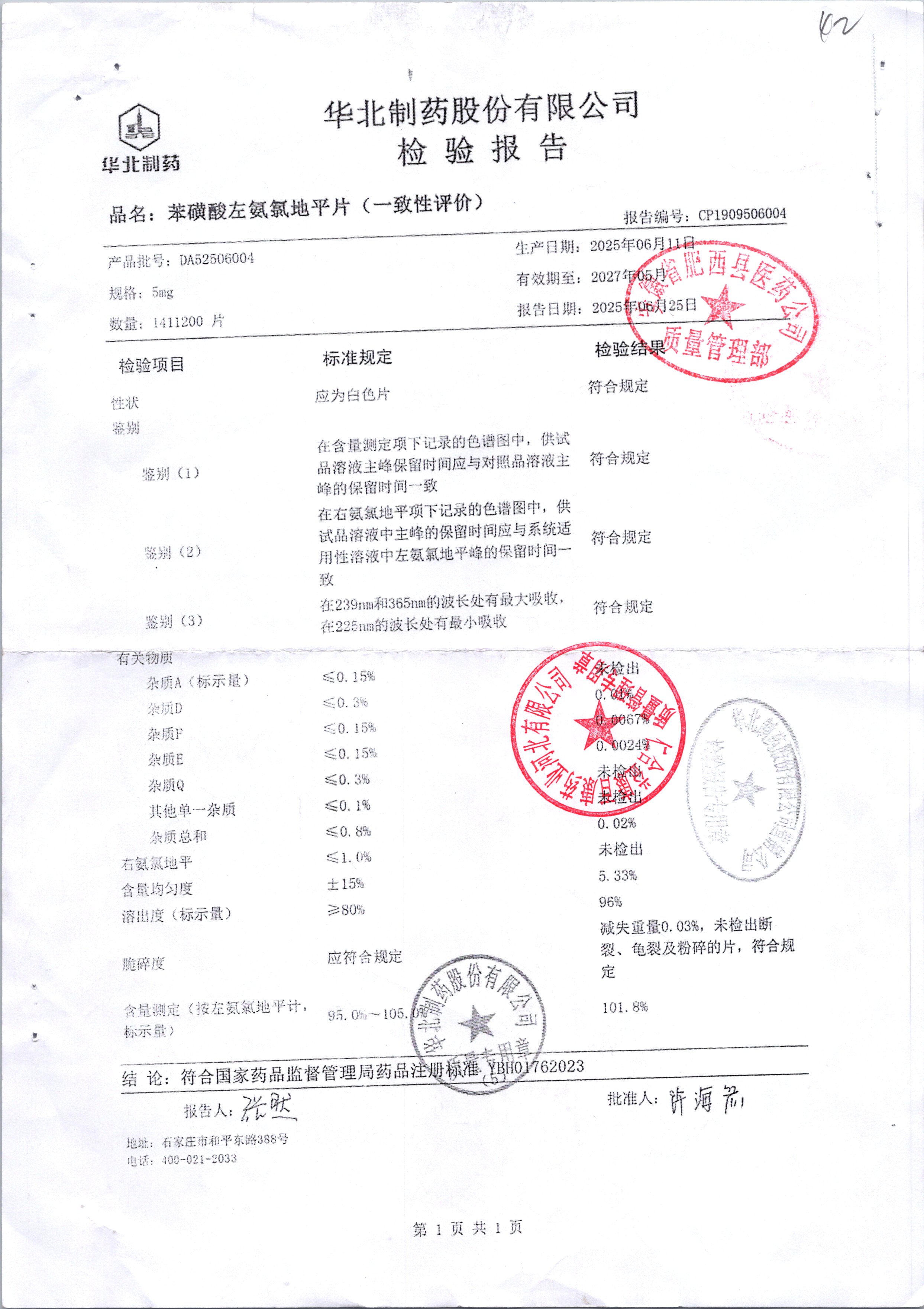 苯磺酸左氨氯地平片 | 5mg | DA52405002 | 查看详情 |