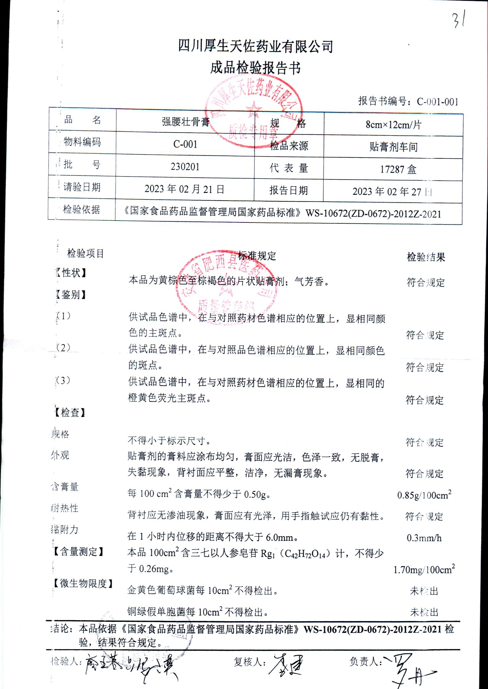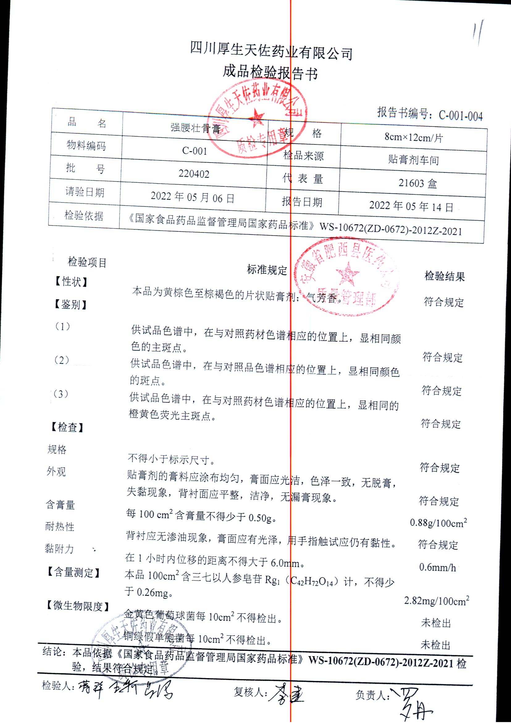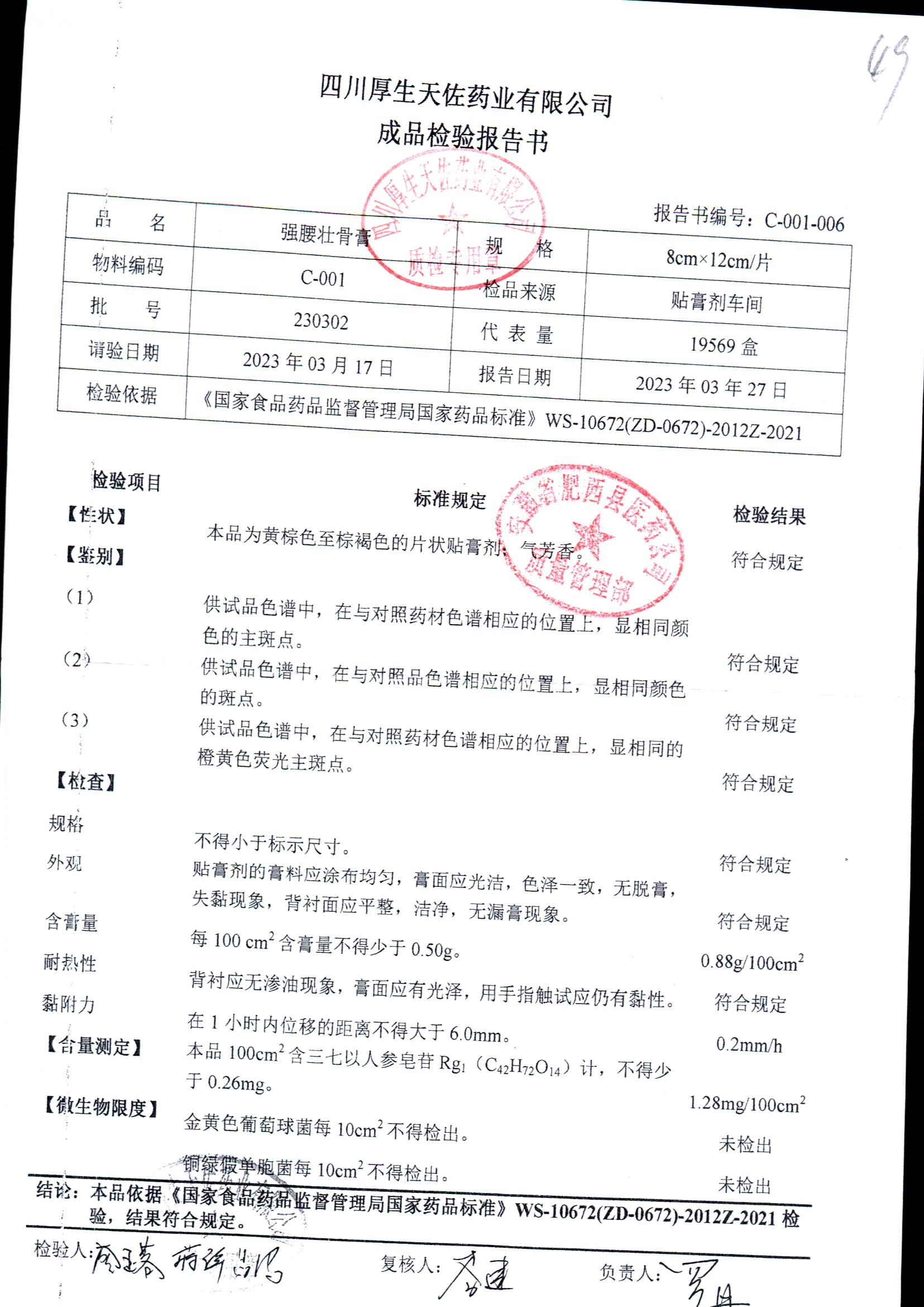强腰壮骨膏 | 8cm*12cm | 221001 | 查看详情 |