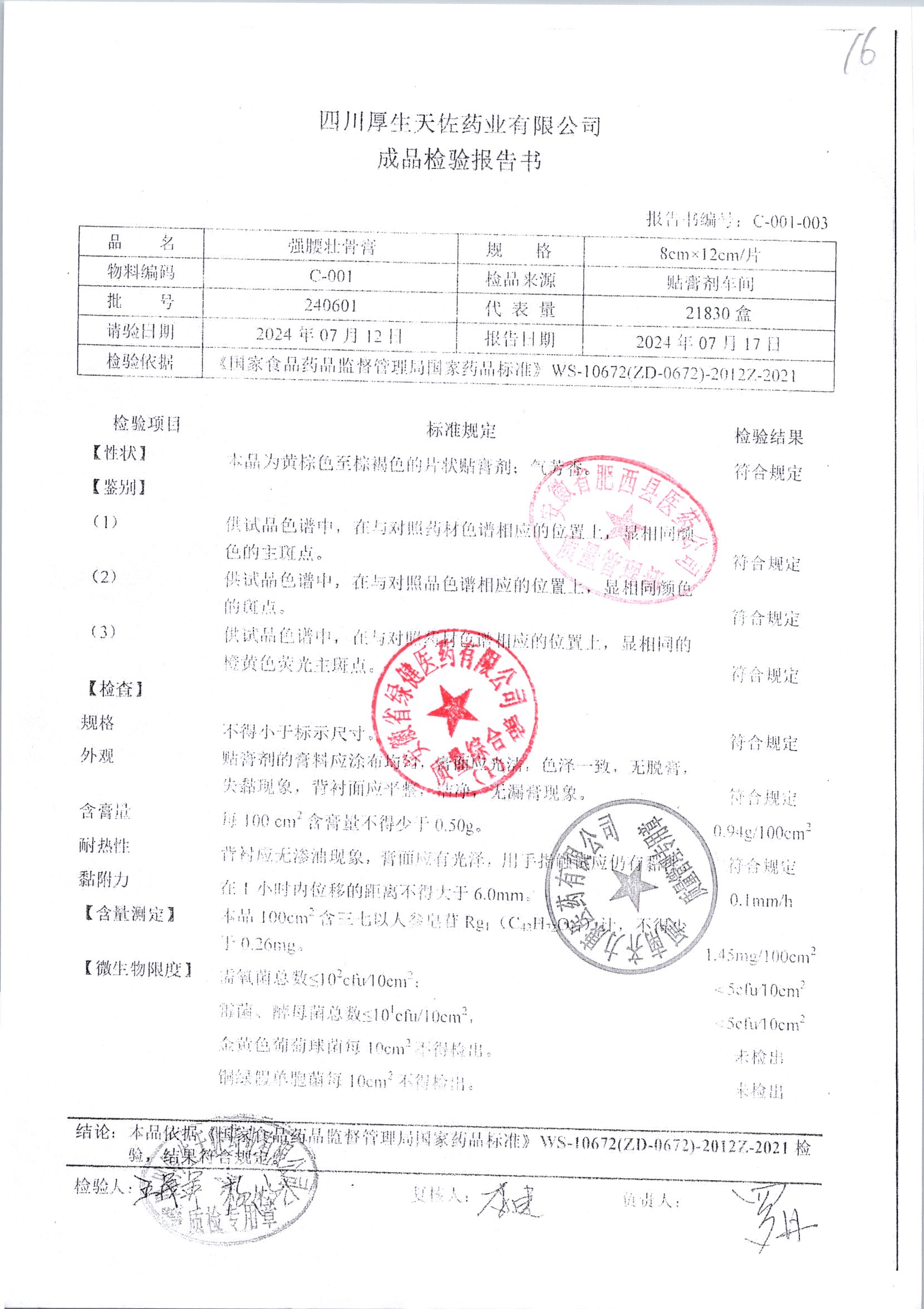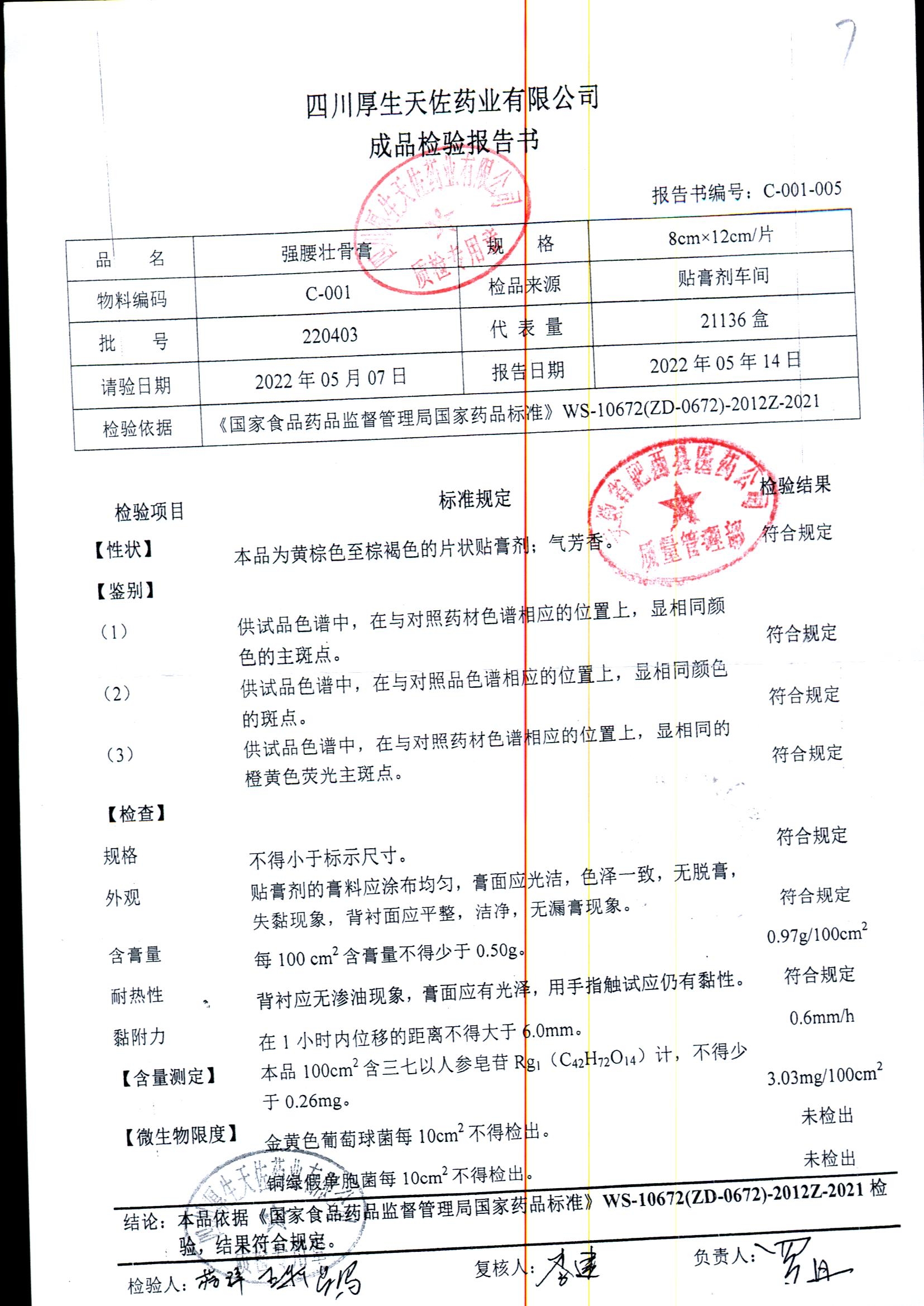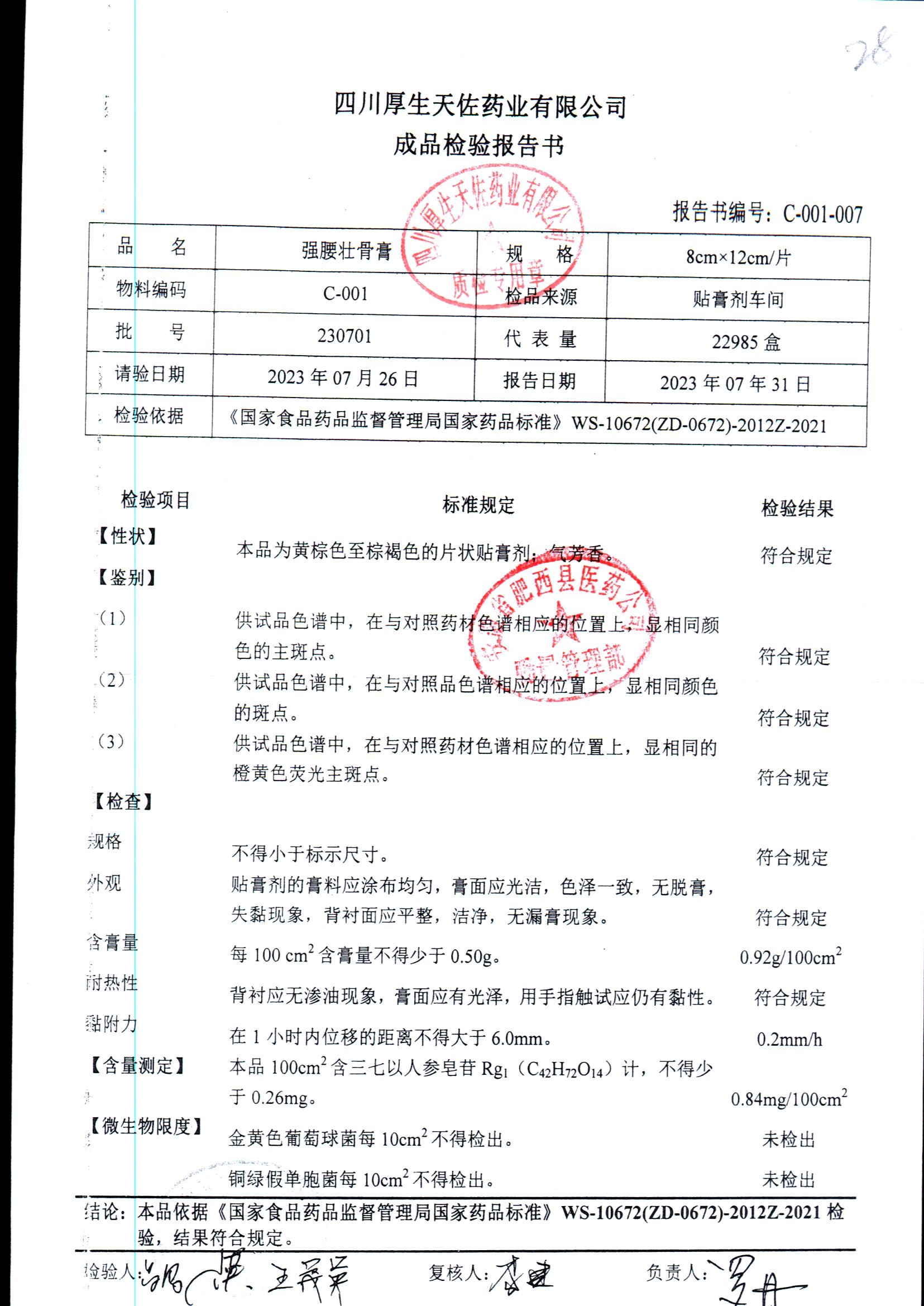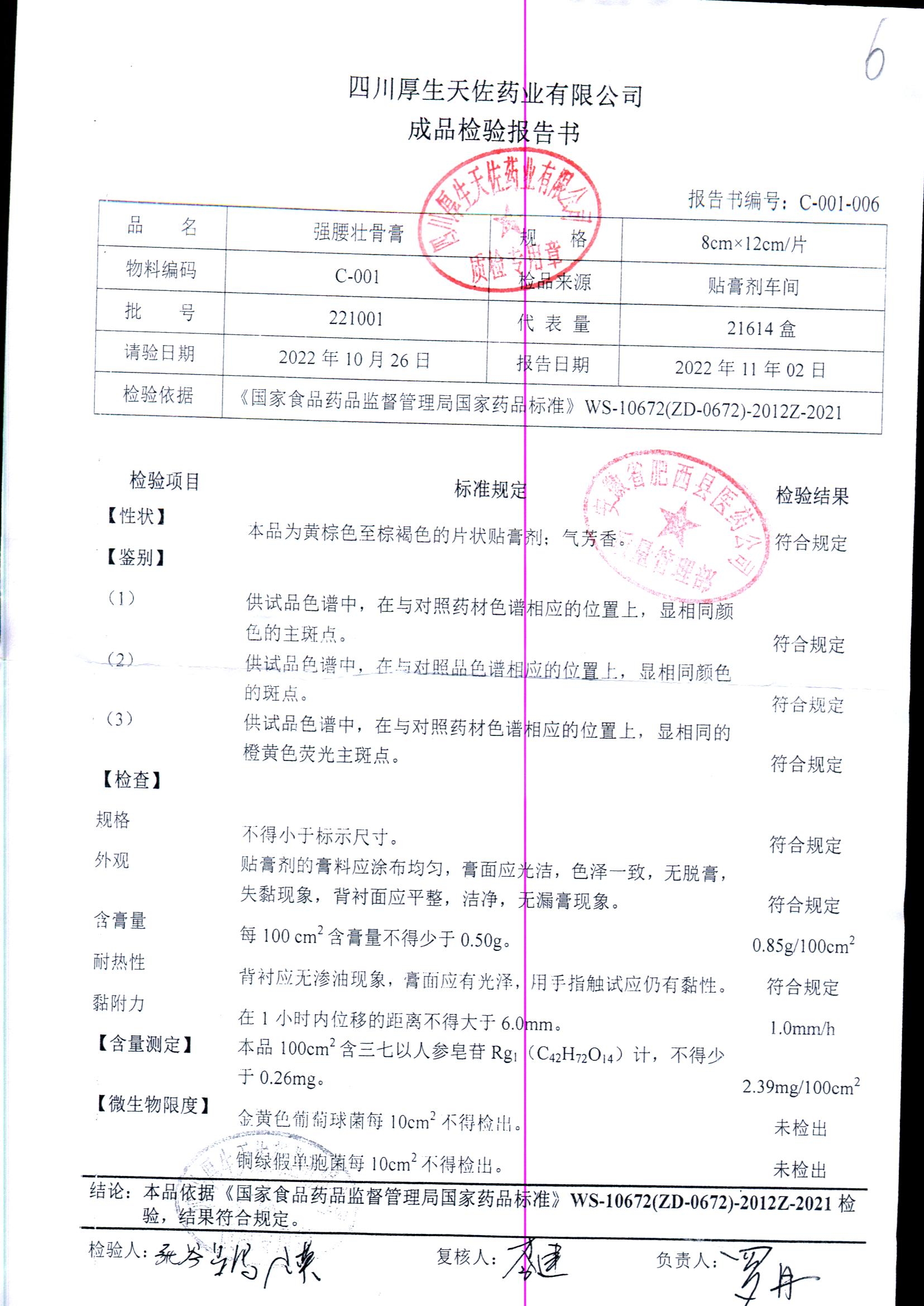 强腰壮骨膏 | 8cm*12cm | 221001 | 查看详情 |