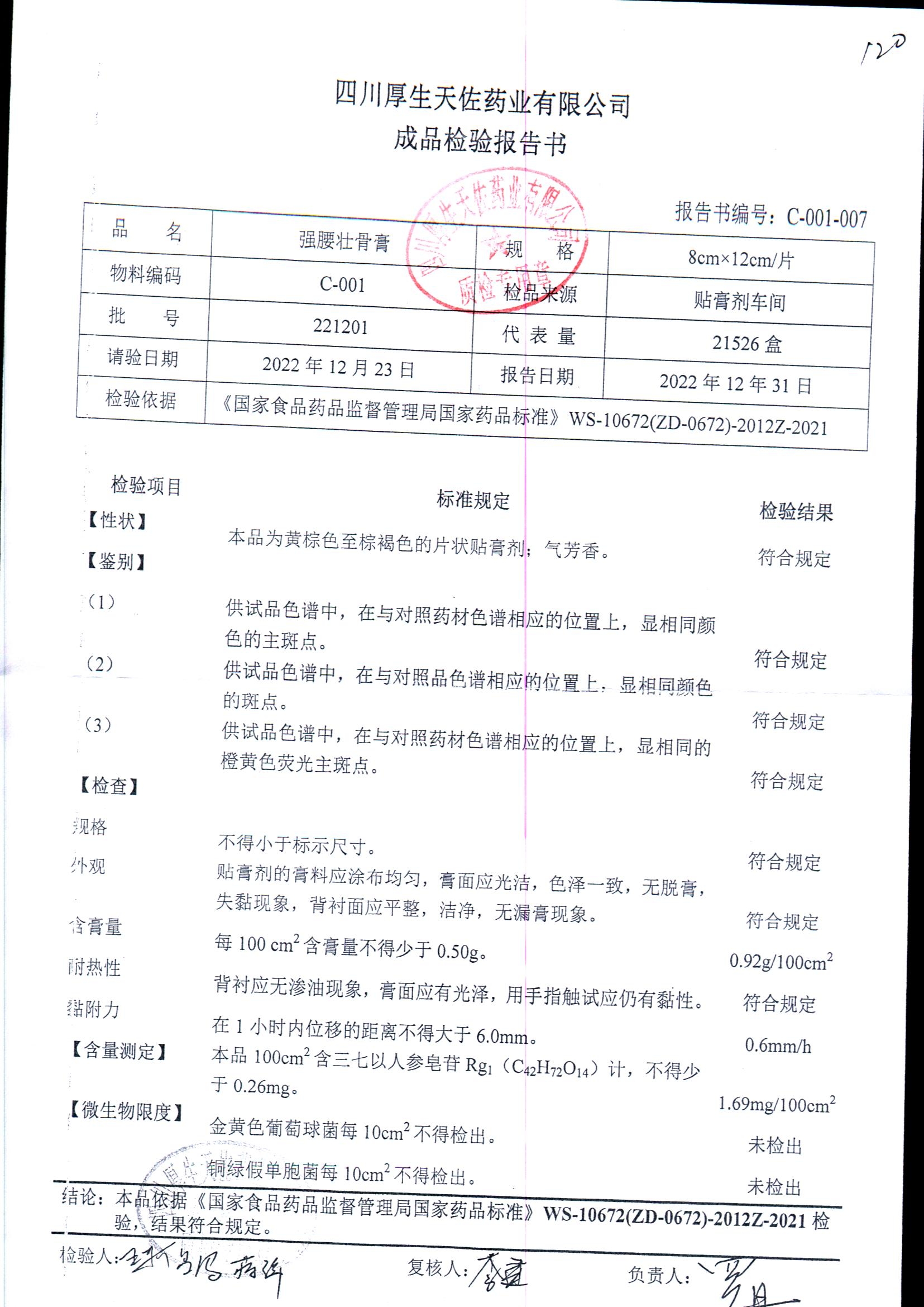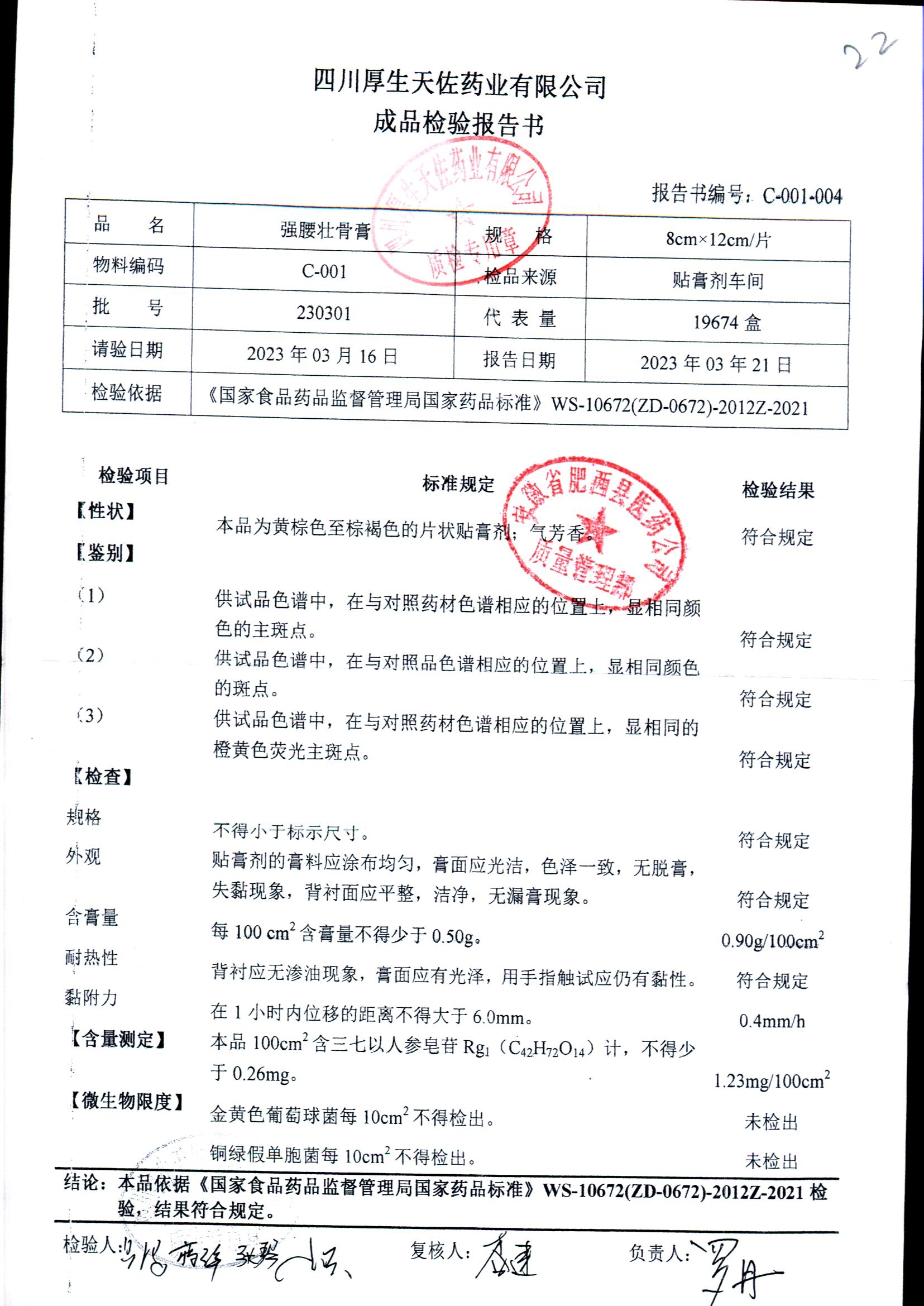 强腰壮骨膏 | 8cm*12cm | 221201 | 查看详情 |