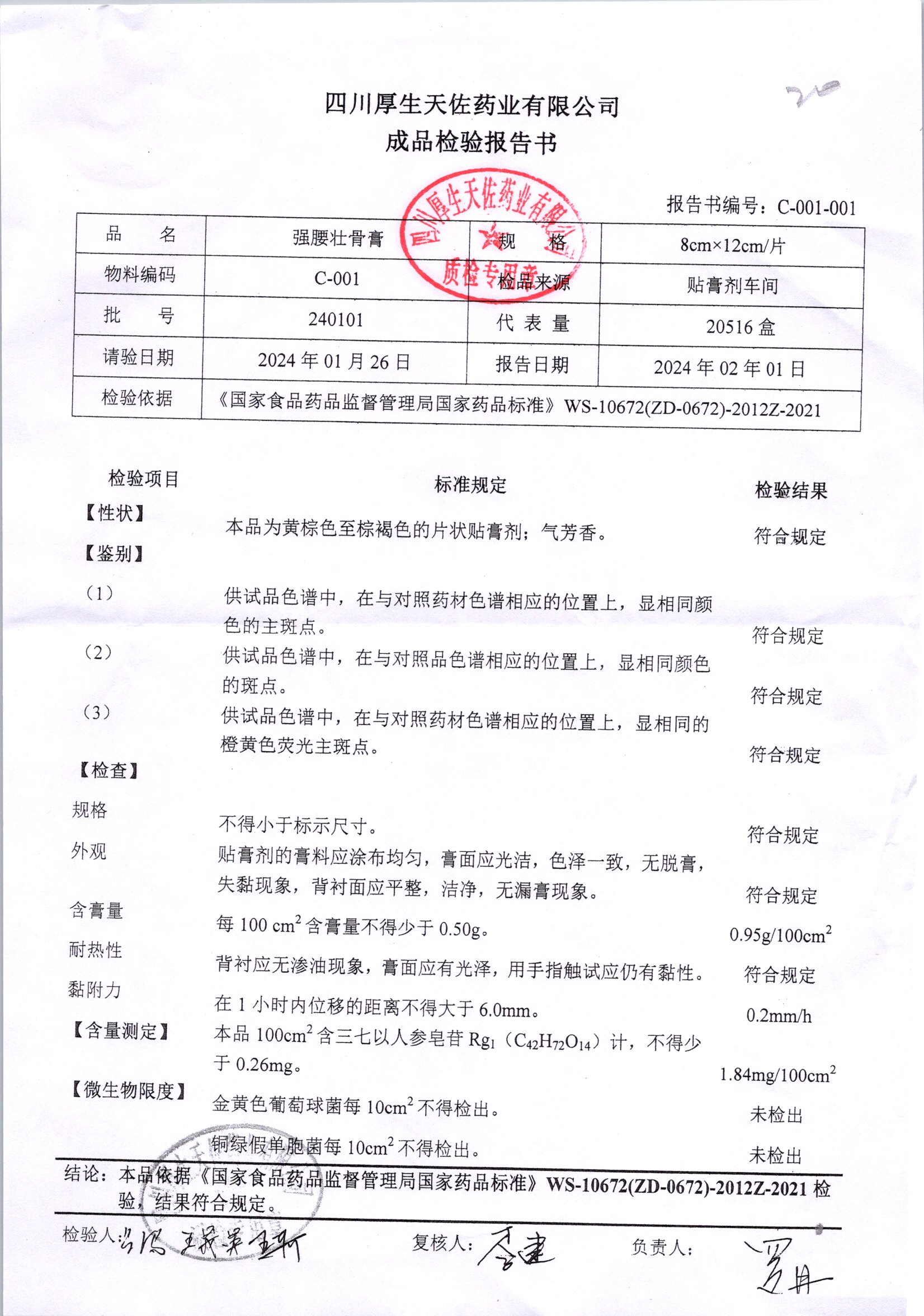 名称 | 规格 | 批号 | 药检报告 |