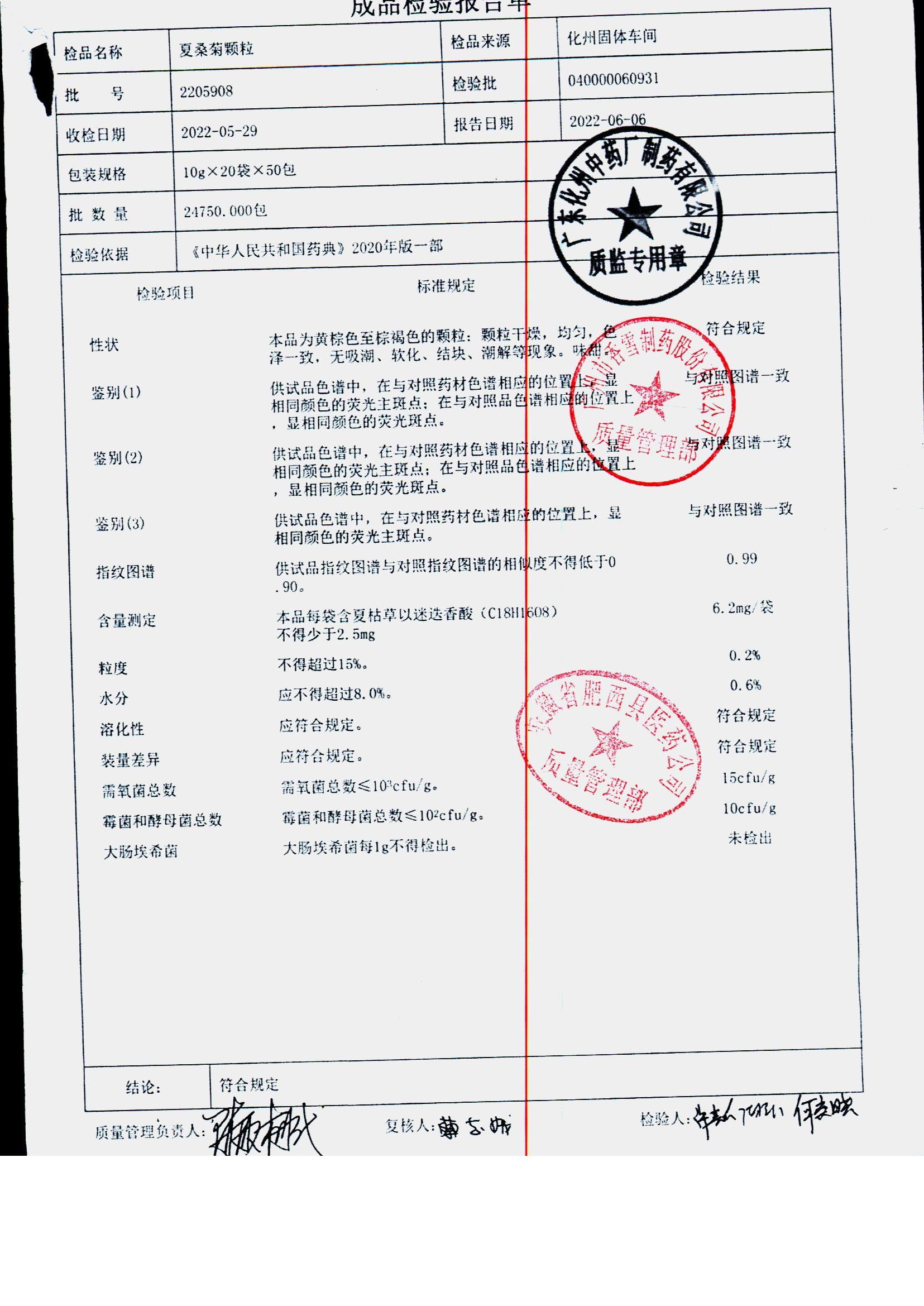 药检报告