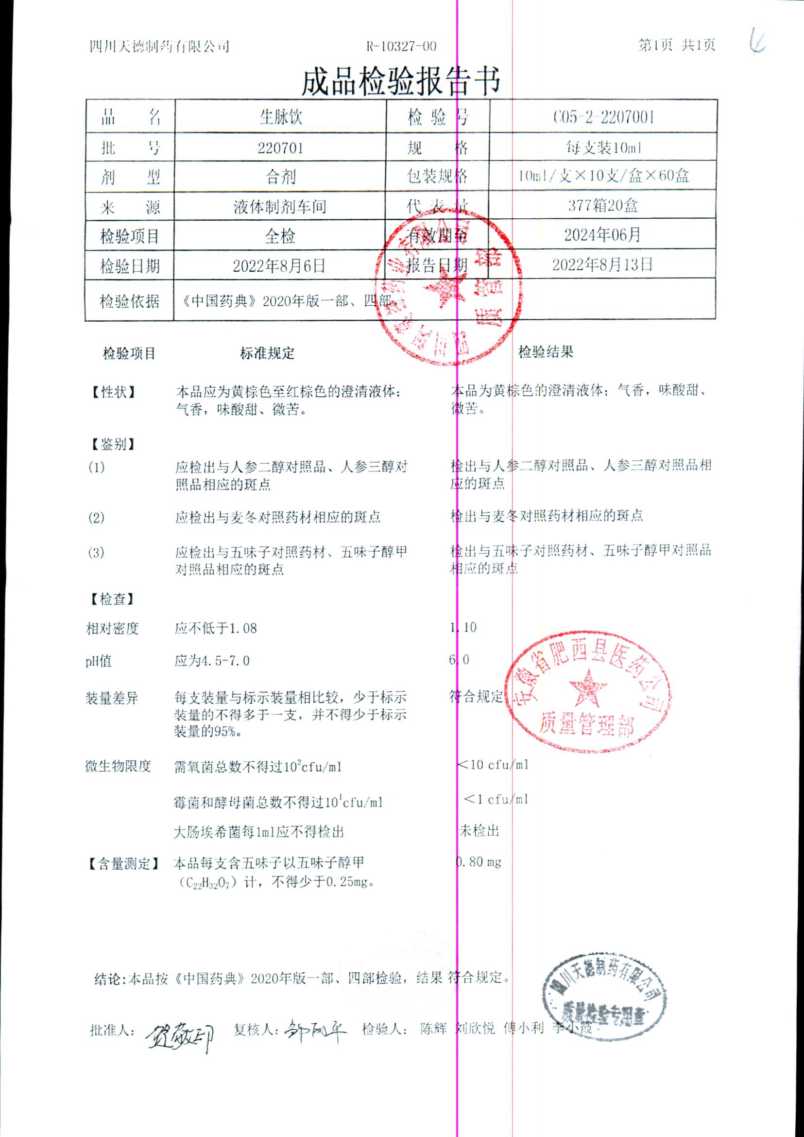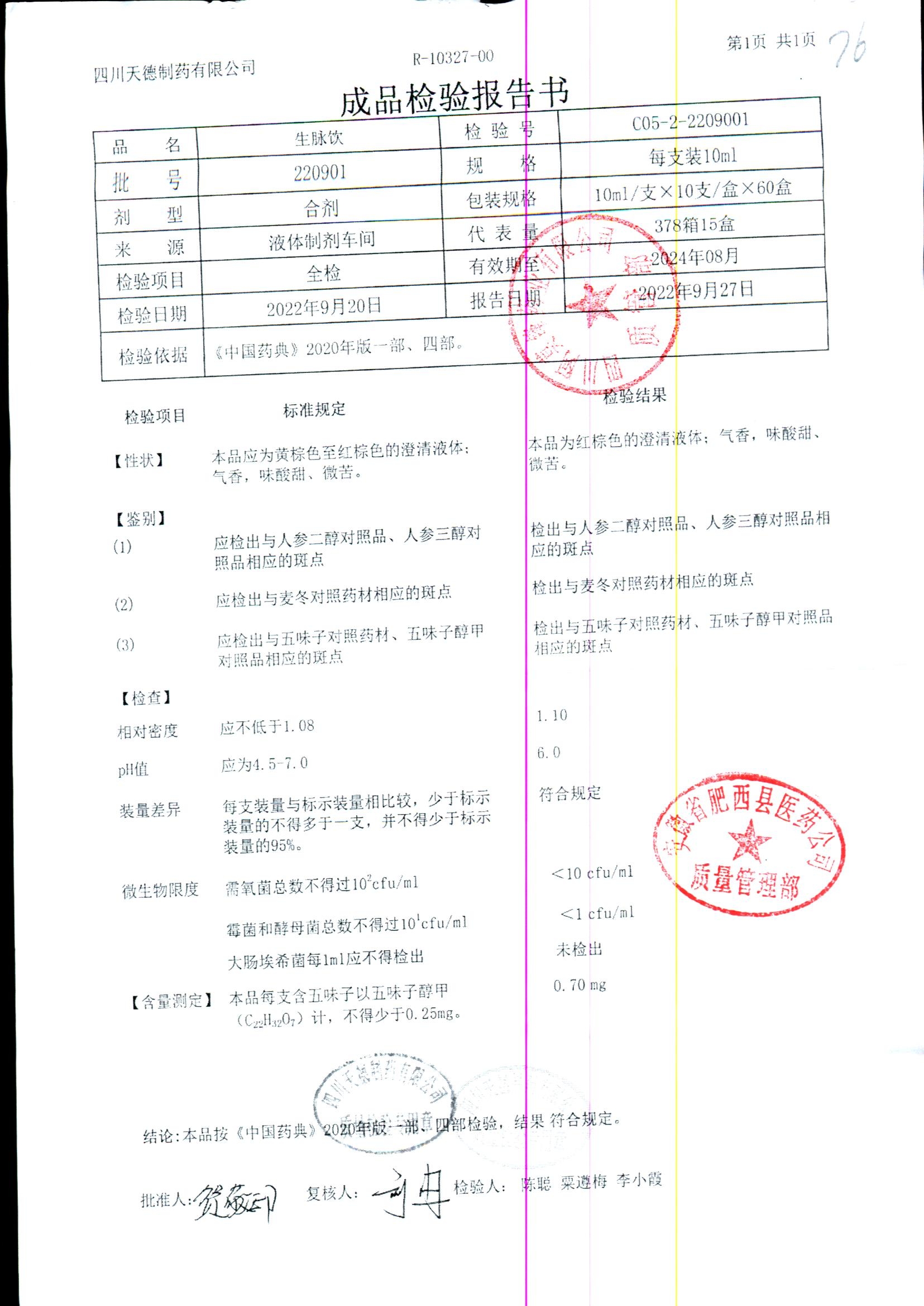 药检报告