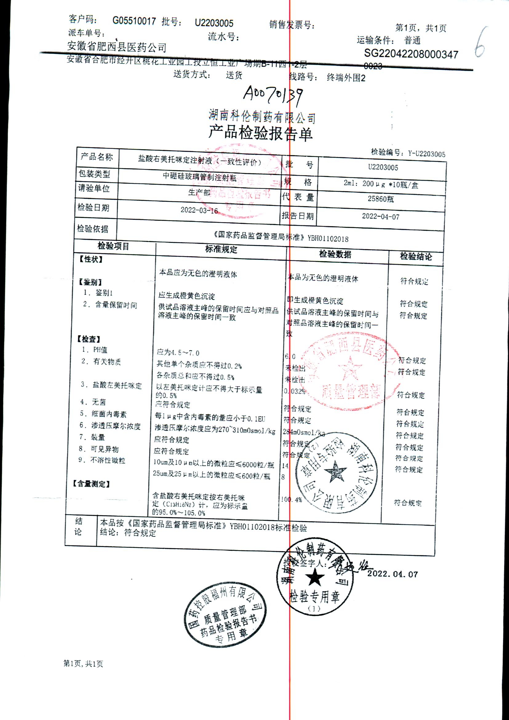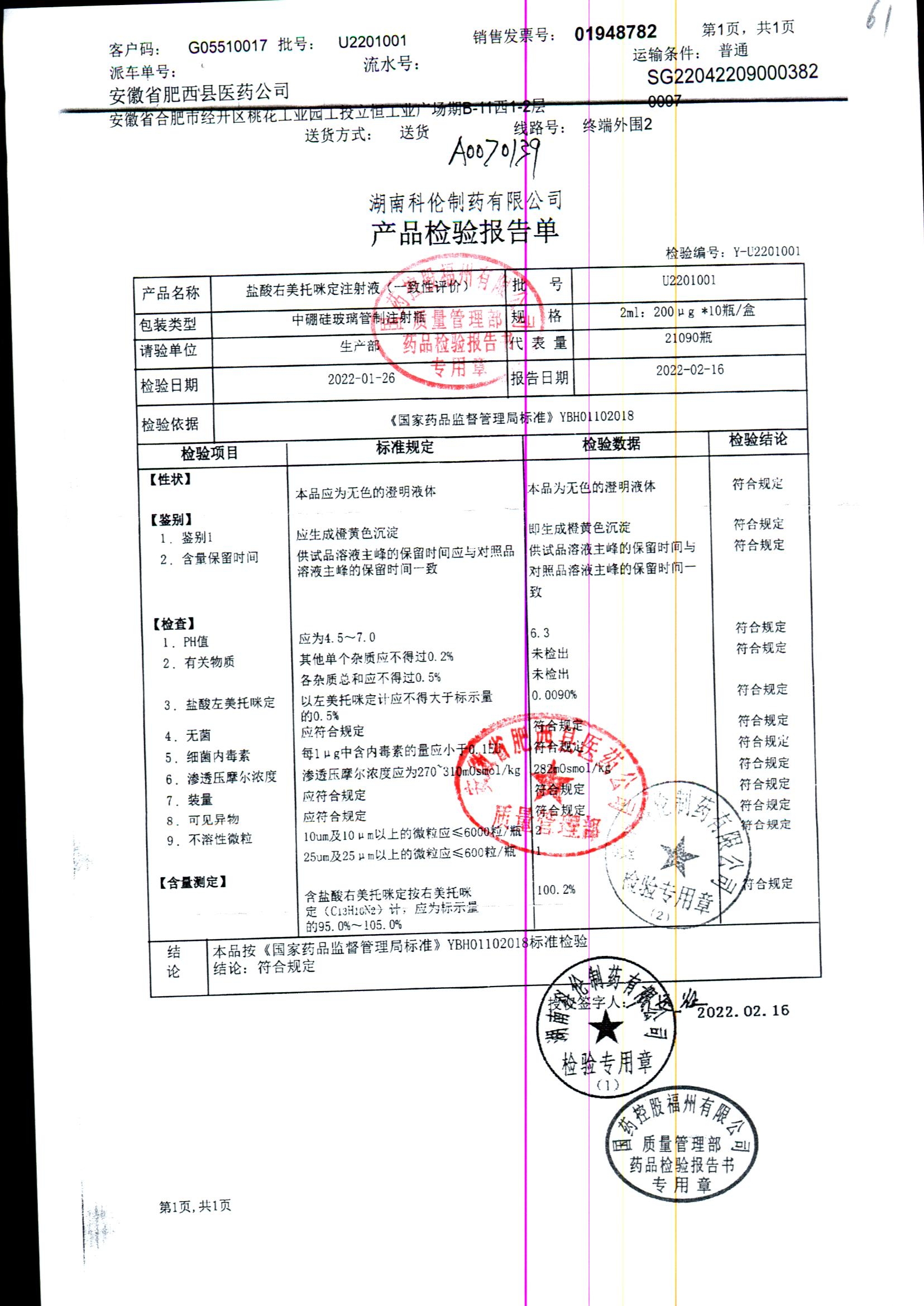 药检报告