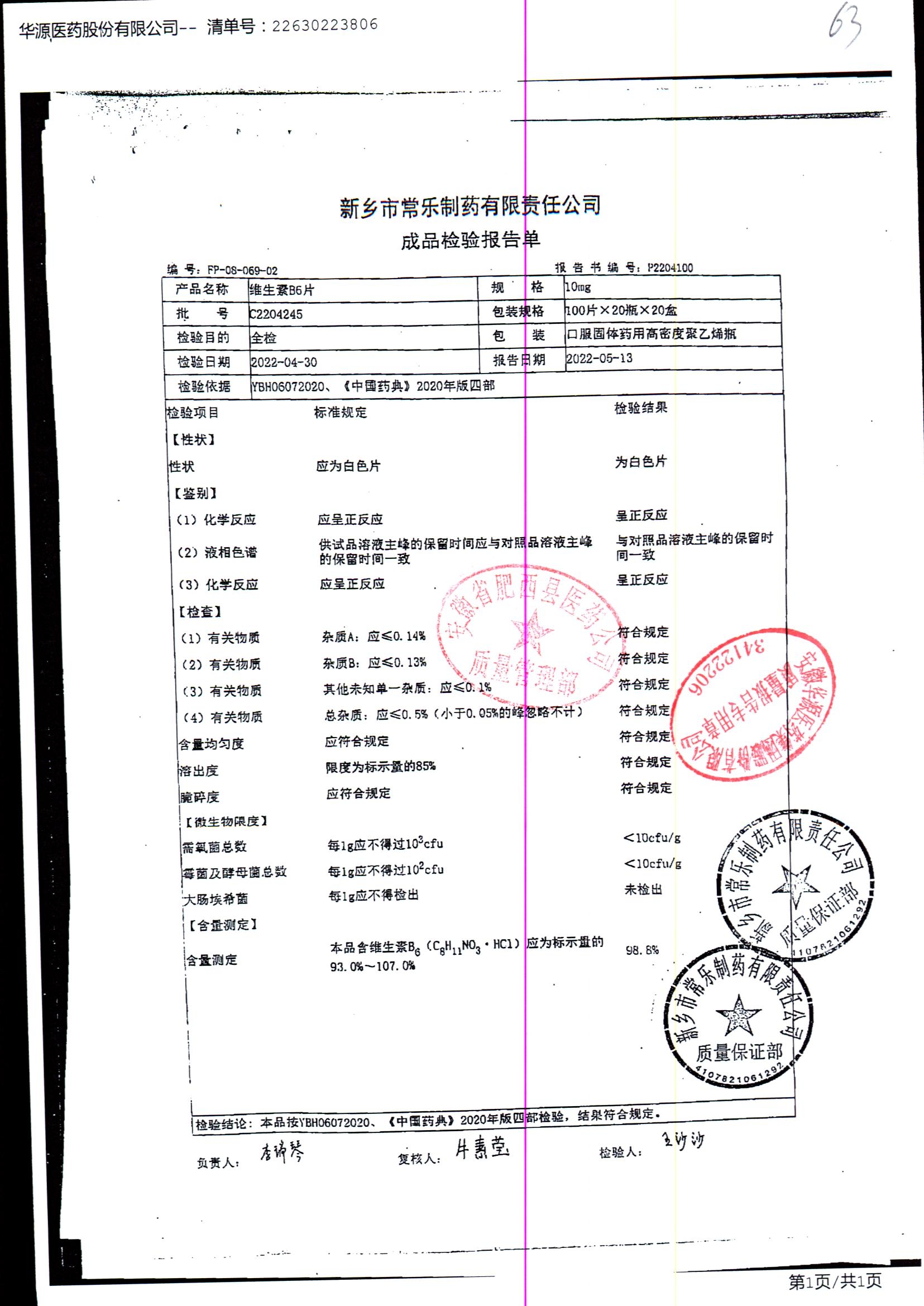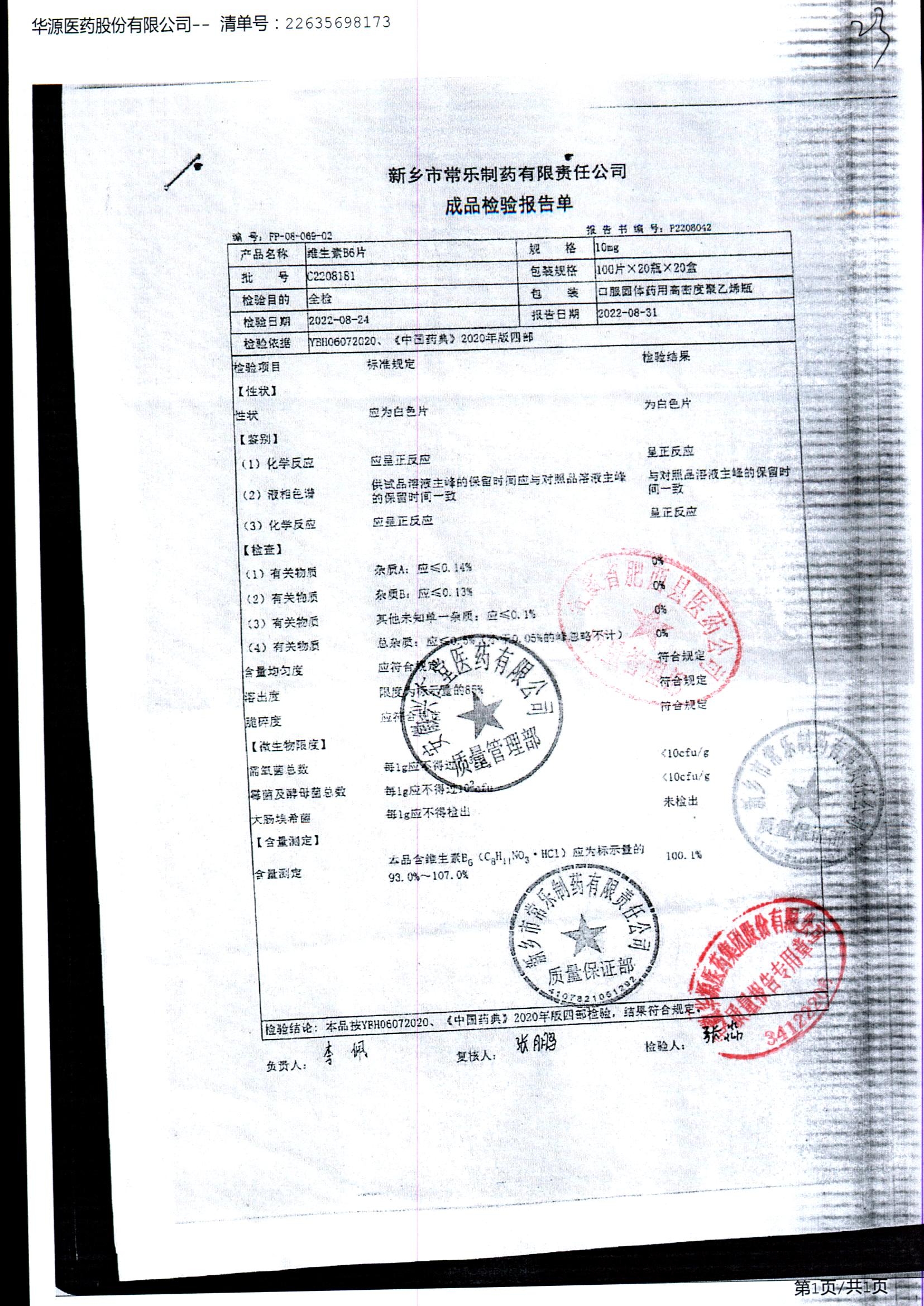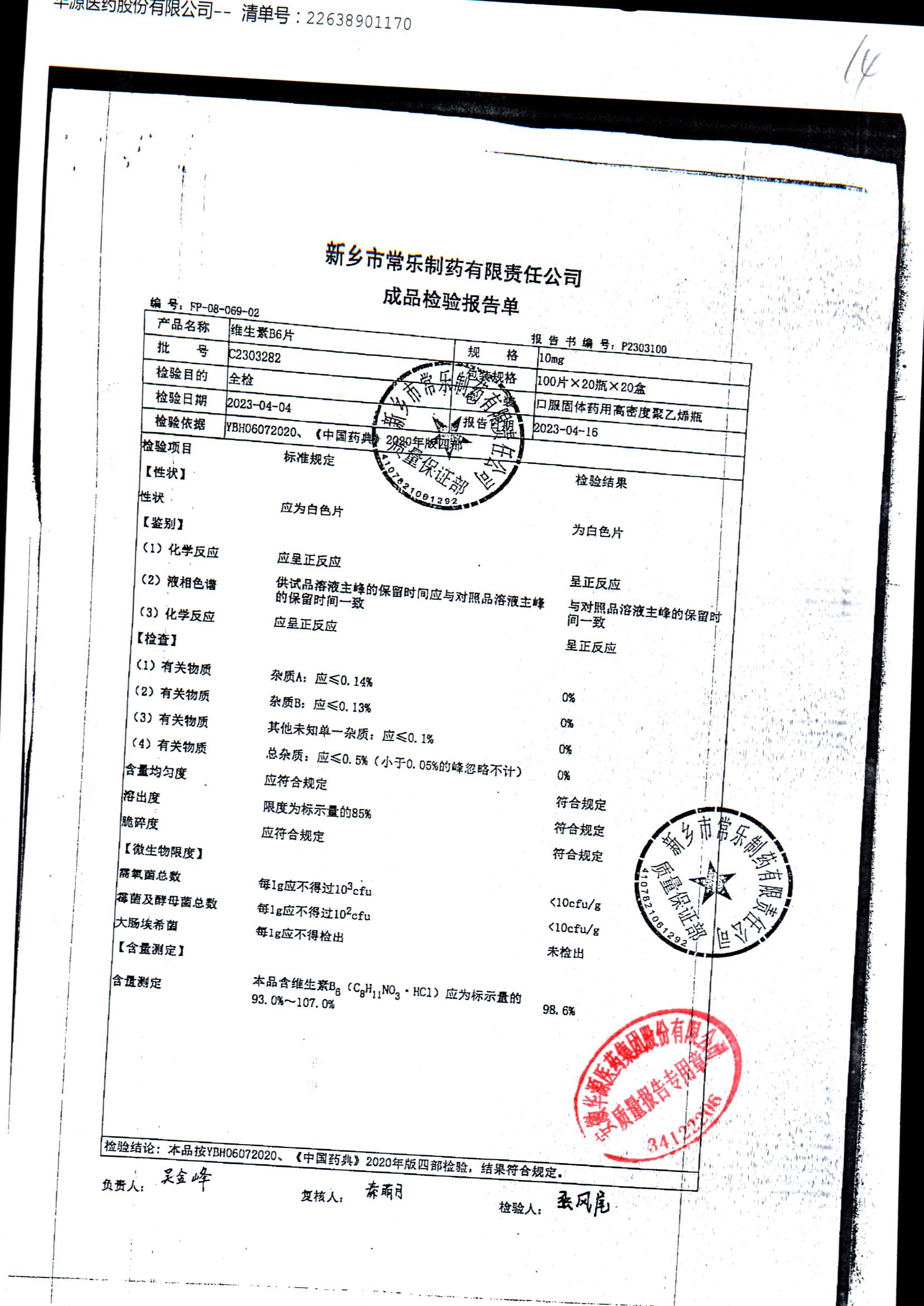 维生素B6片 | 10mg*100片 | C2204245 | 查看详情 |