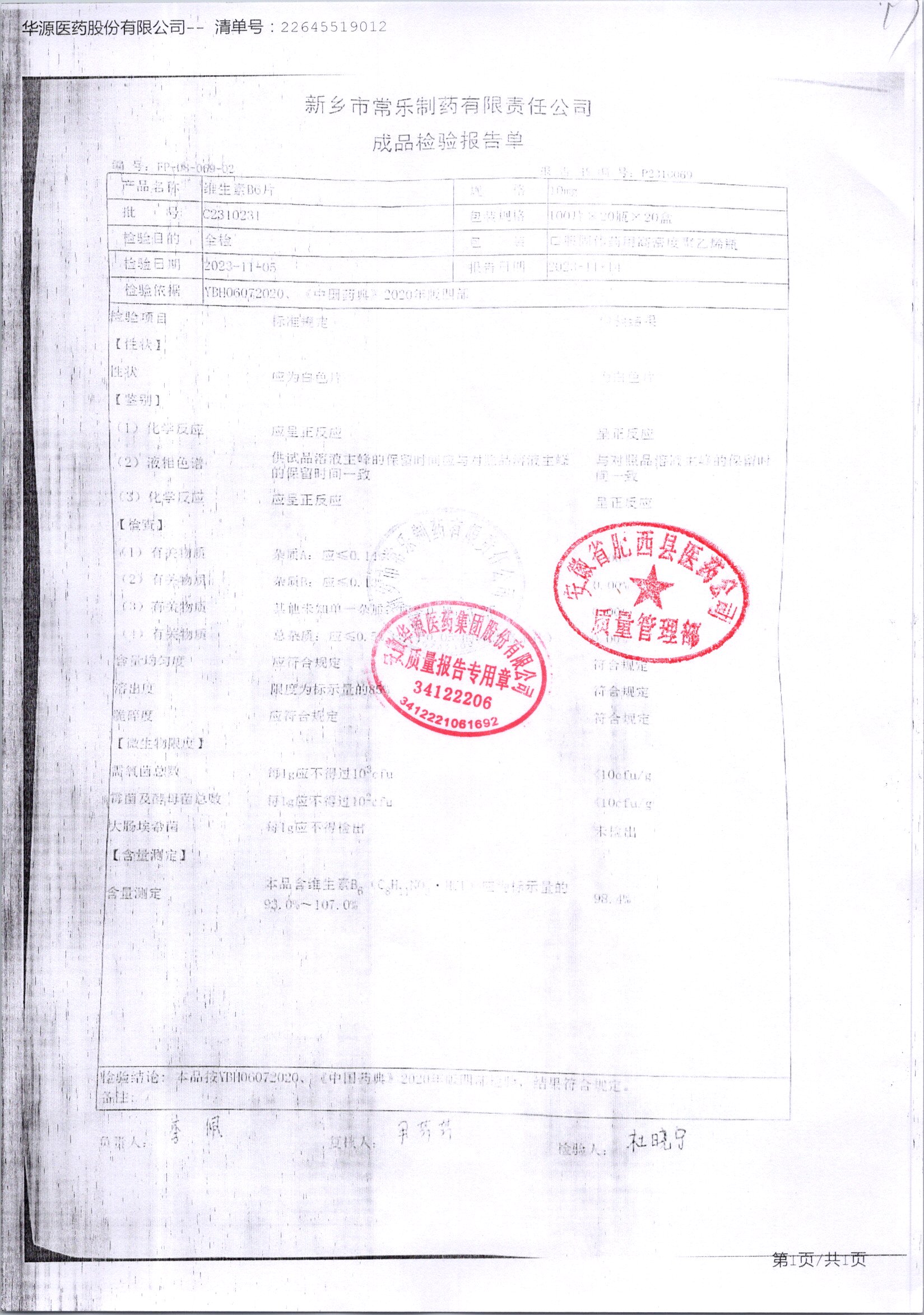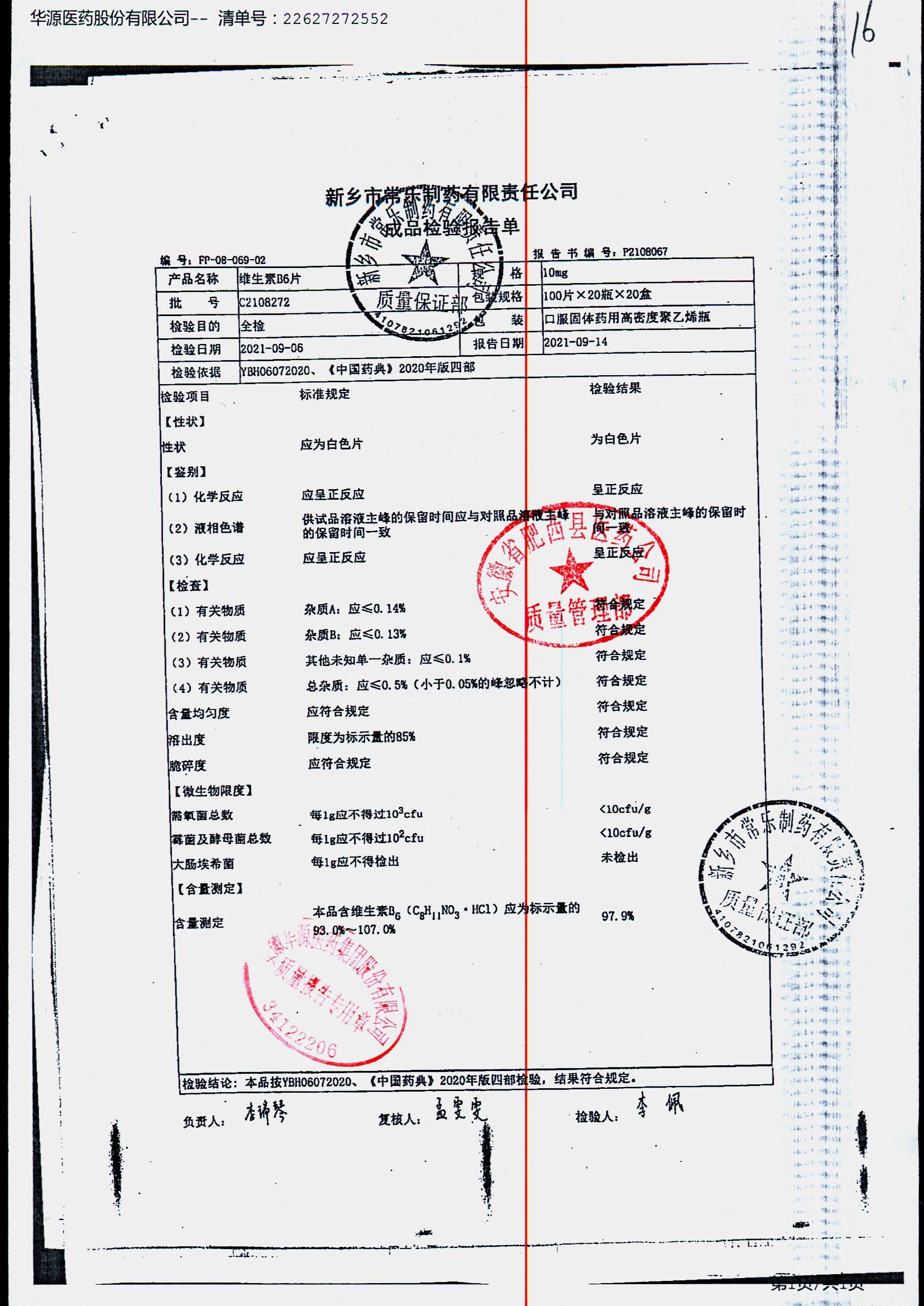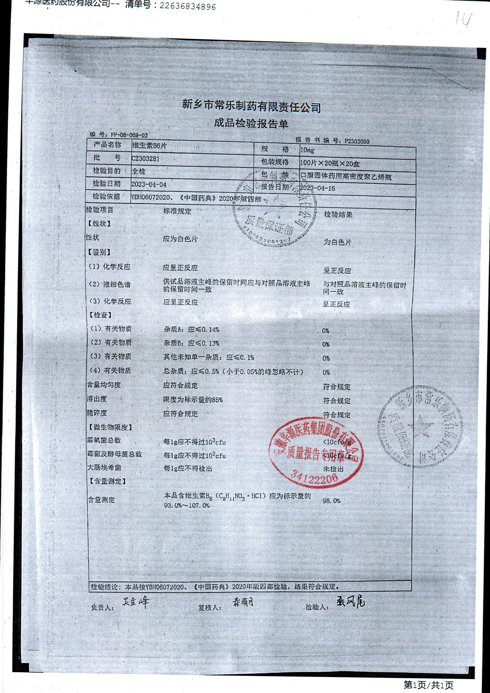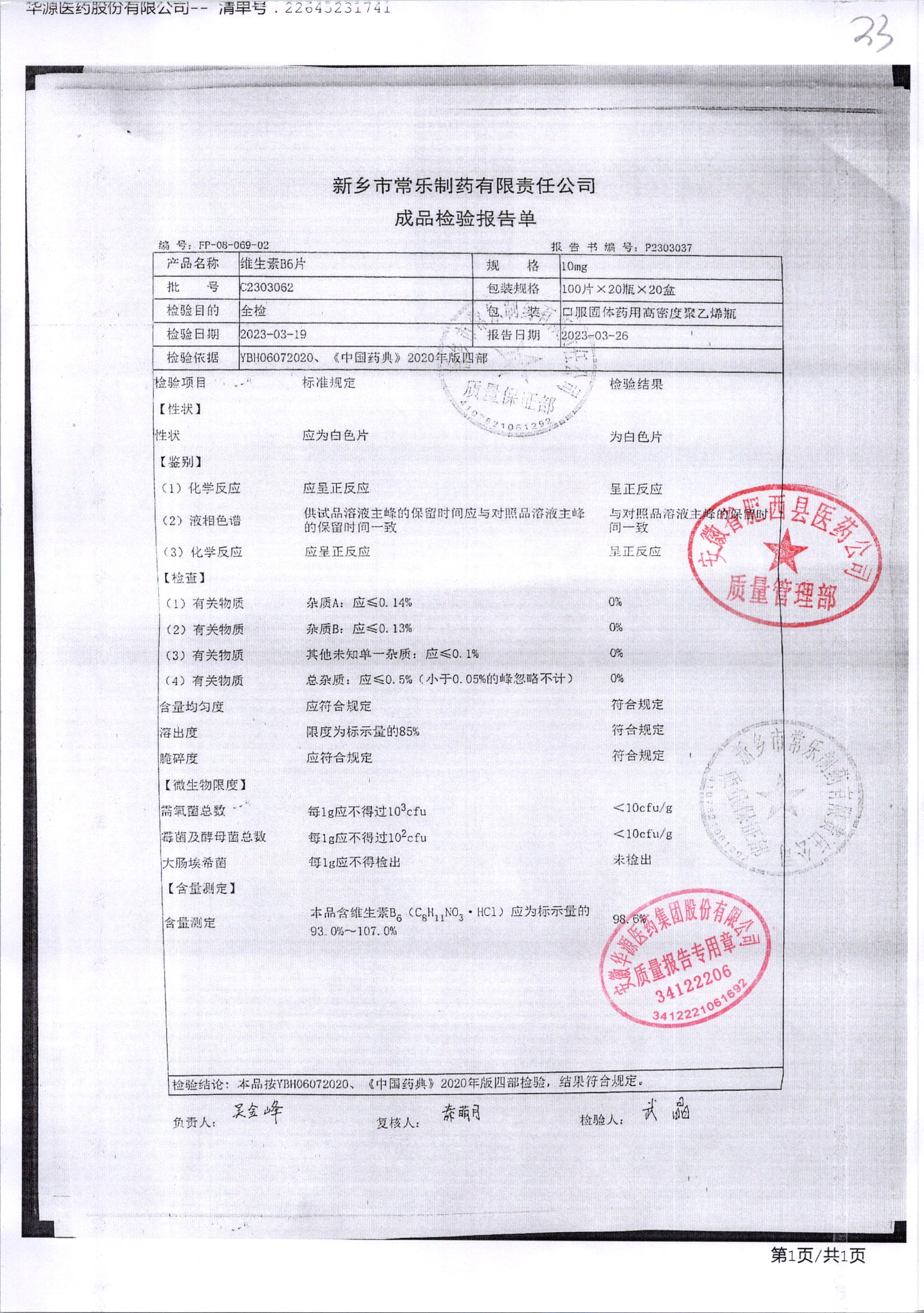 维生素B6片 | 10mg*100片 | C2303281 | 查看详情 |