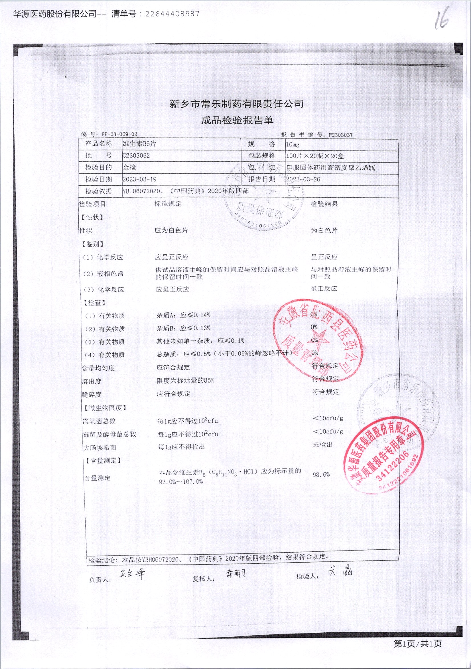 维生素B6片 | 10mg*100片 | C2303062 | 查看详情 |