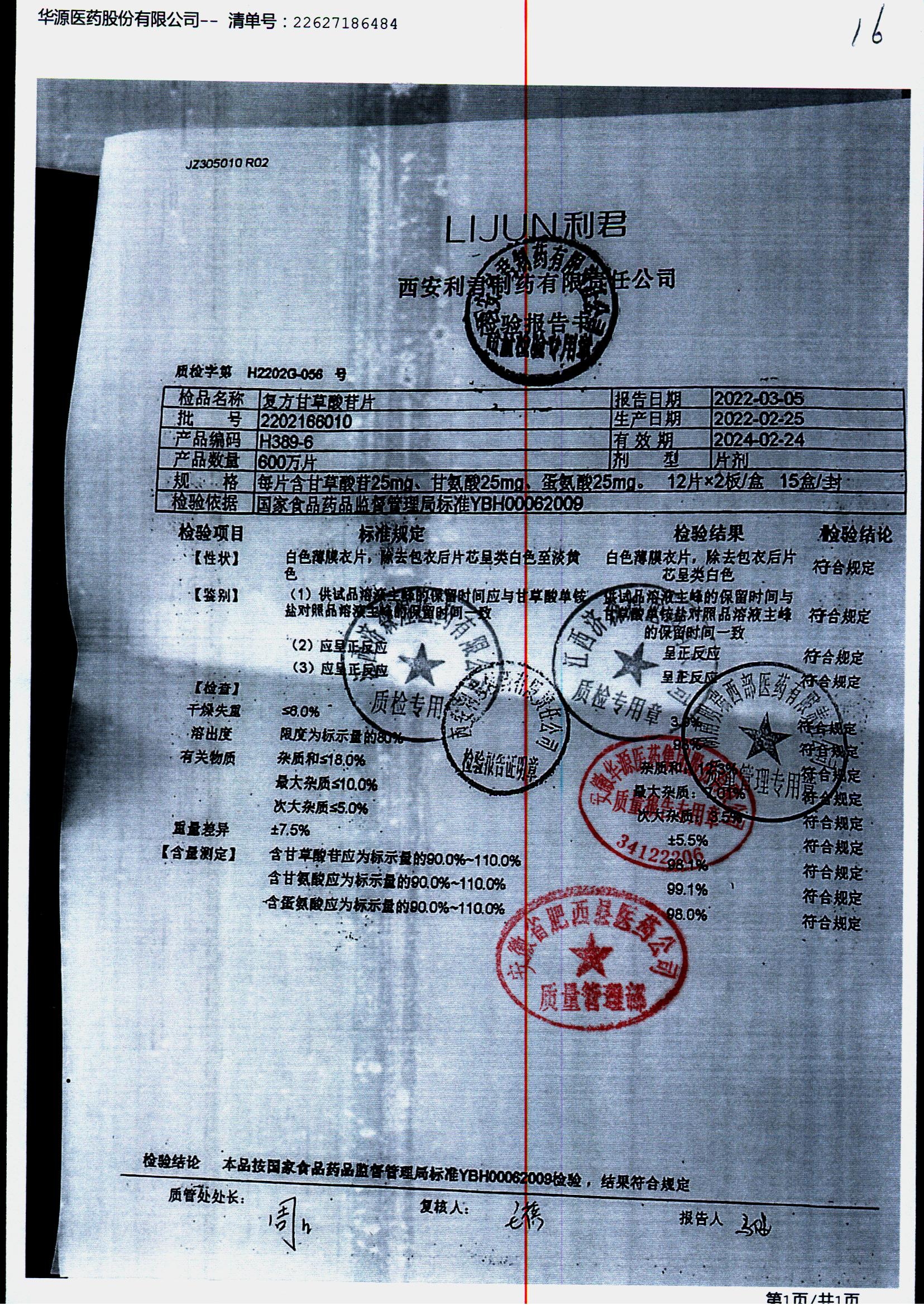 药检报告