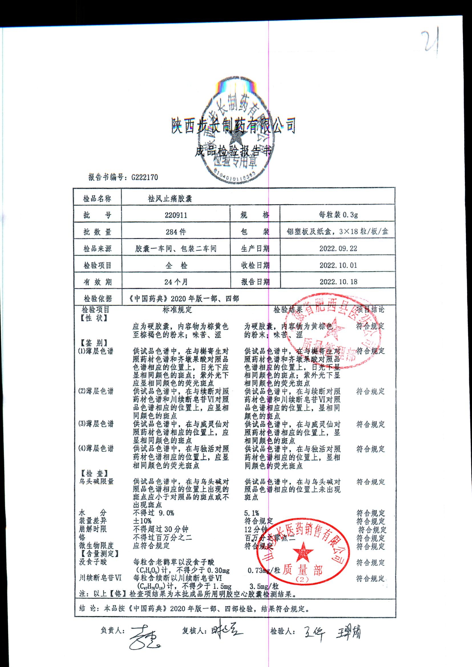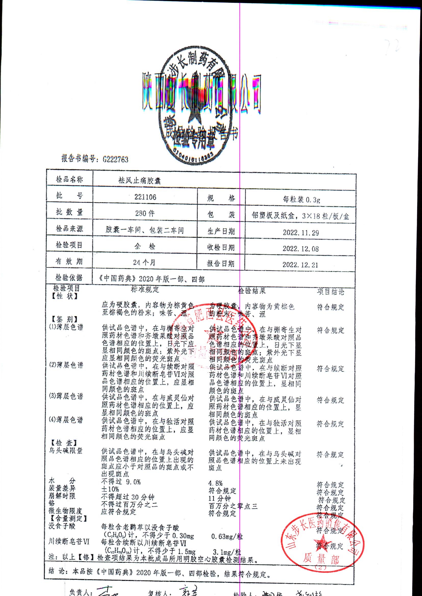 祛风止痛胶囊 | 0.3g*18*3粒 | 220911 | 查看详情 |