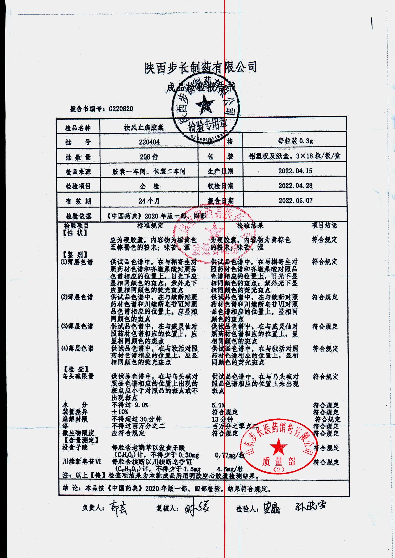 祛风止痛胶囊 | 0.3g*18*3粒 | 220404 | 查看详情 |