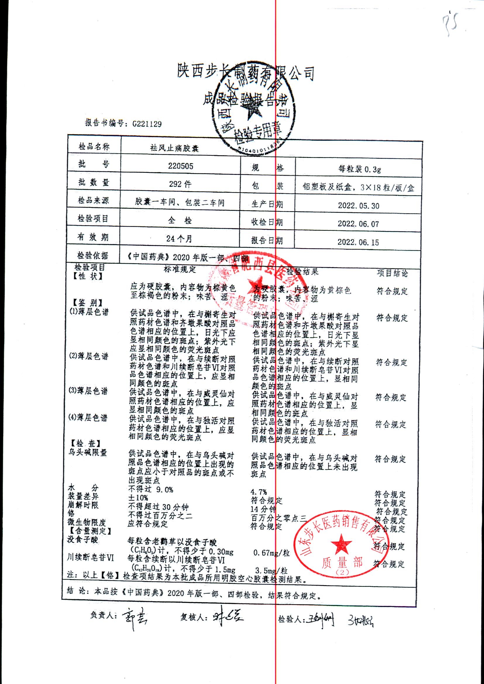 祛风止痛胶囊 | 0.3g*18*3粒 | 220505 | 查看详情 |