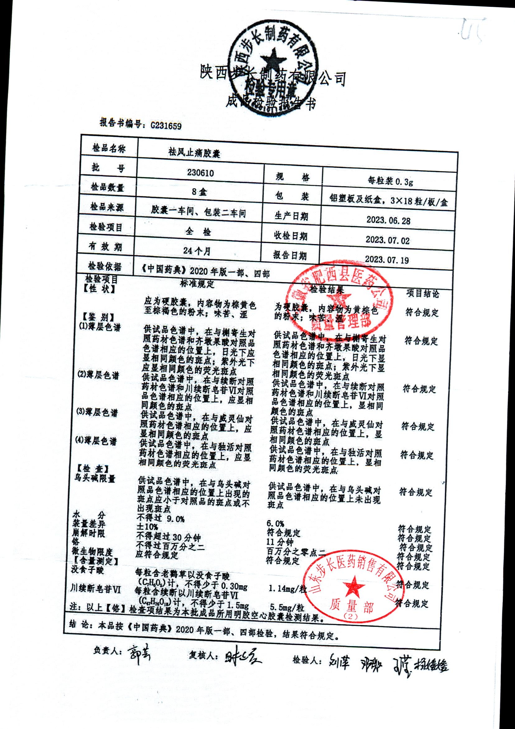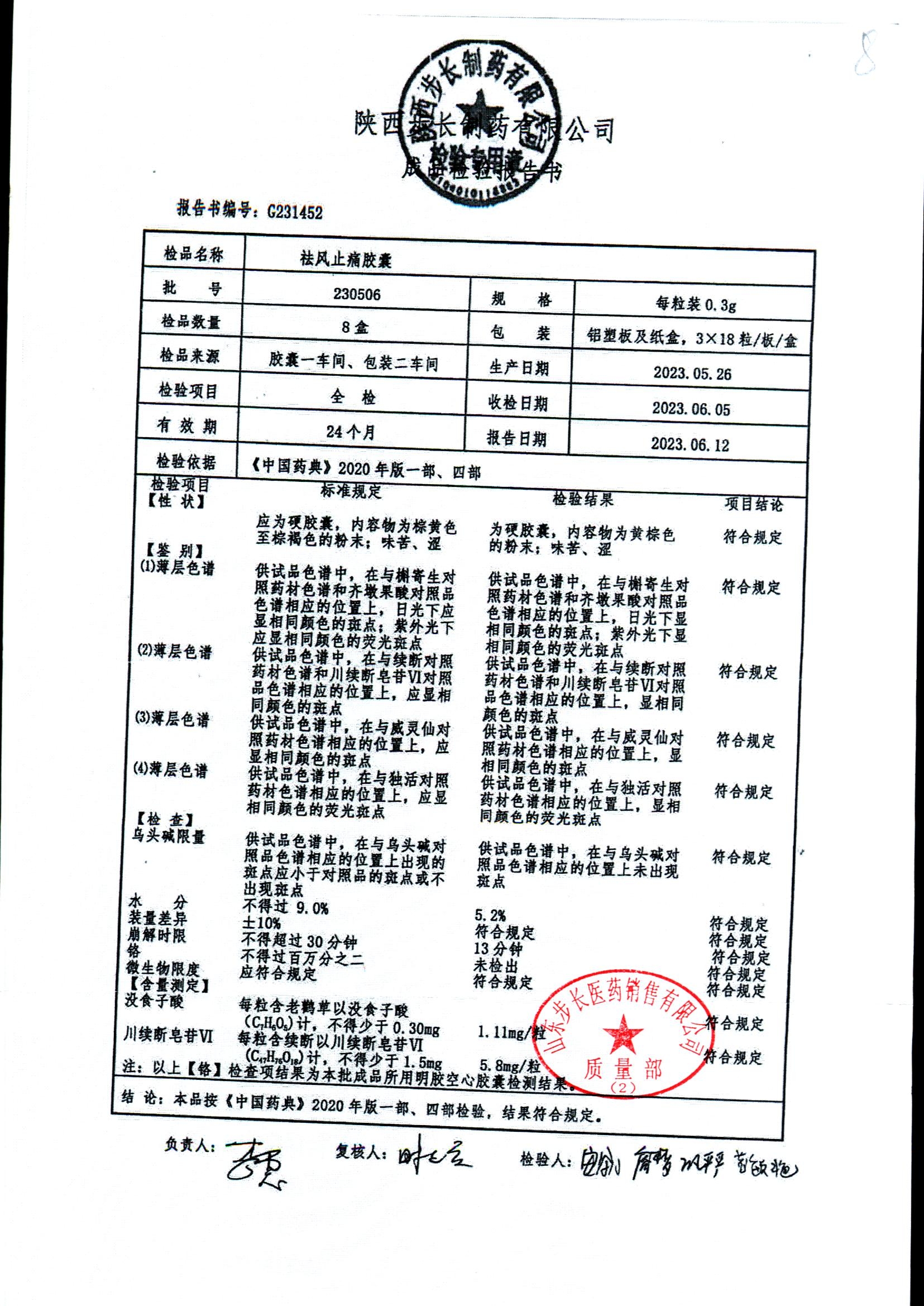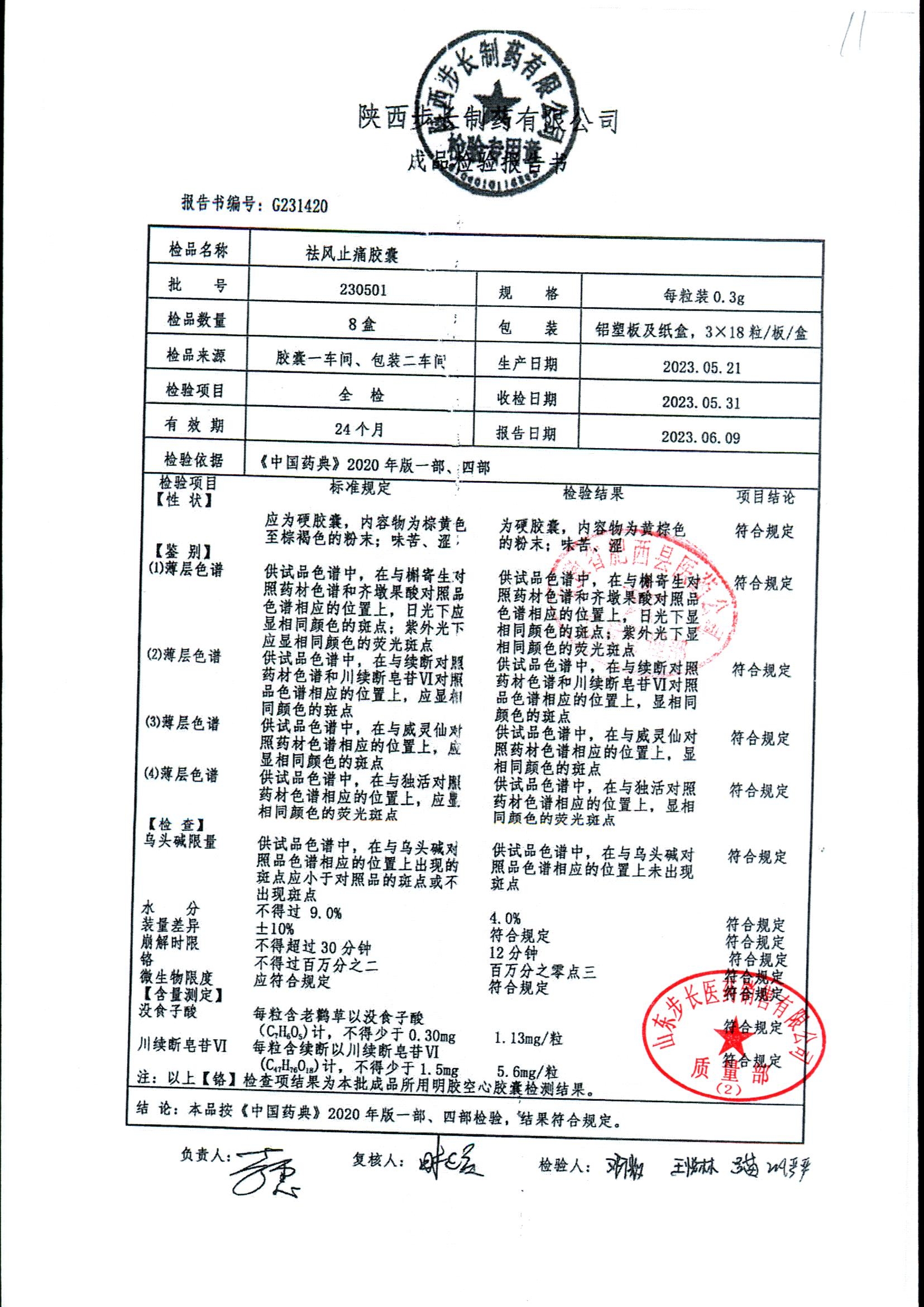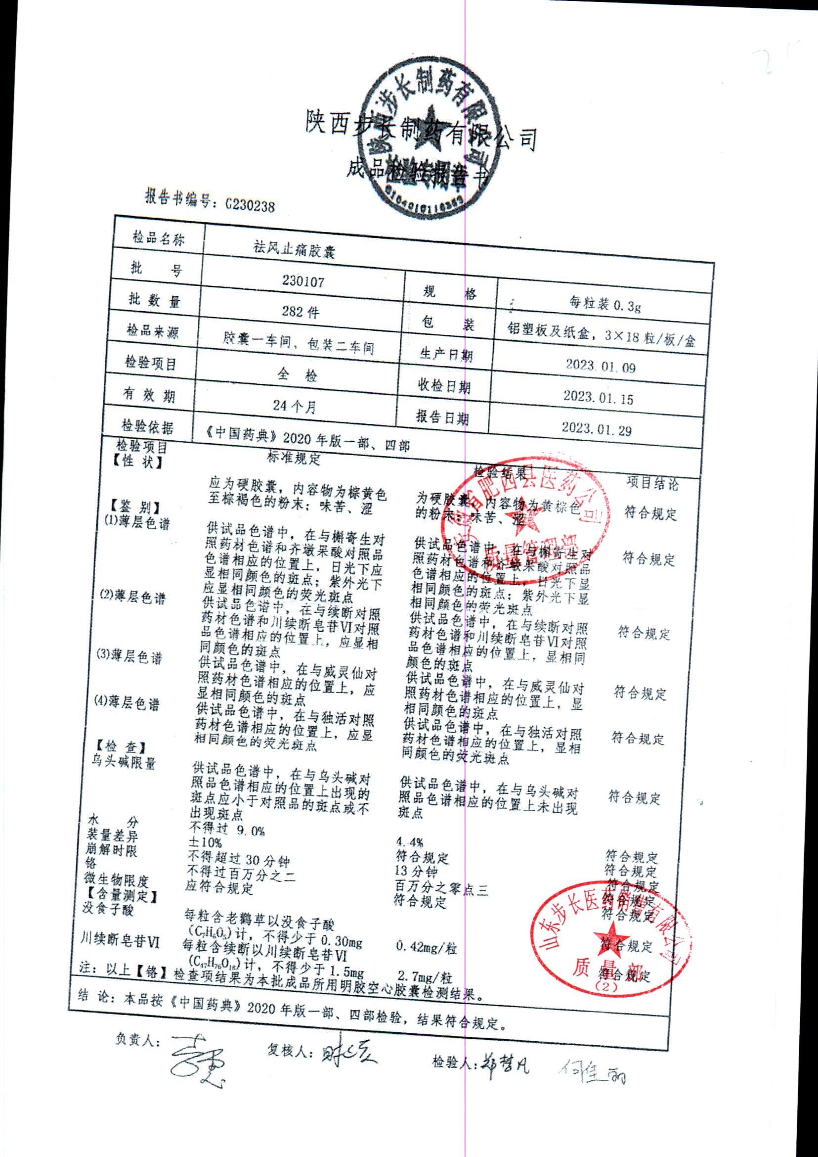 祛风止痛胶囊 | 0.3g*18*3粒 | 230506 | 查看详情 |