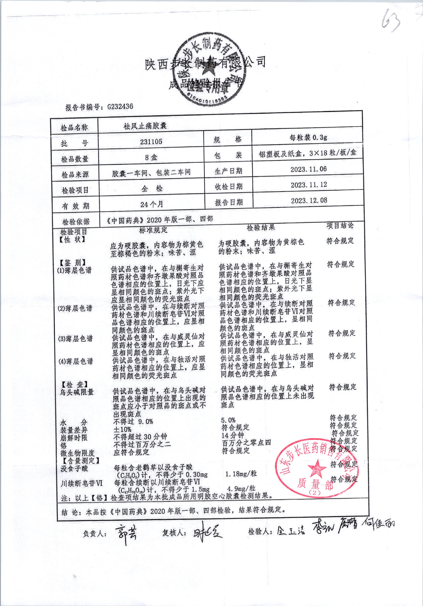 祛风止痛胶囊 | 0.3g*18*3粒 | 231105 | 查看详情 |