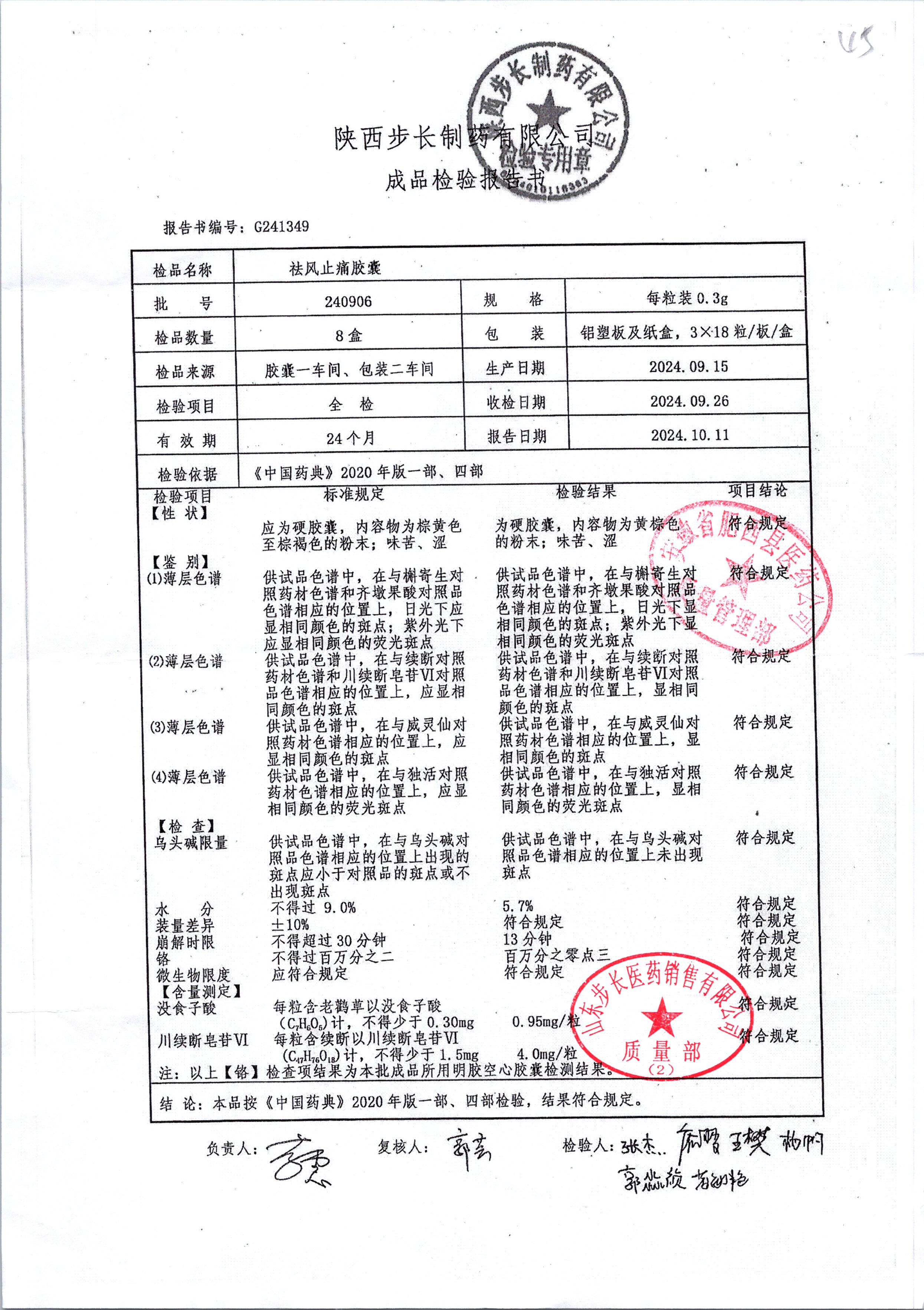 祛风止痛胶囊 | 0.3g*18*3粒 | 240906 | 查看详情 |
