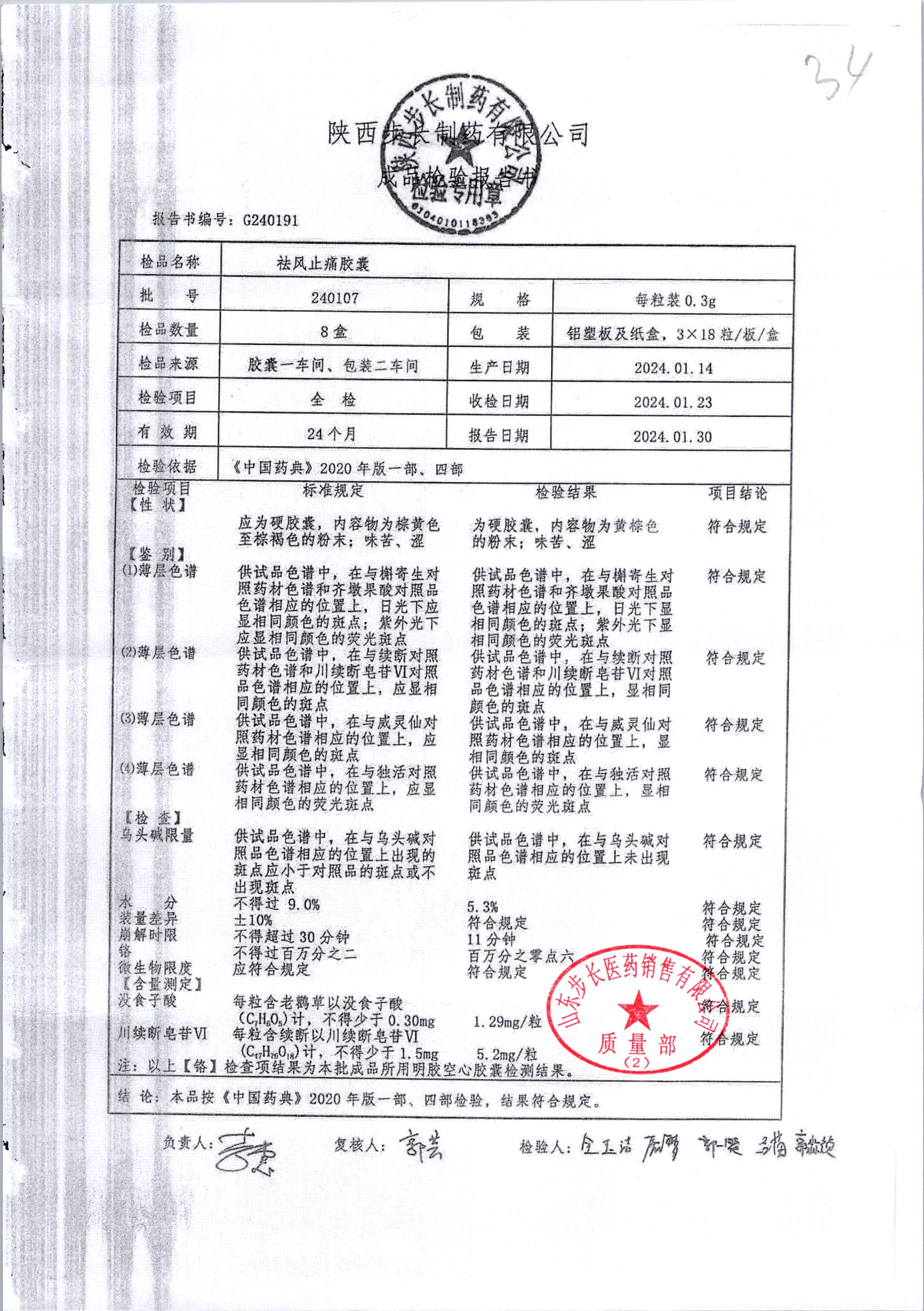 祛风止痛胶囊 | 0.3g*18*3粒 | 240107 | 查看详情 |