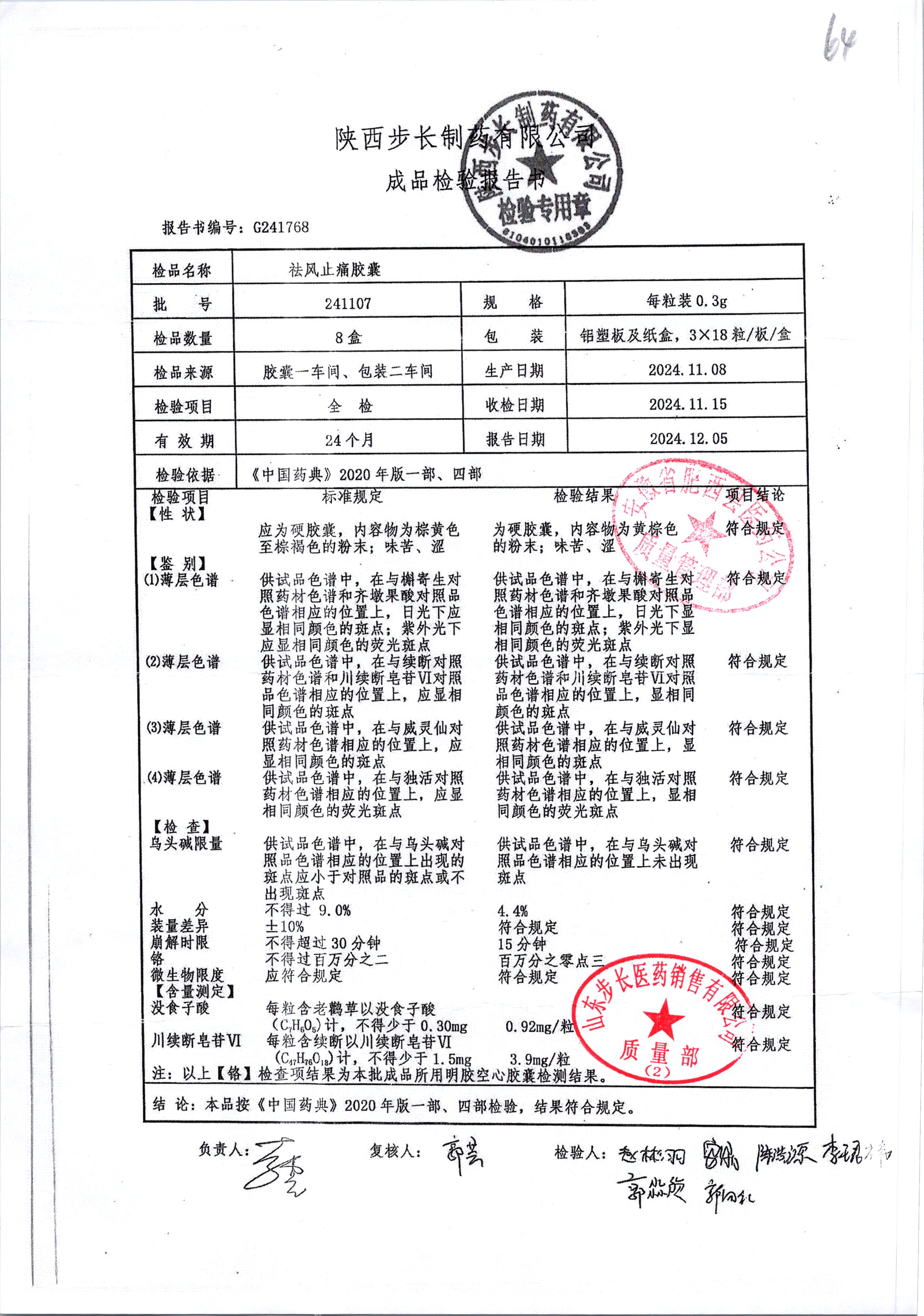 祛风止痛胶囊 | 0.3g*18*3粒 | 241108 | 查看详情 |