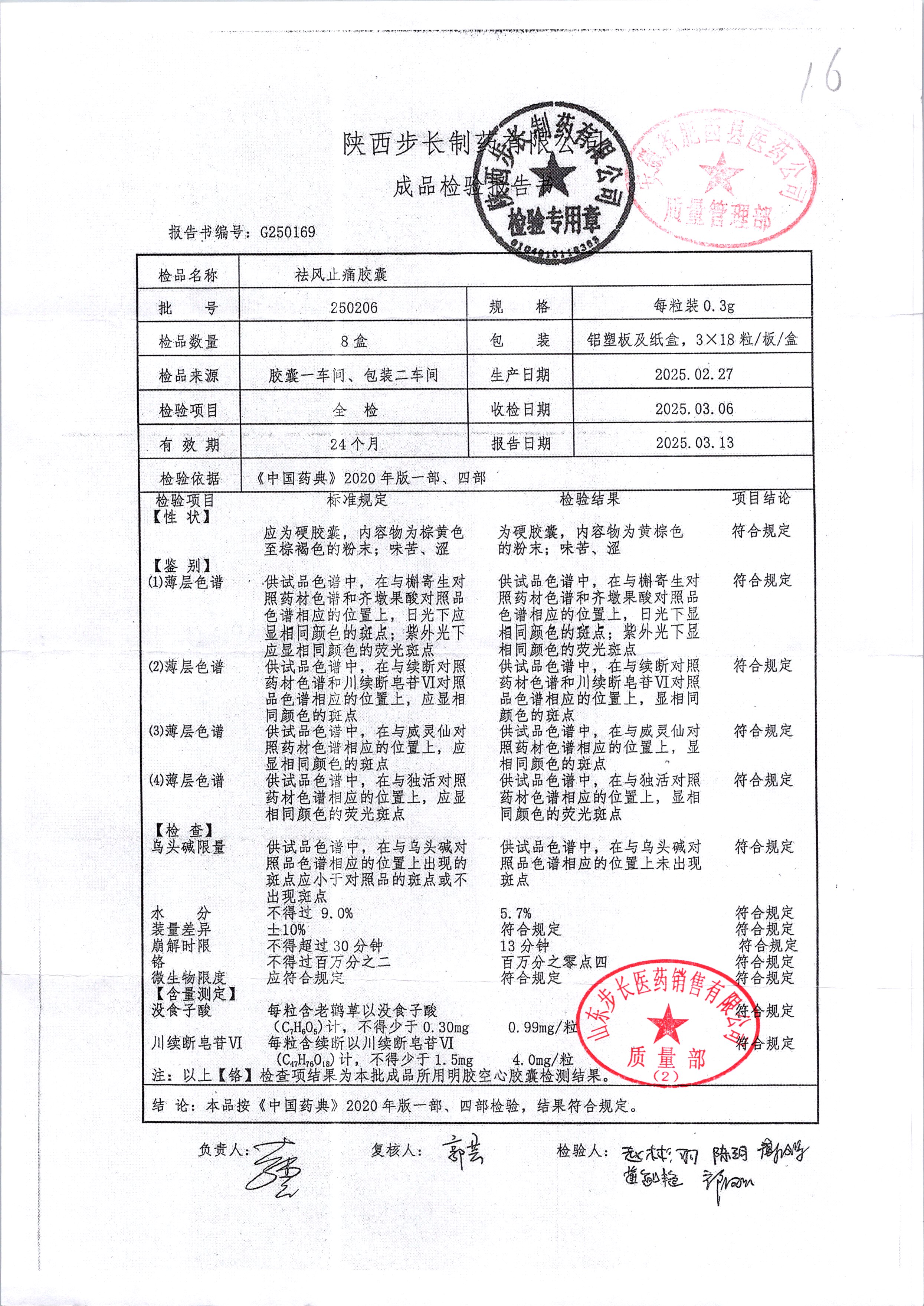 祛风止痛胶囊 | 0.3g*18*3粒 | 250206 | 查看详情 |