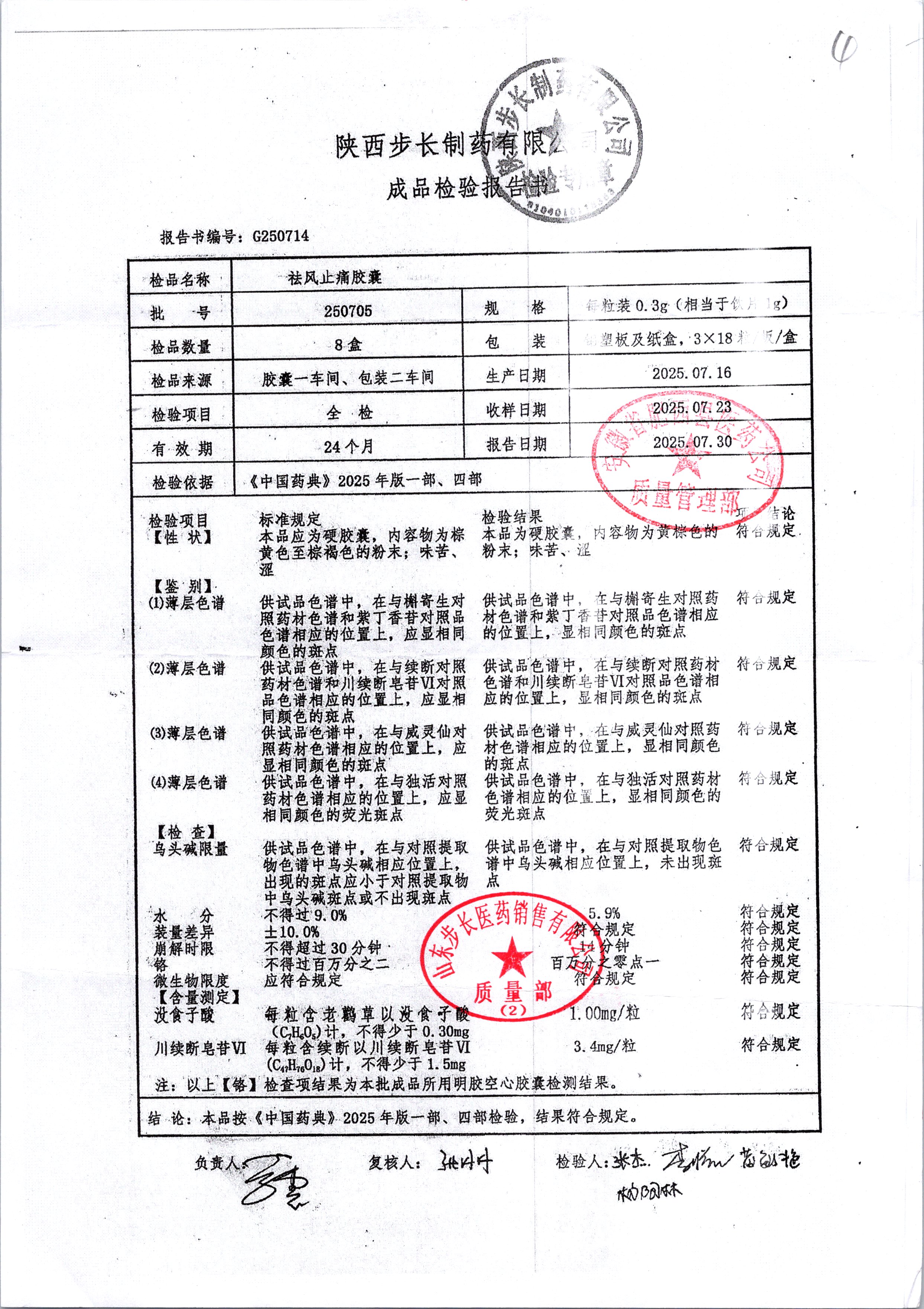 祛风止痛胶囊 | 0.3g*18*3粒 | 250705 | 查看详情 |