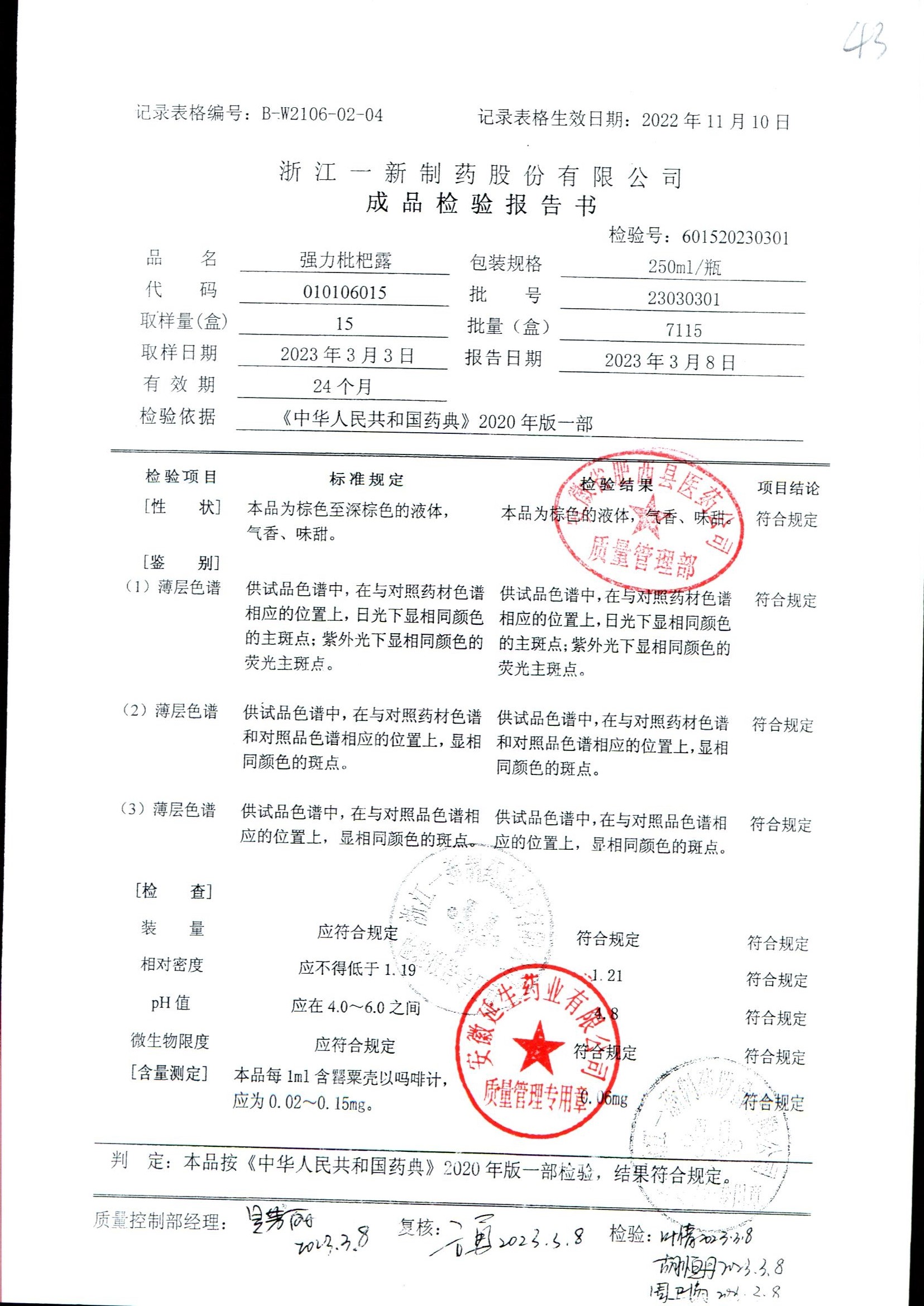 强力枇杷露 | 250ml | 24051301 | 查看详情 |