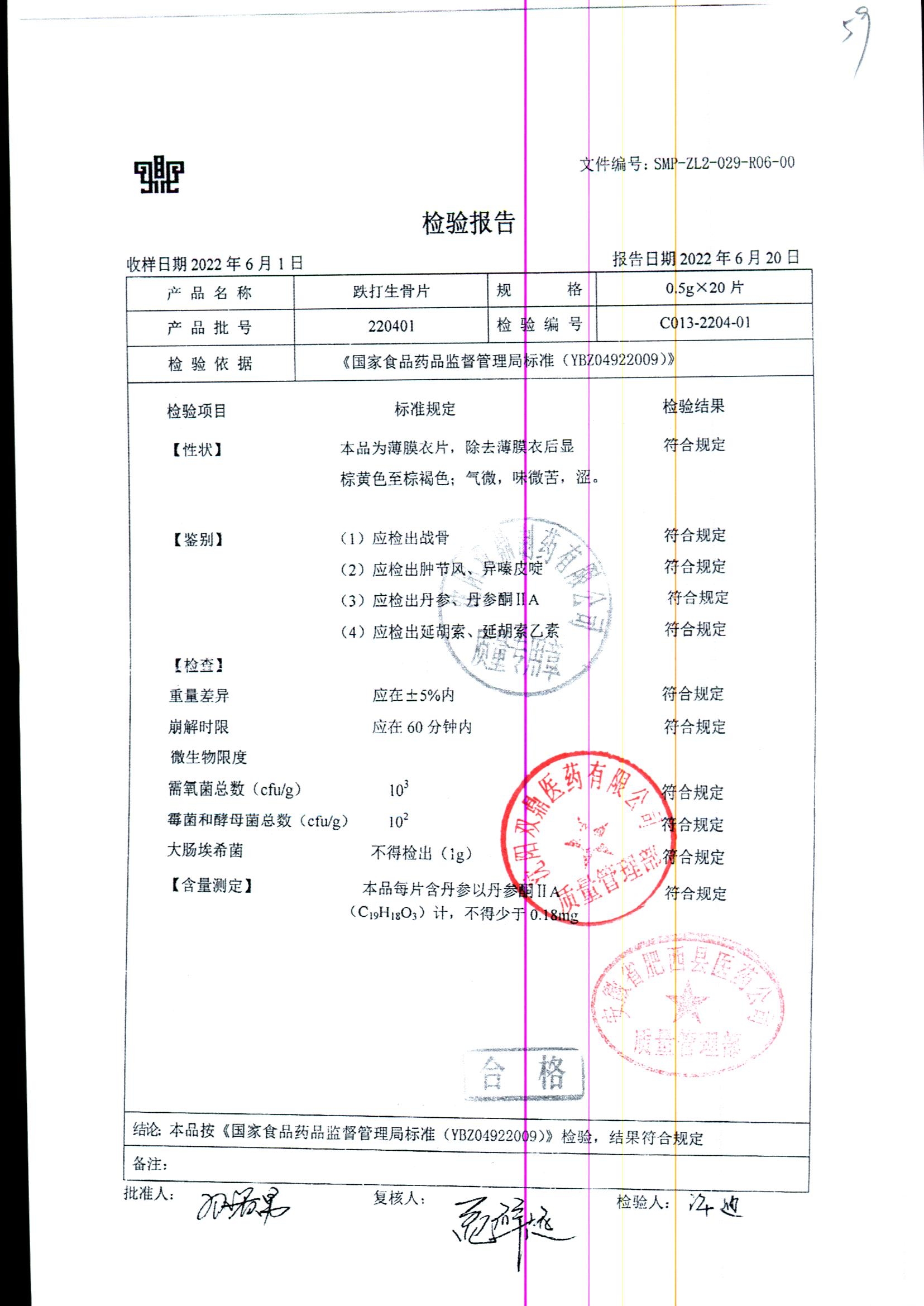 跌打生骨片 | 0.5g*20片 | 221201 | 查看详情 |